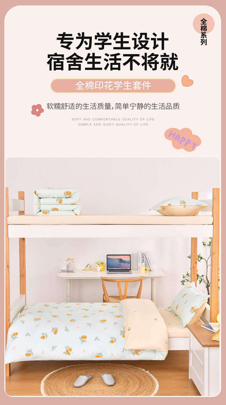 当前位置: 91家纺网 > 商品网购 > 床品套件 > 多件套 > 多件套 > 乐旗家纺 2024新款全棉印花学生上下铺宿舍三件套六件套 橙子汽水