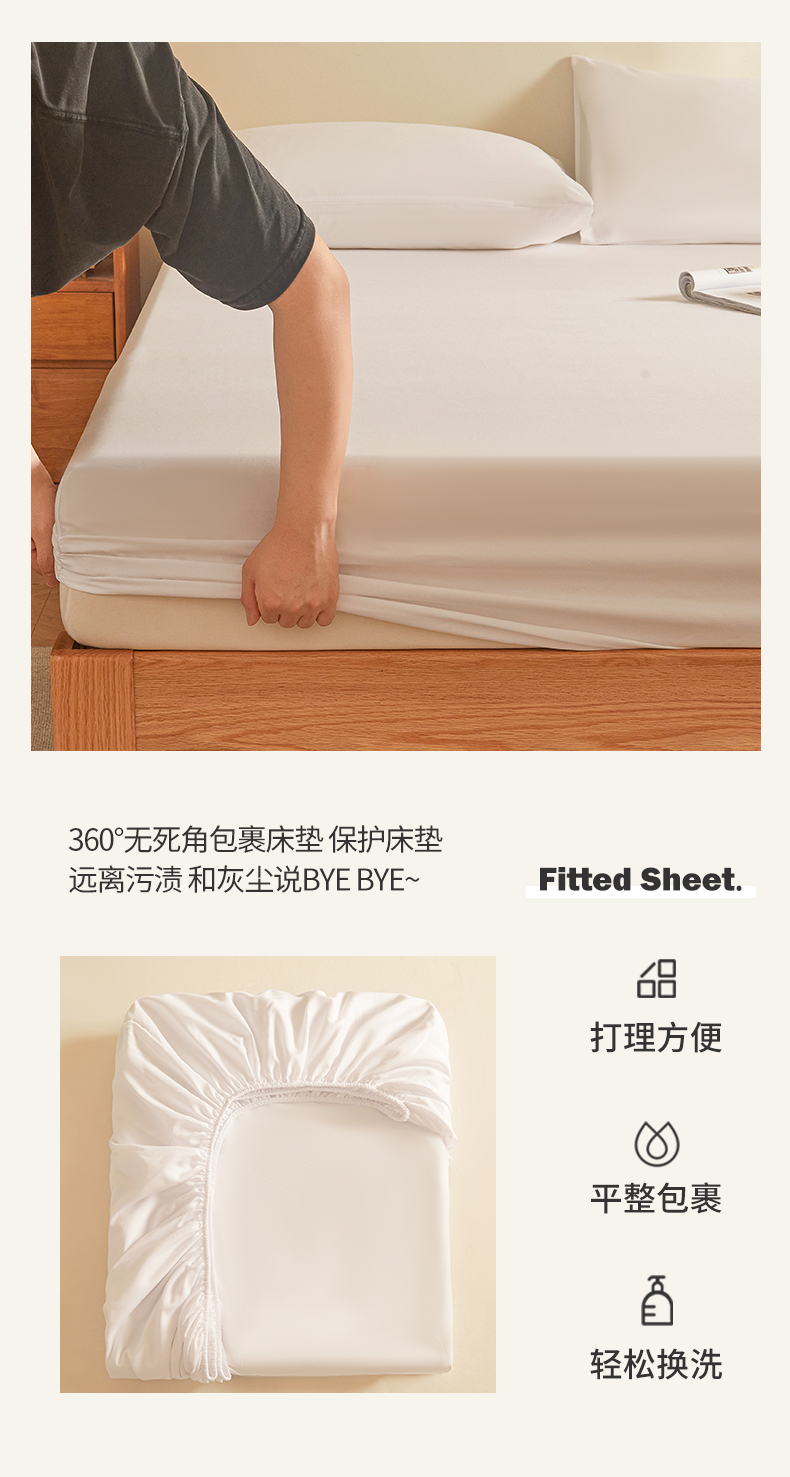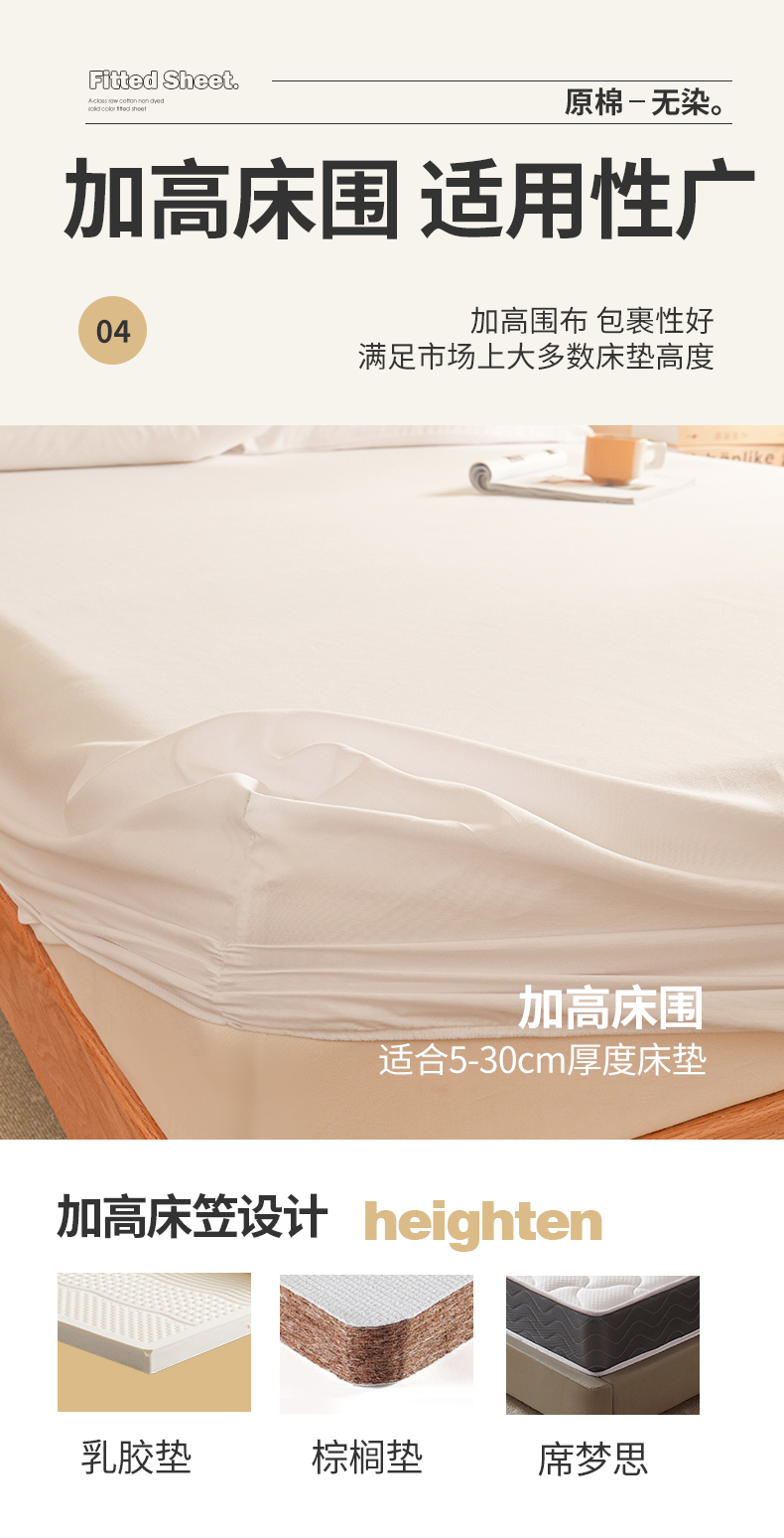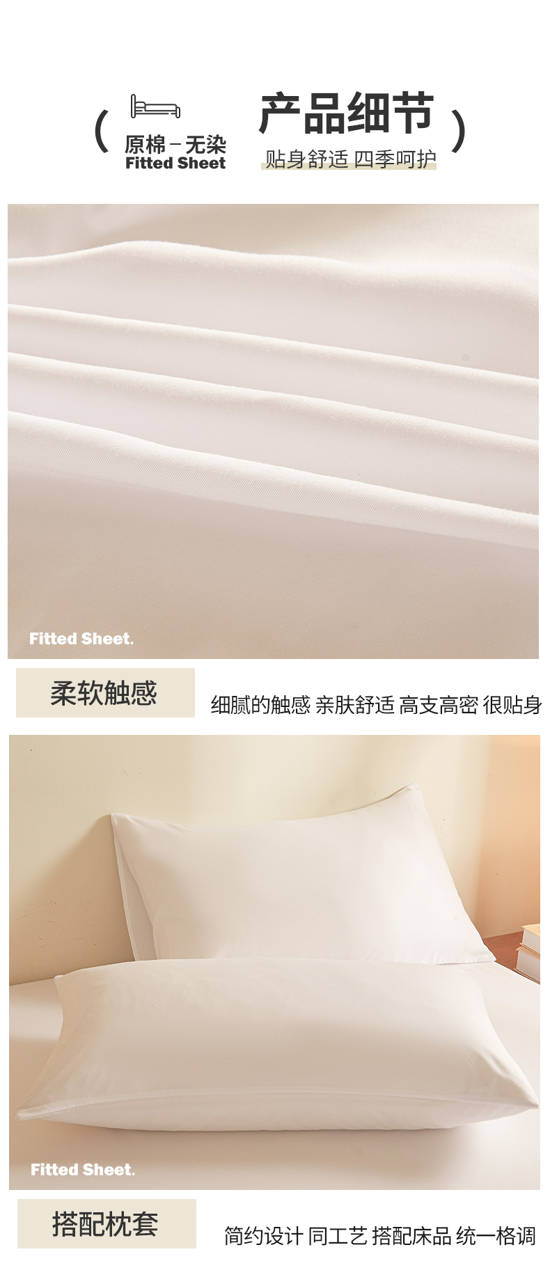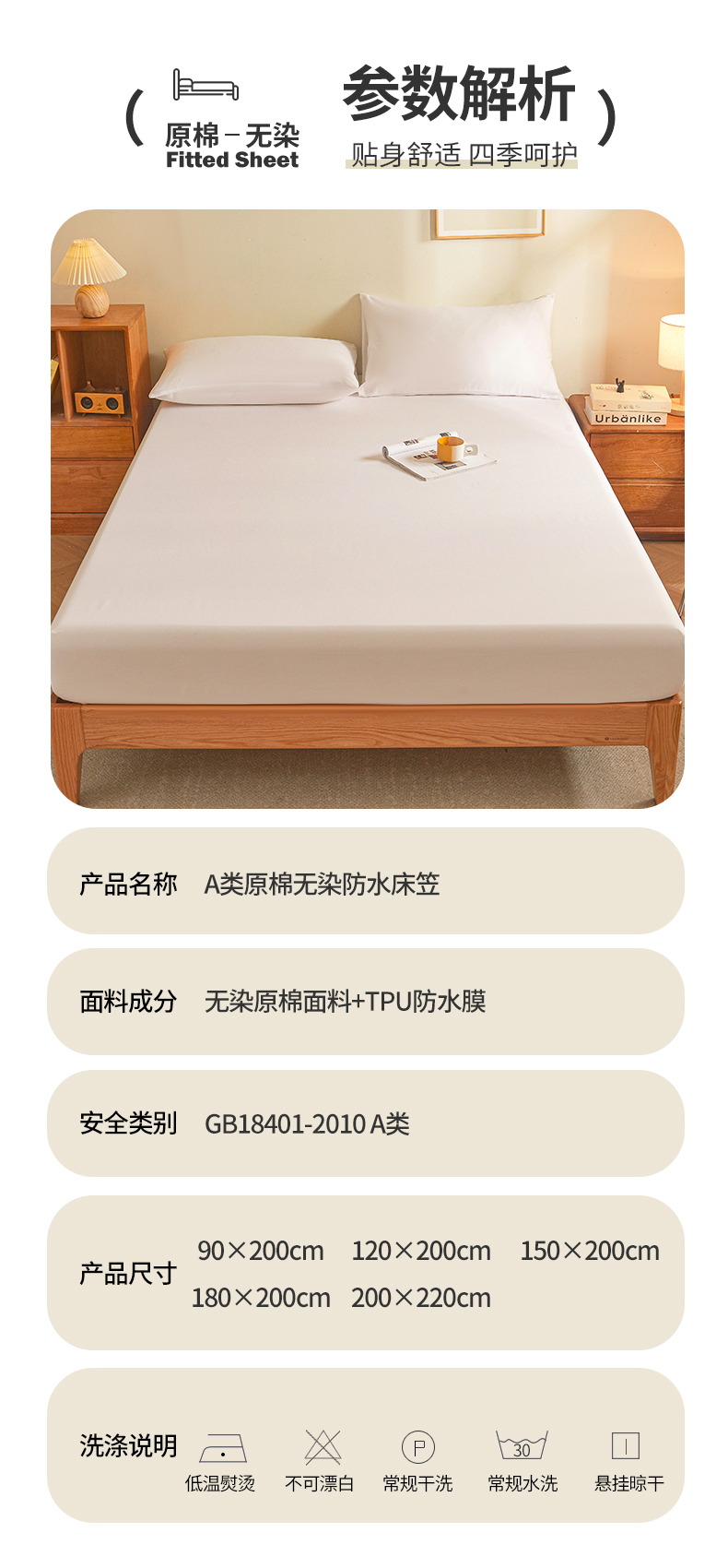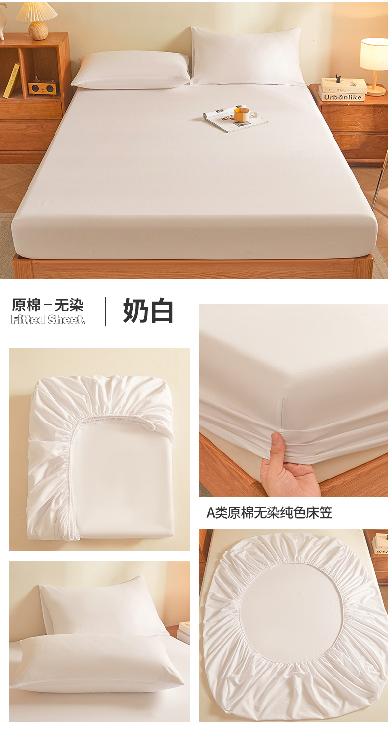 商品名称:伊人坊 2024新款原棉单层纯色床笠防水 奶白