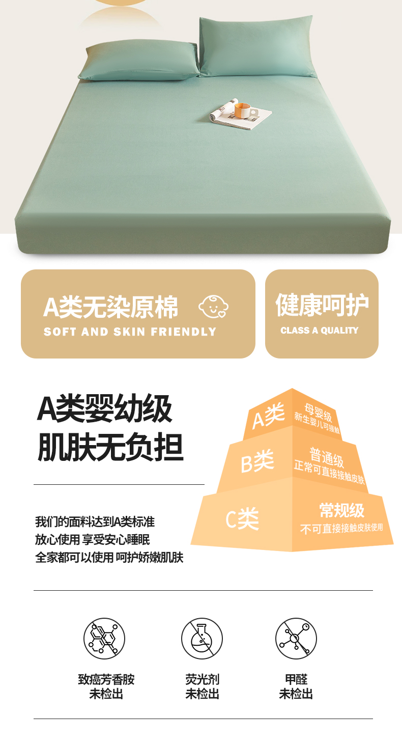 (总)伊人坊 2024新款原棉大豆防水床护垫,明月白,碧水青,布朗灰,玫瑰粉,米杏色,苹果绿