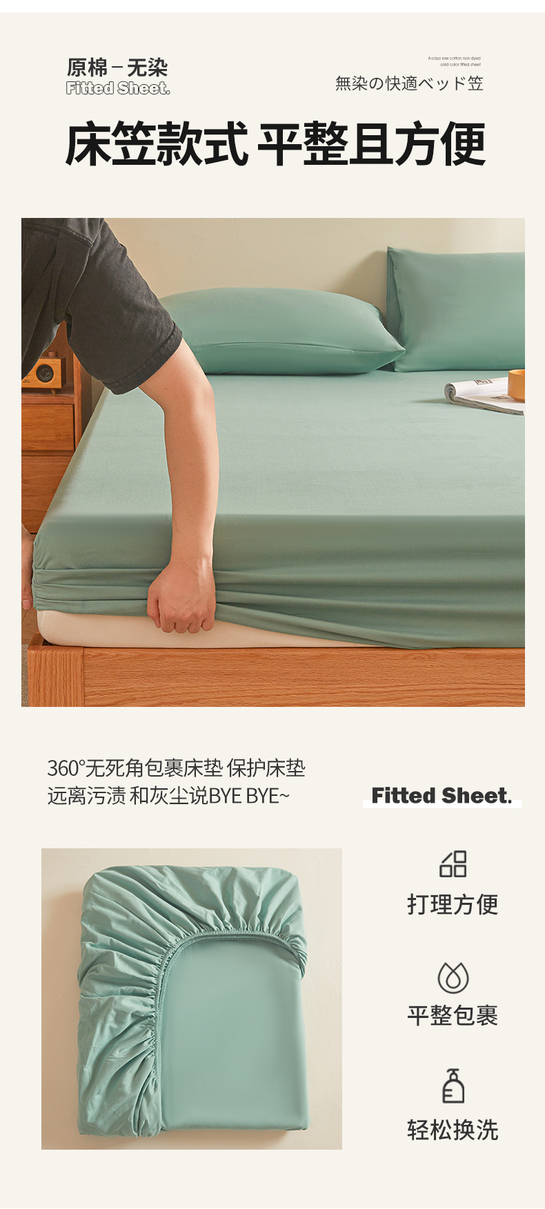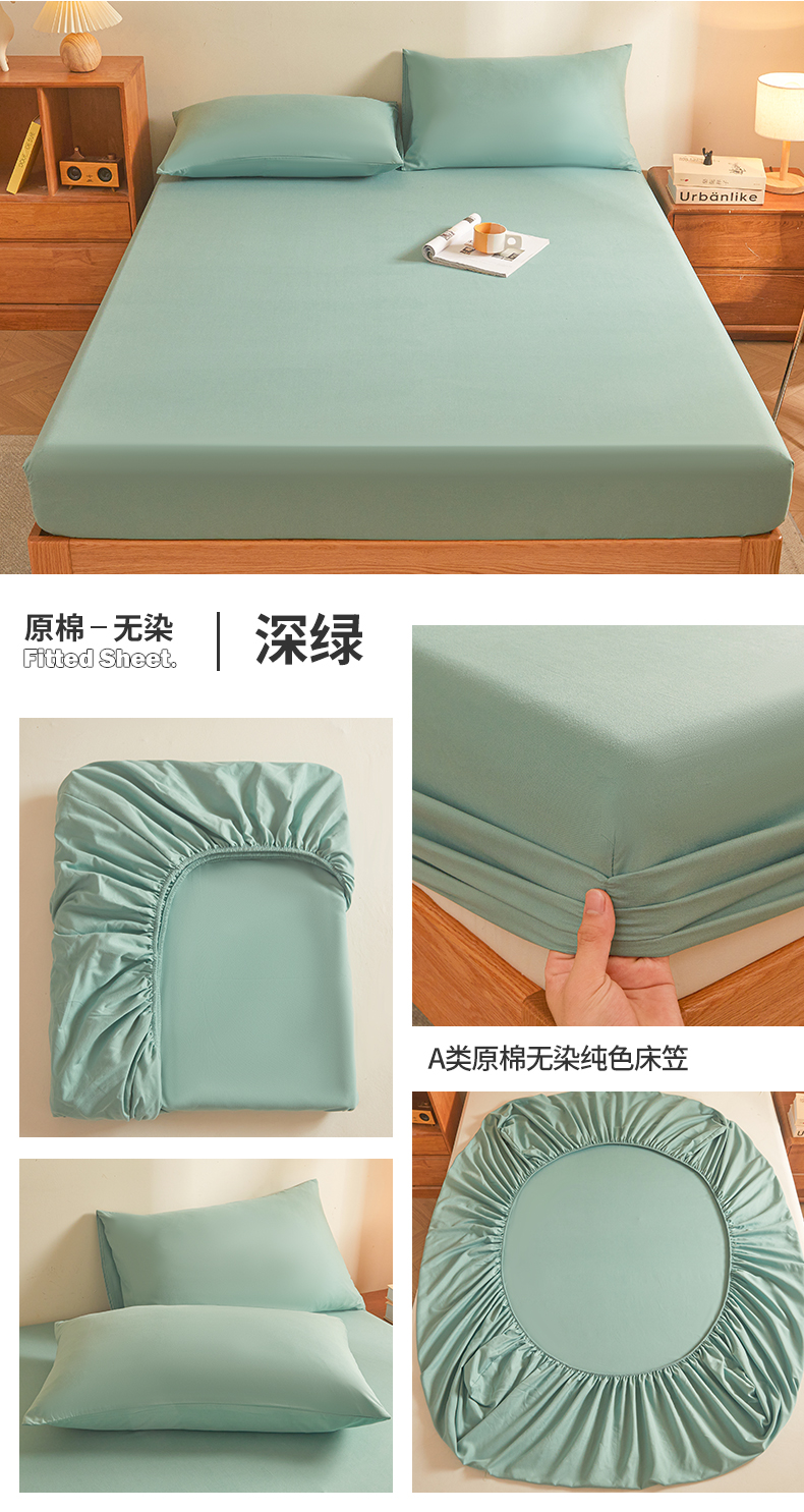 商品名称:伊人坊 2024新款原棉单层床笠 深绿