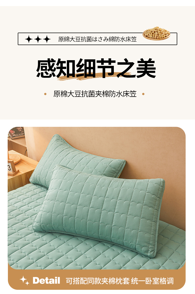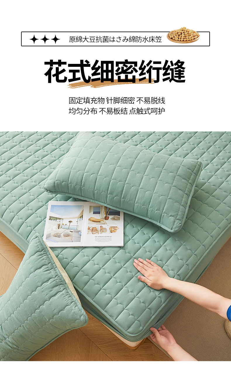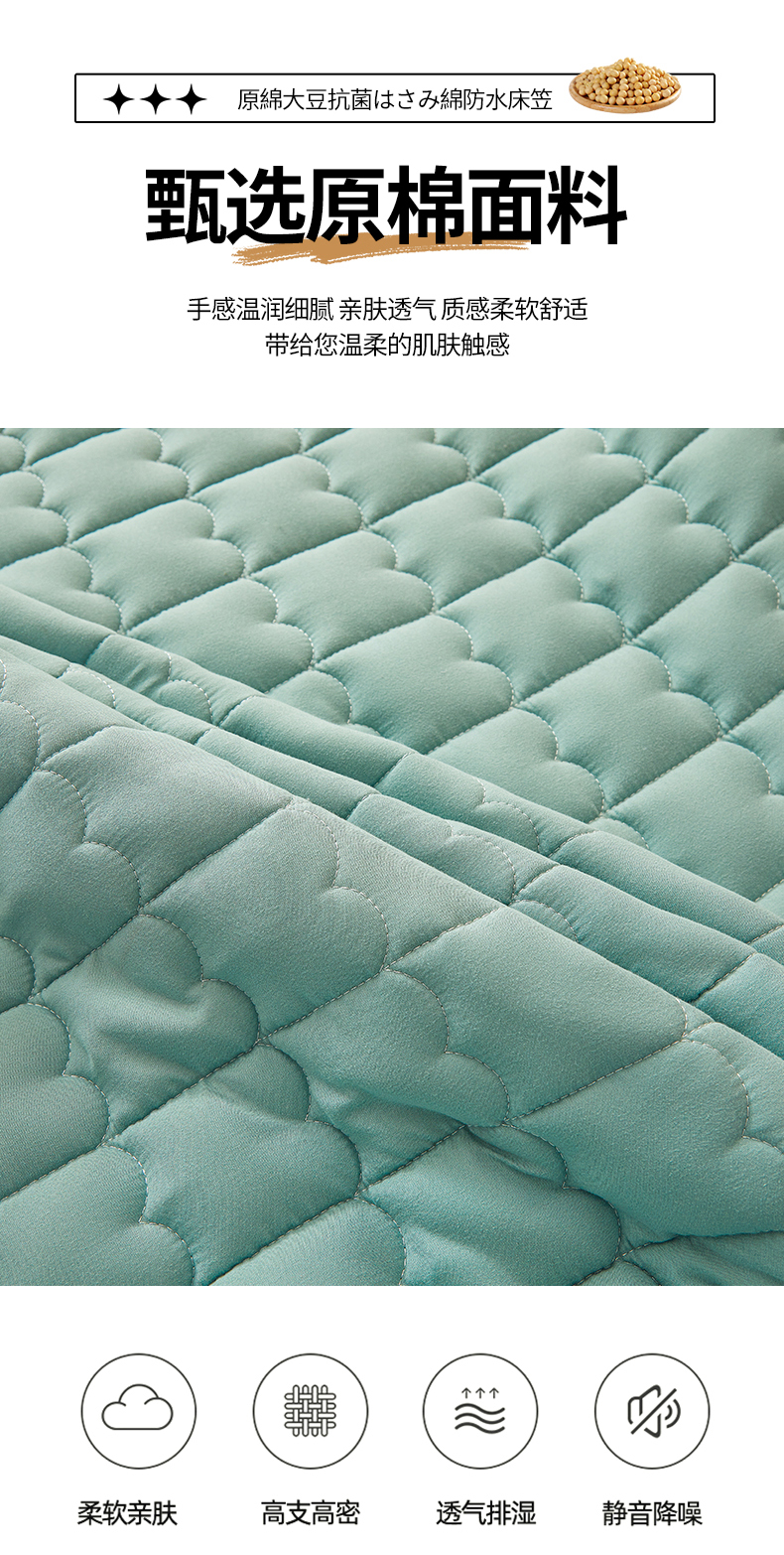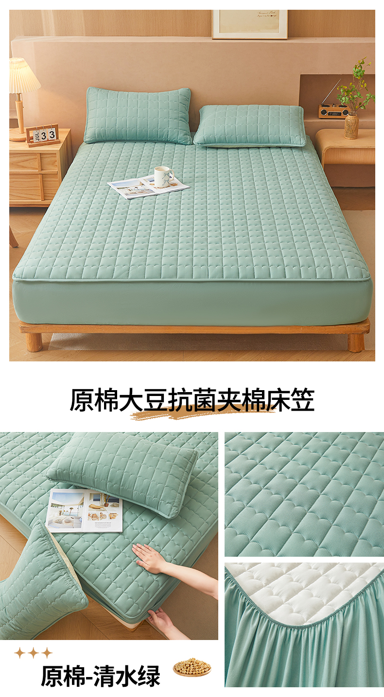 商品名称:伊人坊 2024新款原棉大豆夹棉防水床笠 原棉-清水绿