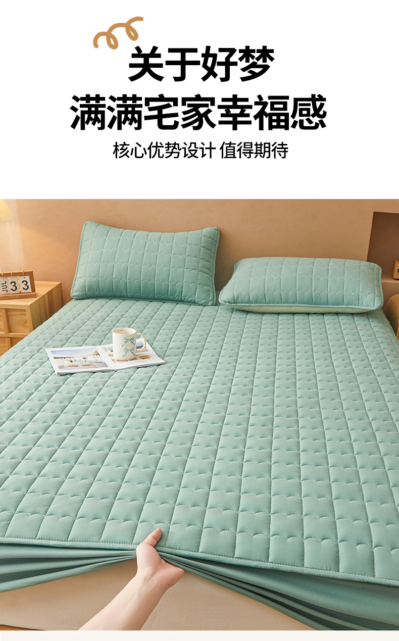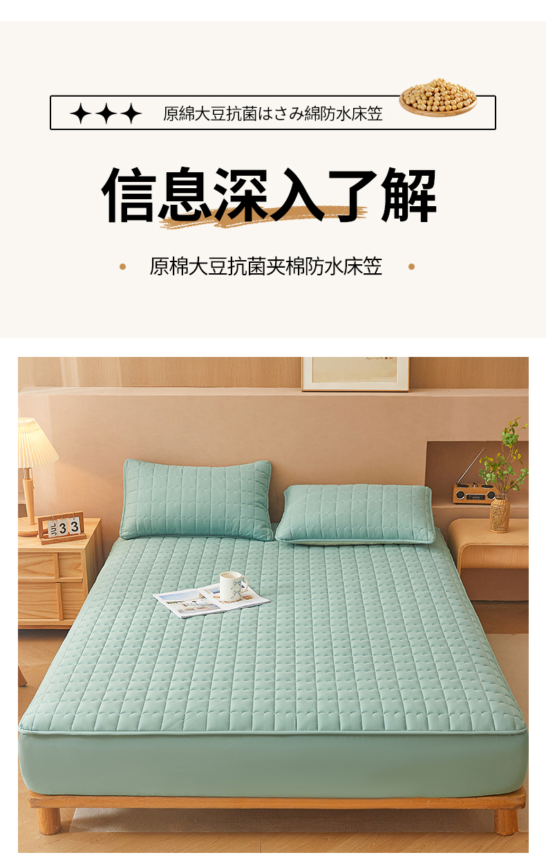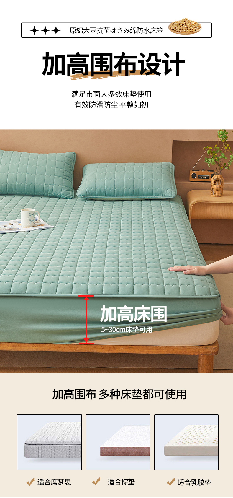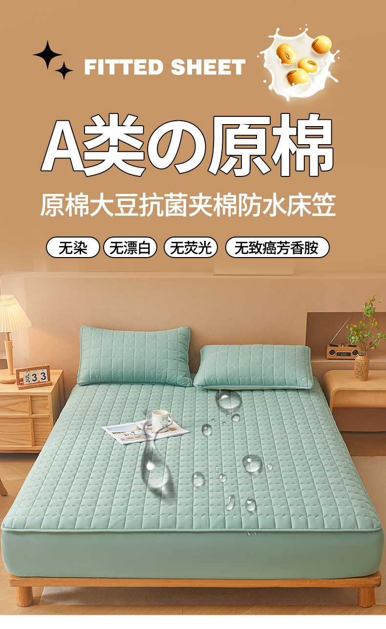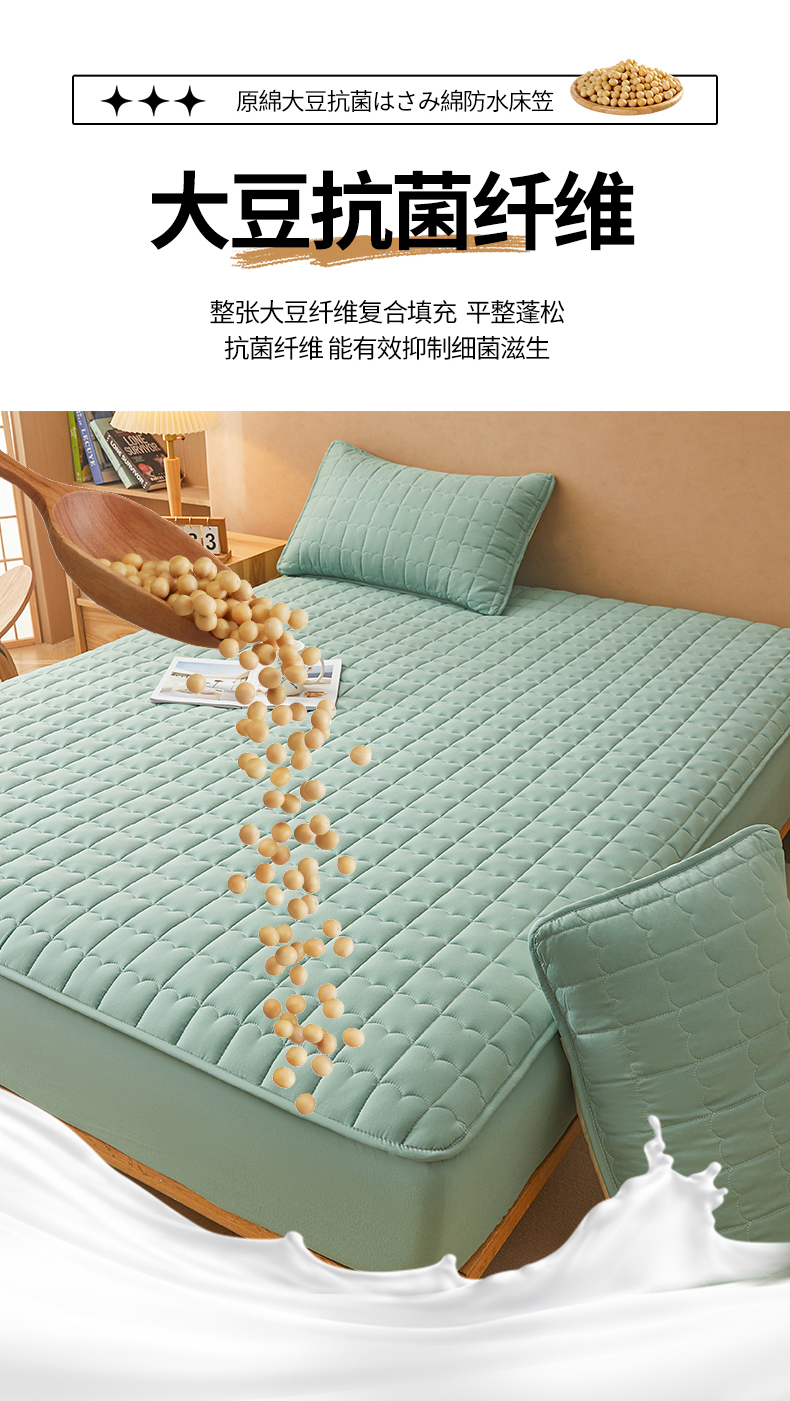 商品名称:伊人坊 2024新款原棉大豆夹棉防水床笠 原棉-清水绿