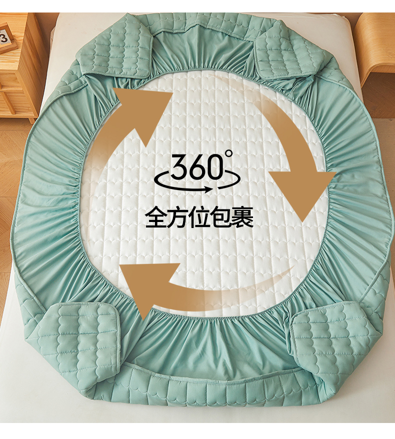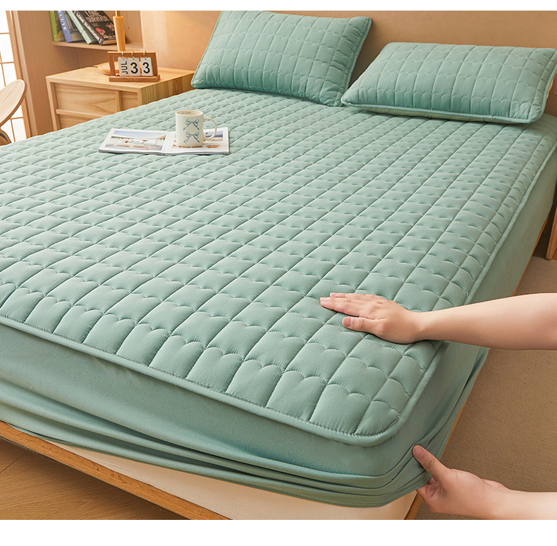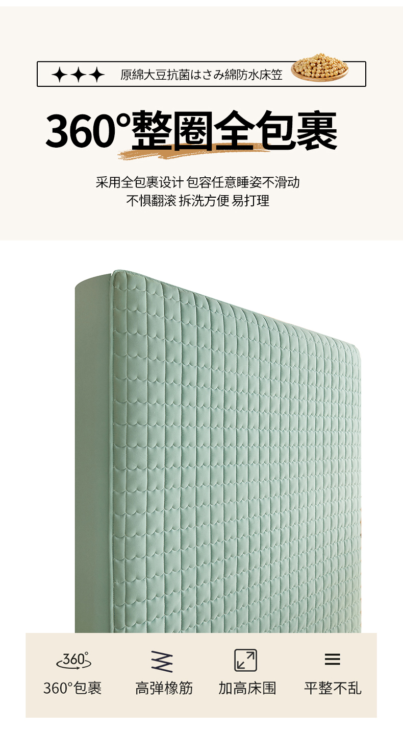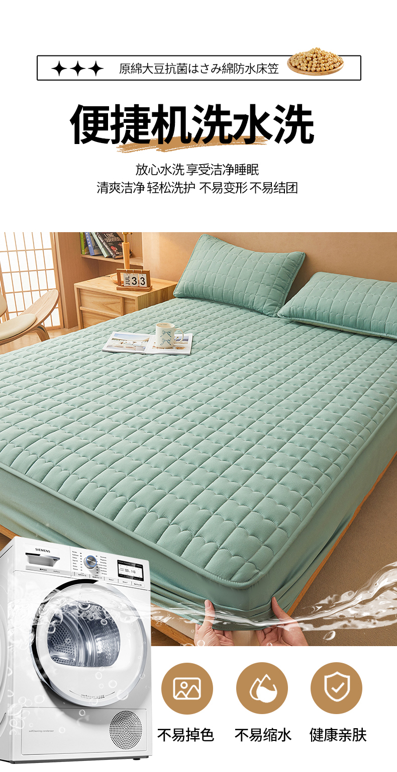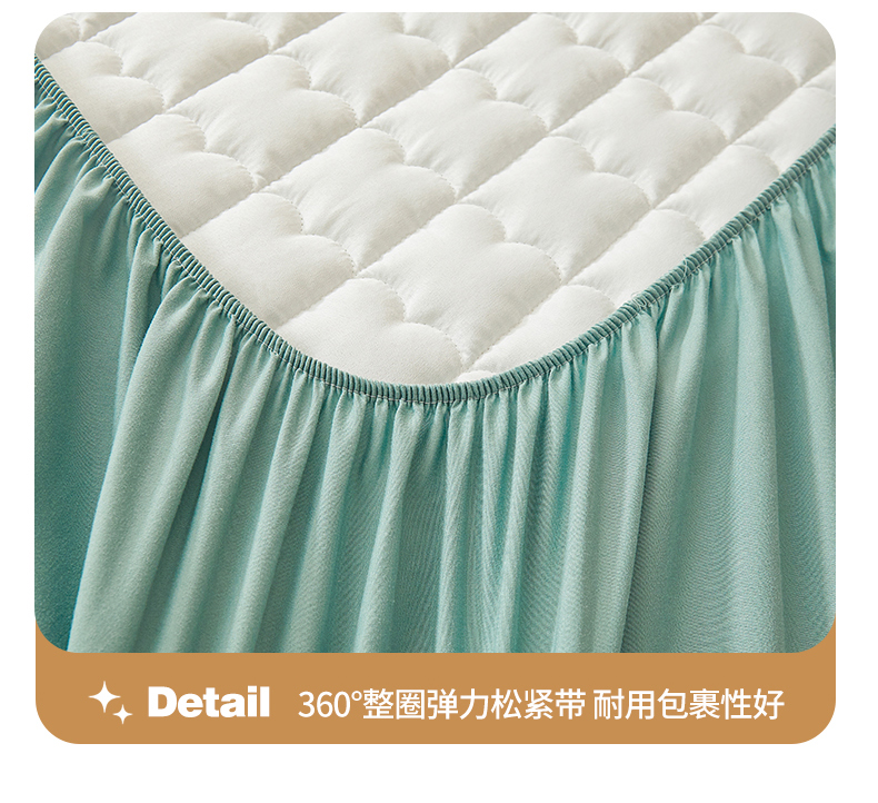 商品名称:伊人坊 2024新款原棉大豆夹棉防水床笠 原棉-清水绿