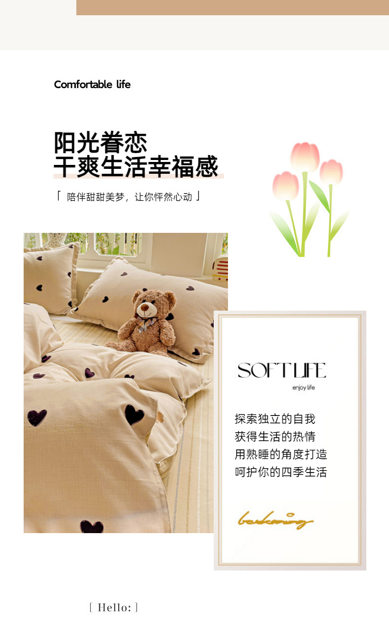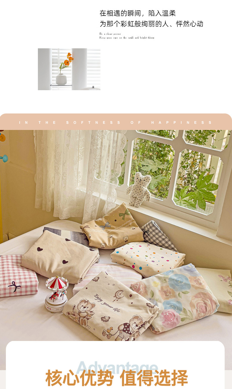 (总)麦瑞家纺 2024新款小清新水洗糯糯棉四件套,你好小熊,夕颜,小苍兰,淘气狗,清雅-粉,清雅-紫,爱丽丝,玫瑰园,繁花,绅士熊,花园兔,花开半夏,花镜,贝尼熊,迷迭香,郁金香