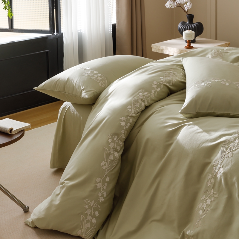 商品名称:(总)初拾 2024新款100s澳棉刺绣-铃兰花语系列四件套