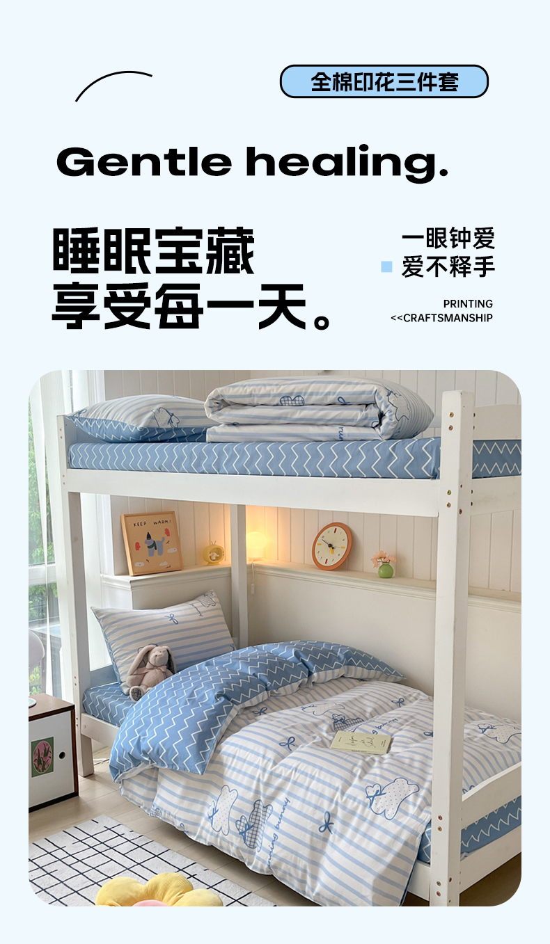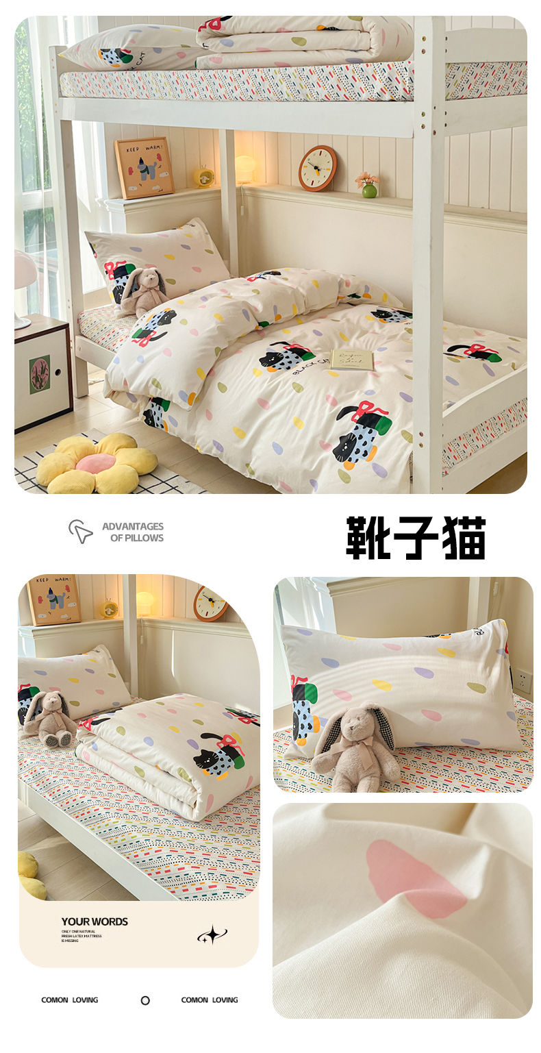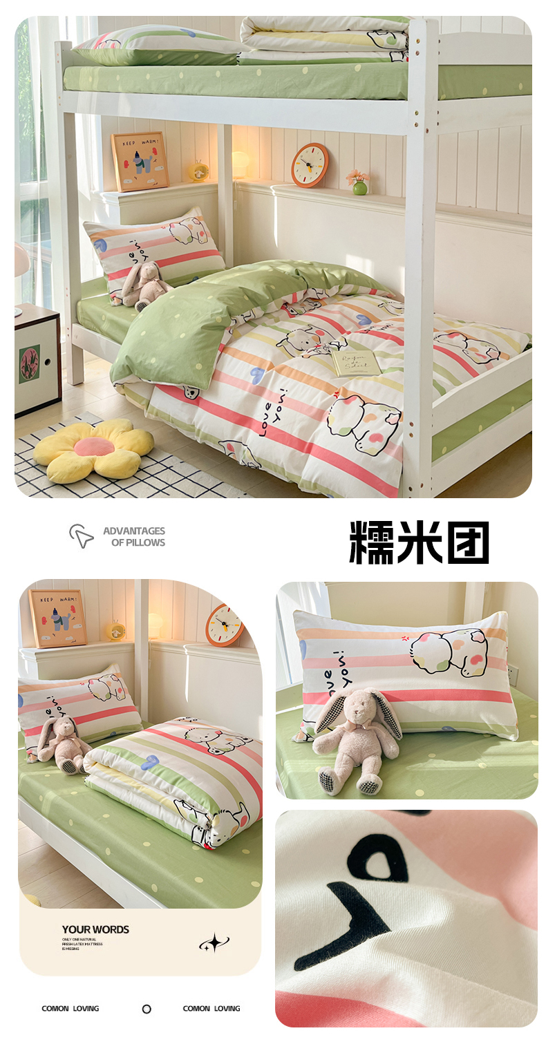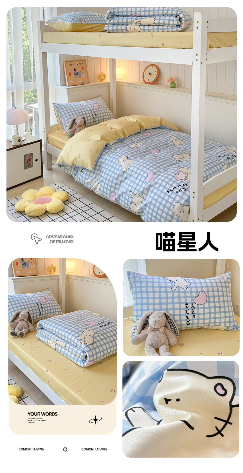 (总)吉象 2025新款全棉印花学生三件套学生宿舍三件套,霸王龙,马里奥,蜜桃兔,太空旅行,悉尼豆沙,悉尼绿