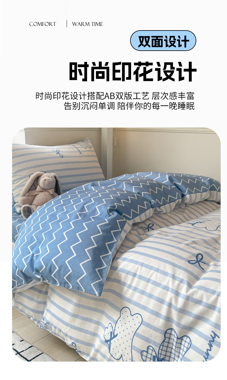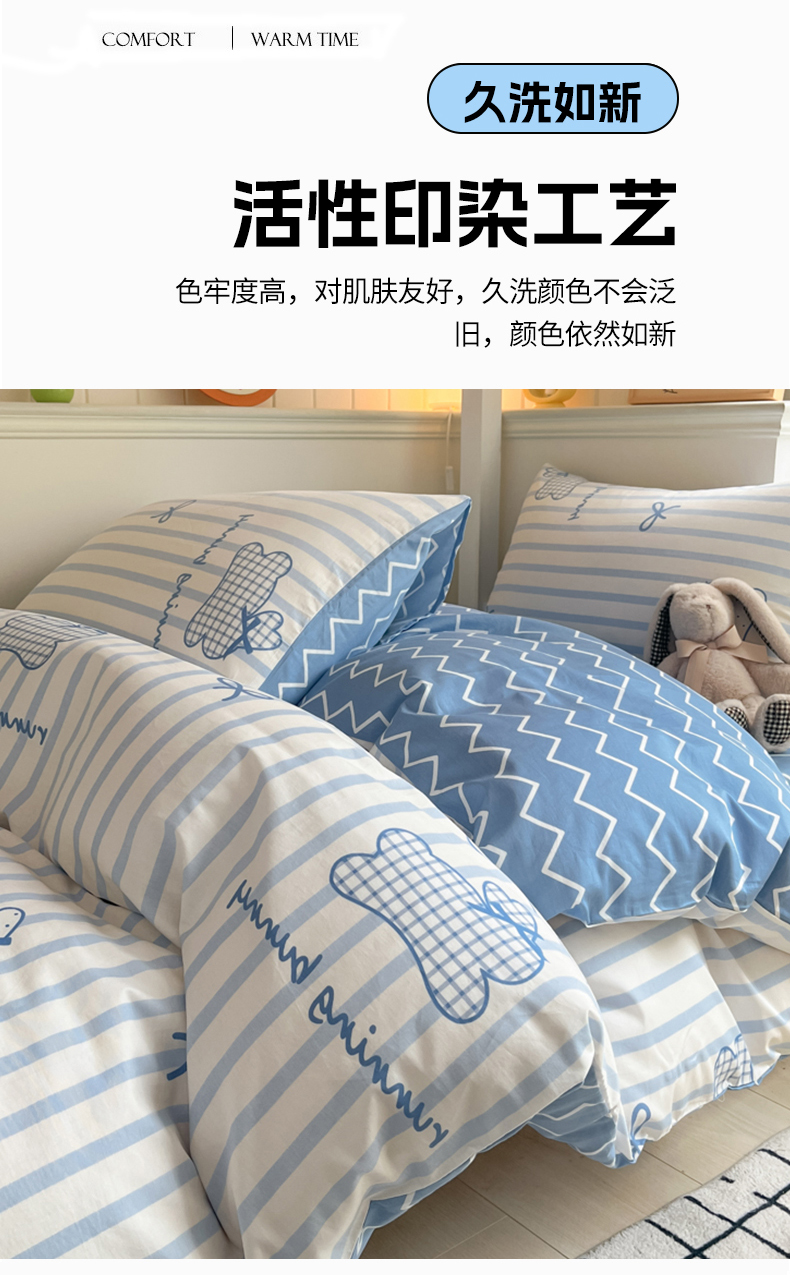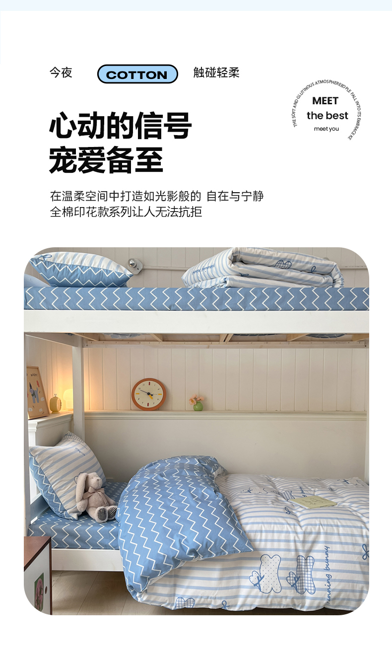 (总)吉象家纺 2025新款12868全棉印花单被套,蓝色泡芙狗,蘑菇小兔,奶油甜心熊,碎花狗狗,碎花小兔,爪爪会客厅