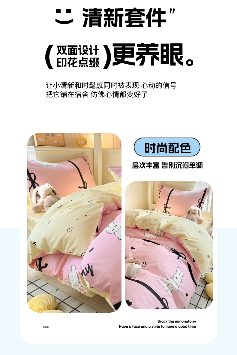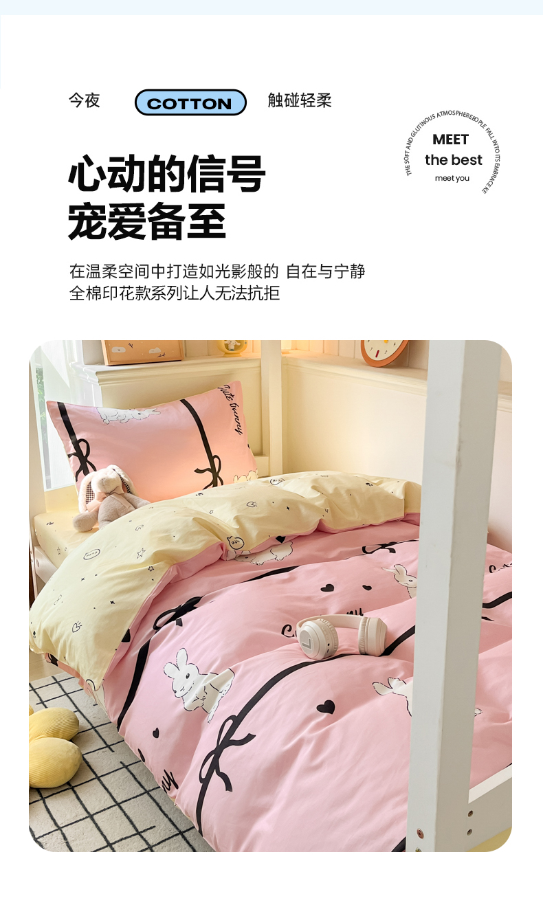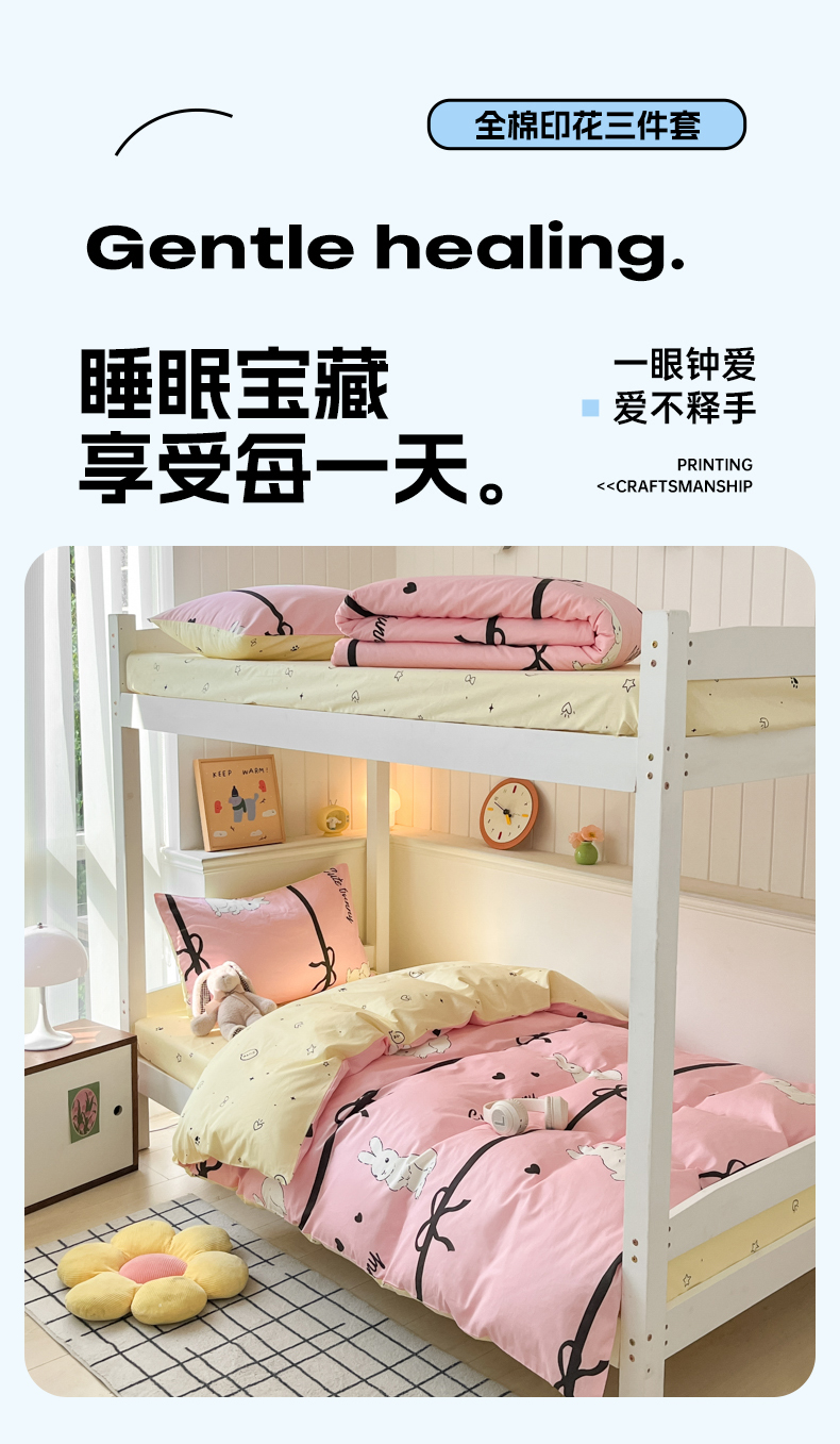 (总)吉象 2025新款全棉印花学生三件套学生宿舍三件套,霸王龙,马里奥,蜜桃兔,太空旅行,悉尼豆沙,悉尼绿