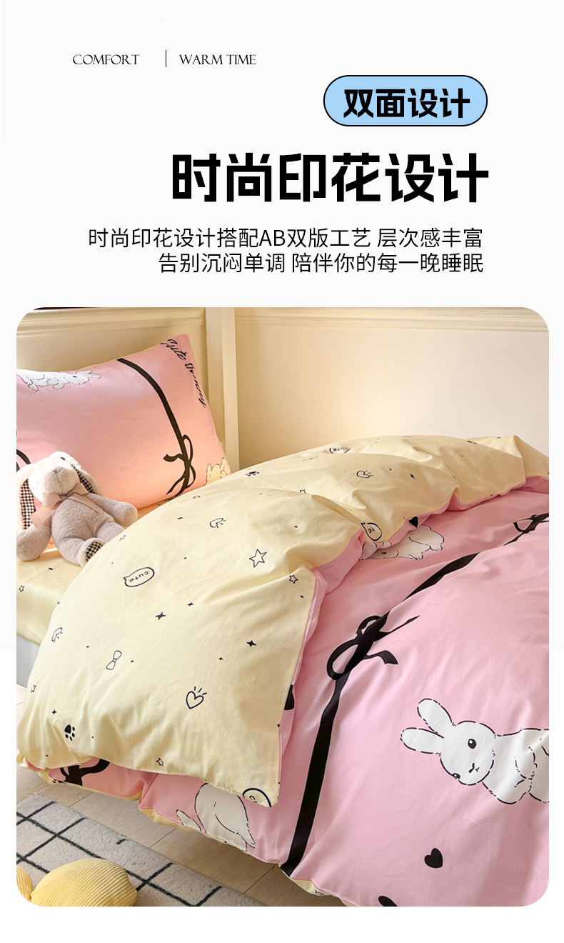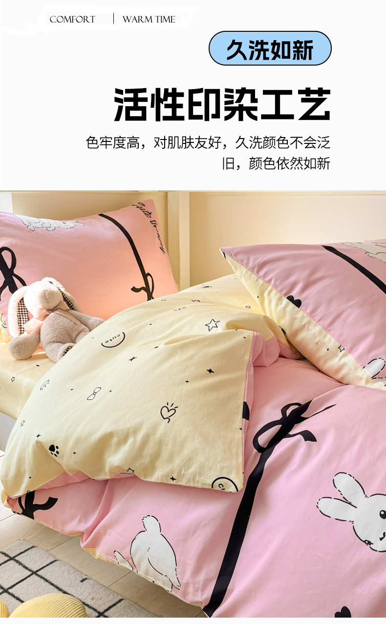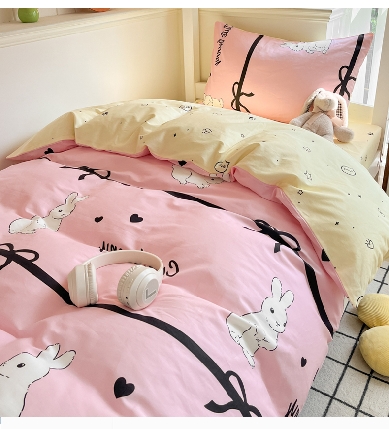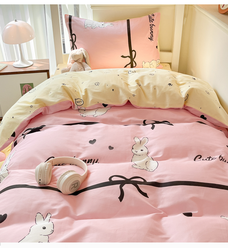 吉象家纺 2025新款全棉印花款三件套 玉兔-浅粉