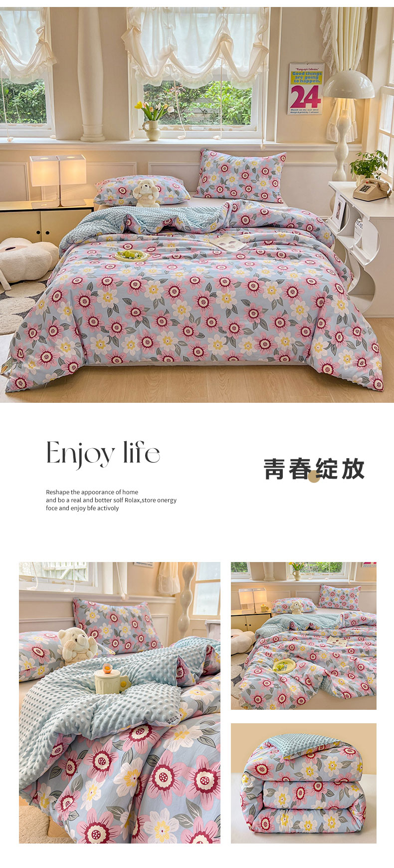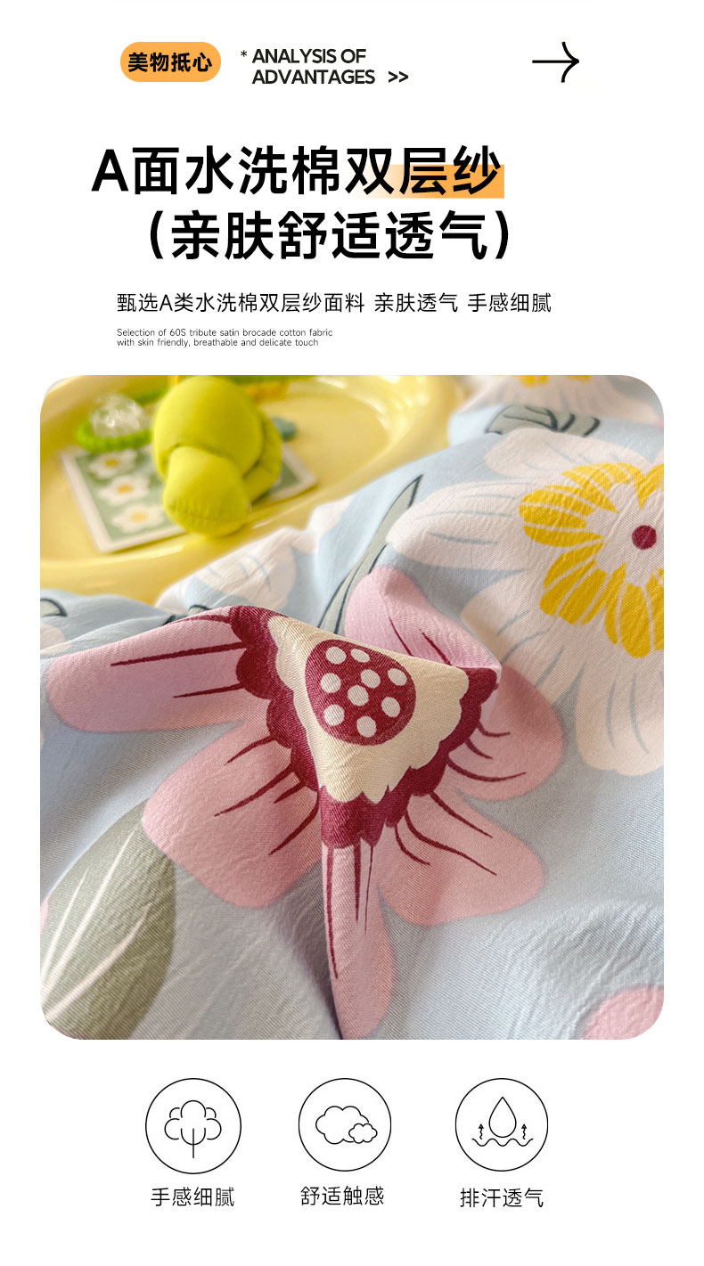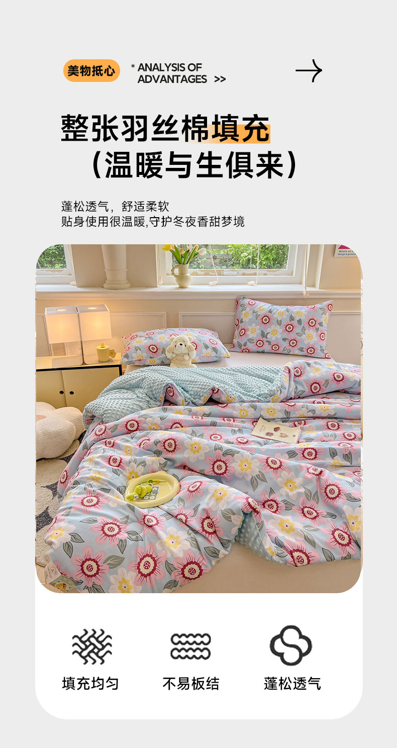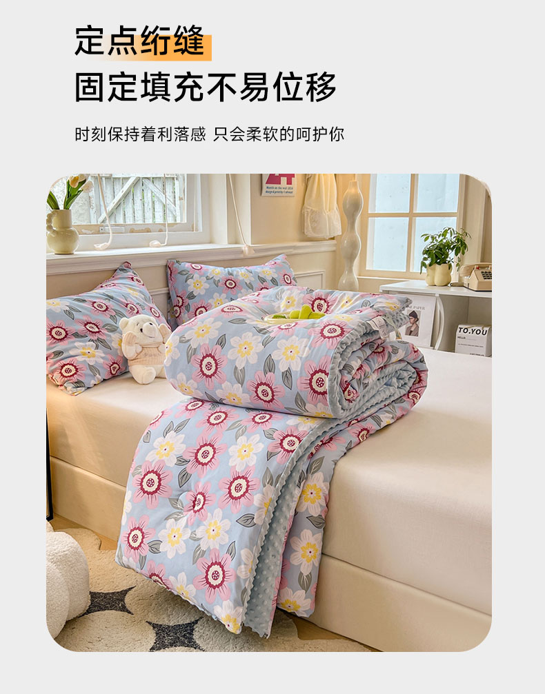 • 91家纺网 家纺一手货源 找家纺 居易简 2025新款水洗棉双层纱豆豆被加绒被子被芯直播豆豆绒被被子被芯冬被春秋被 海棠朵朵
