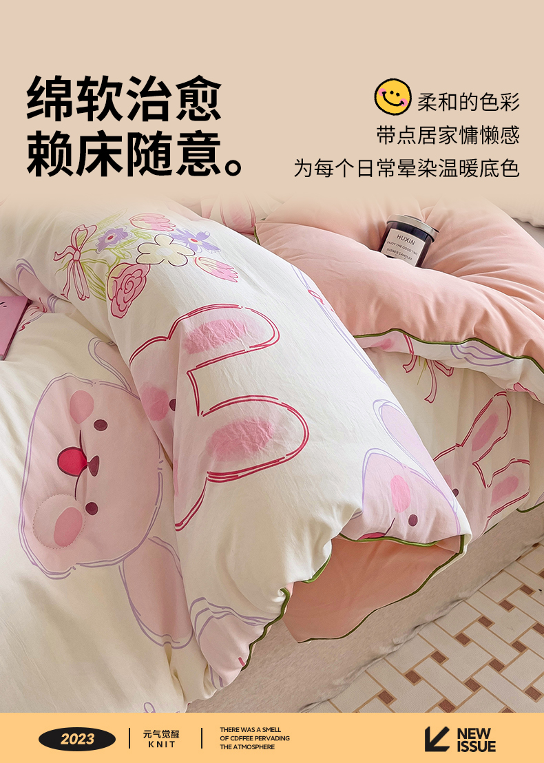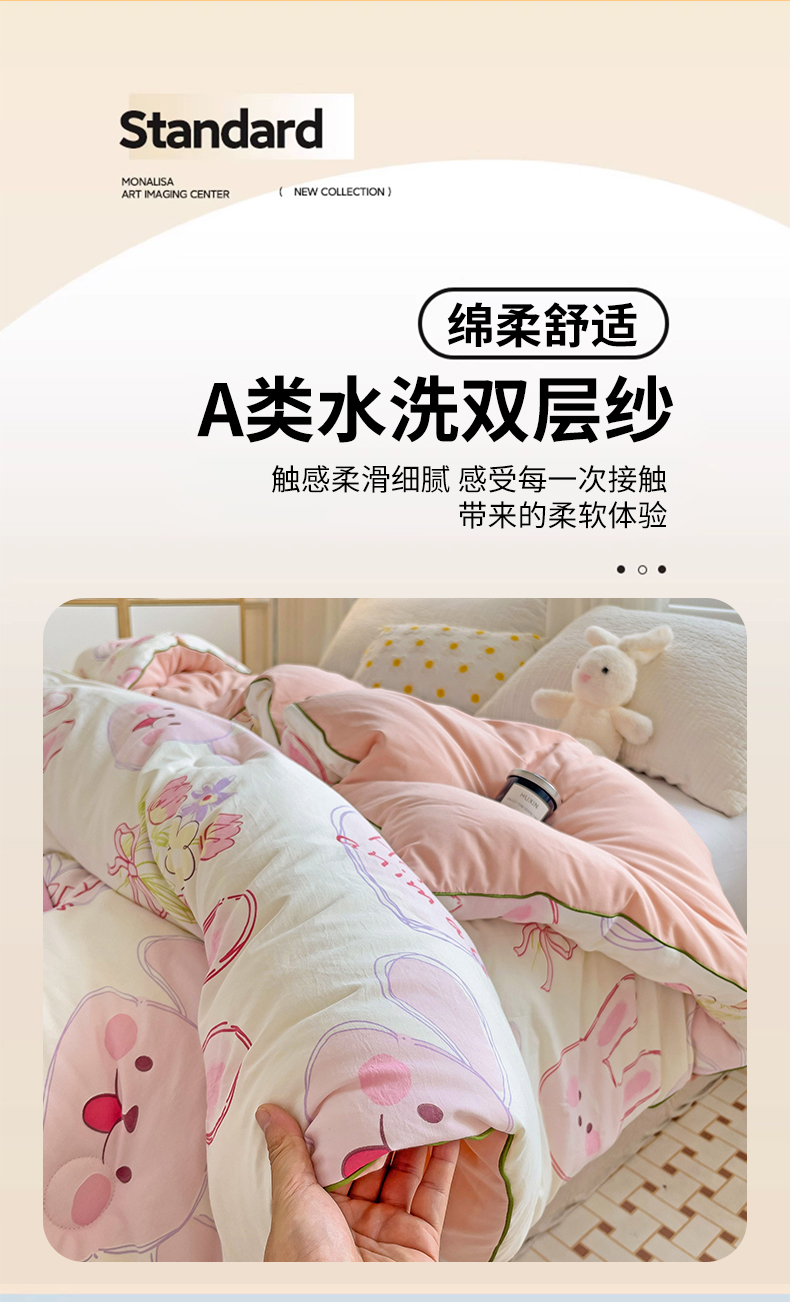商品名称:艺菲阁家纺 2024新款A类水洗双层纱大豆纤维被冬被 椰椰兔