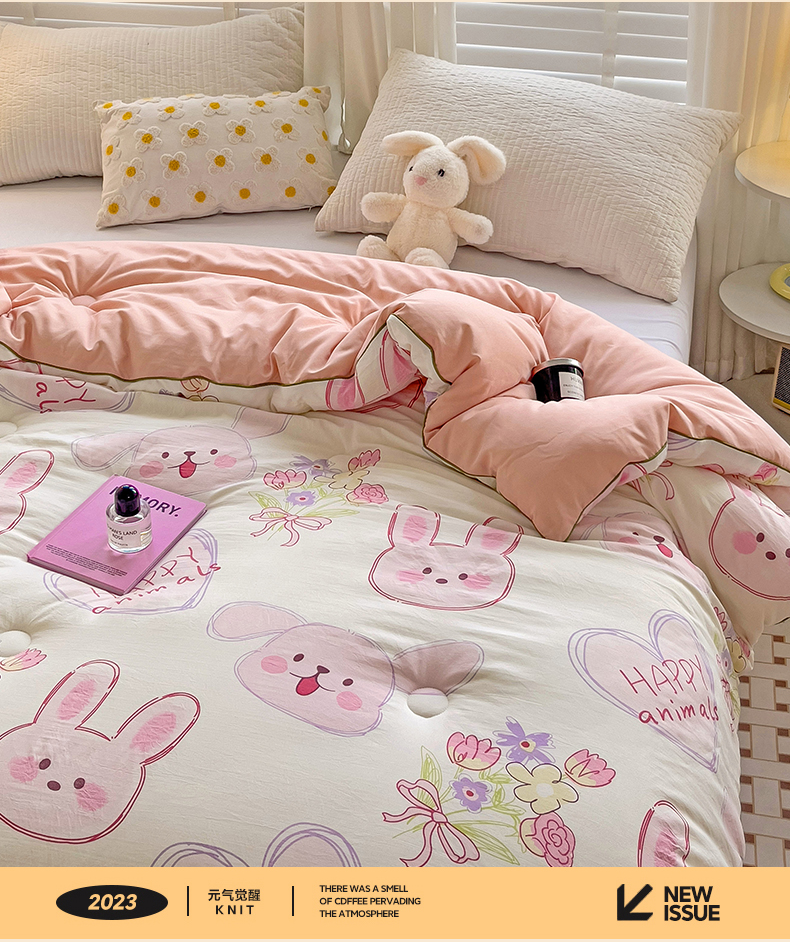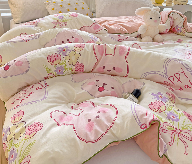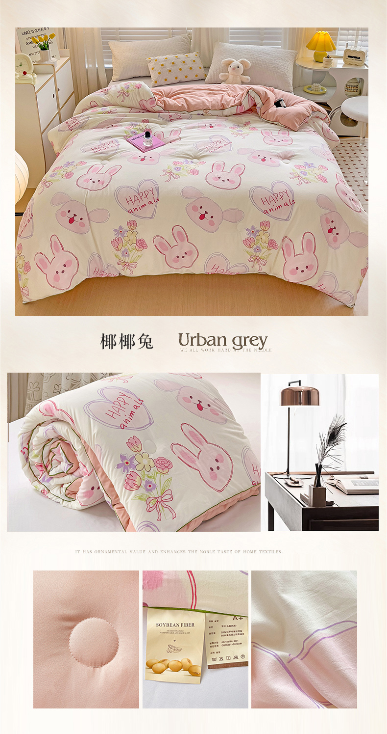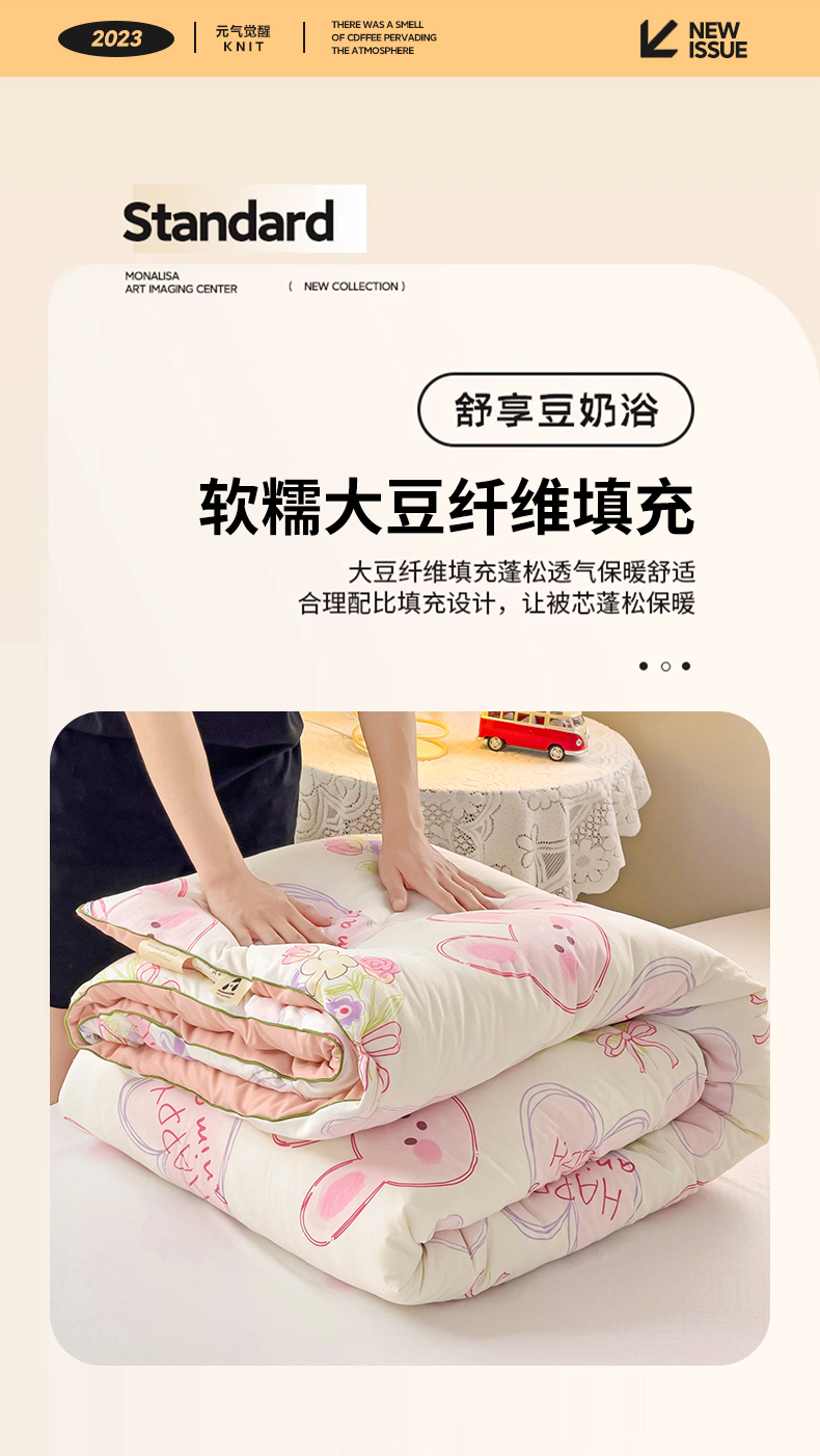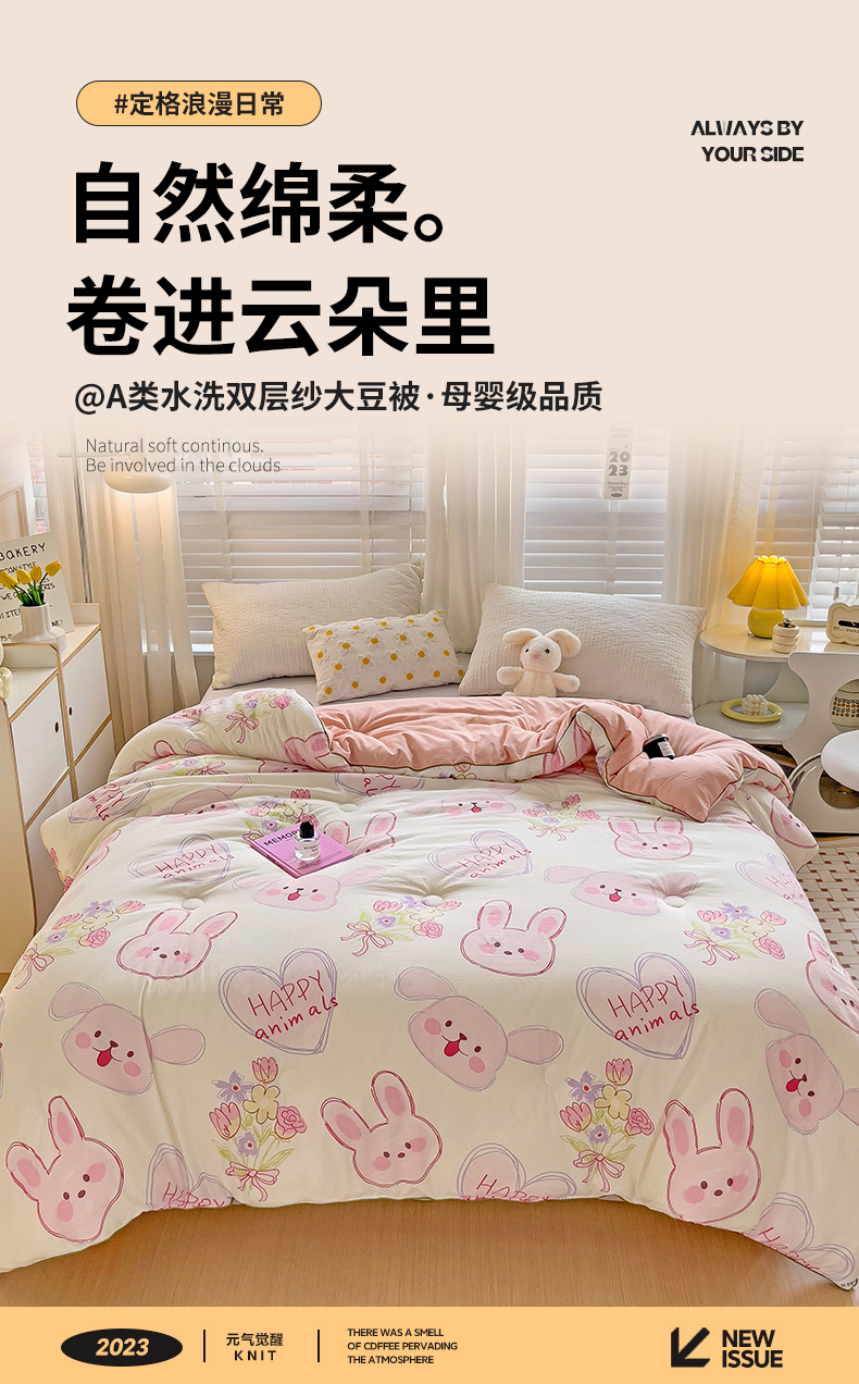 艺菲阁家纺 2024新款A类水洗双层纱大豆纤维被冬被 椰椰兔