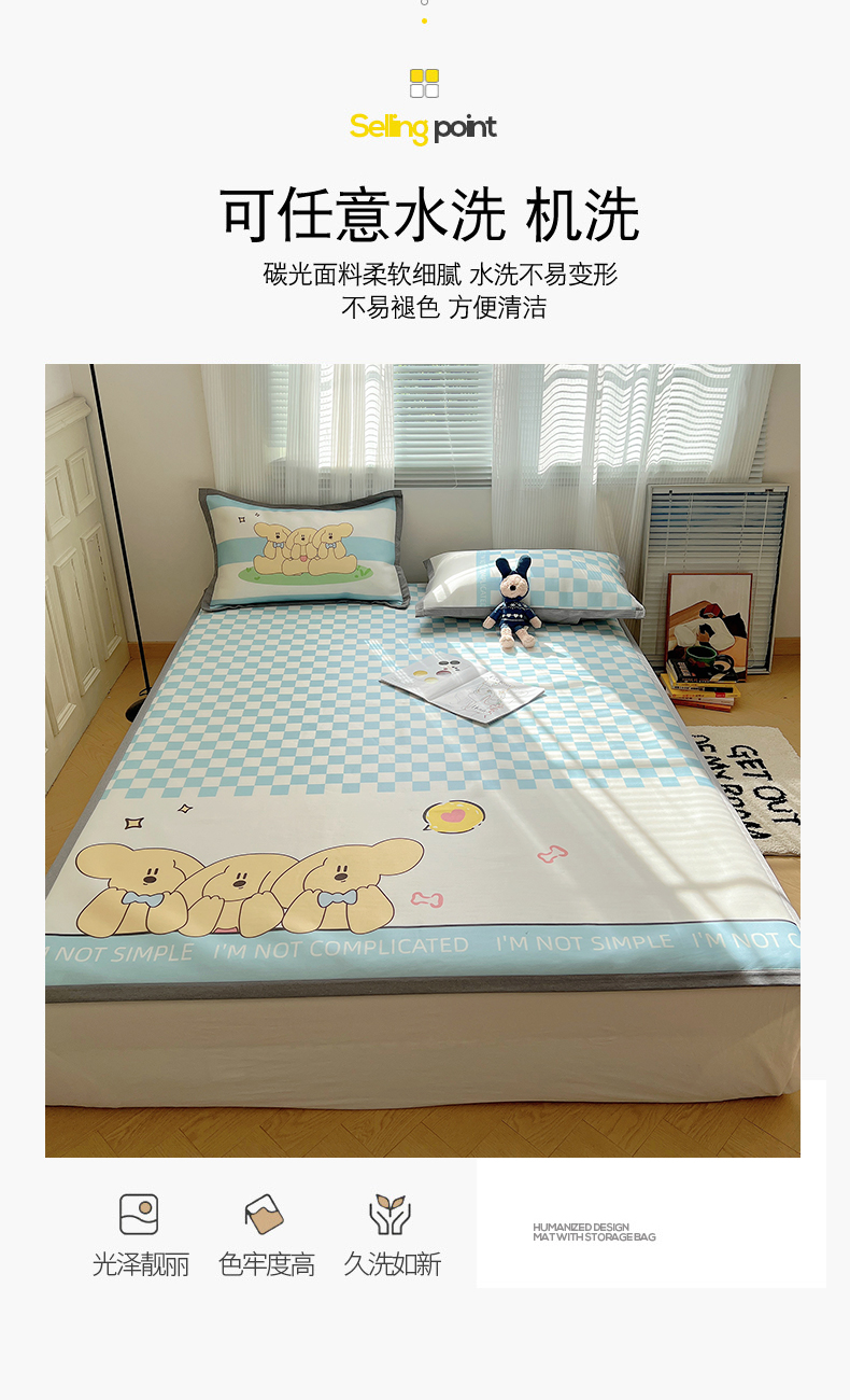 商品名称:繁花 2024新款印花碳光牛奶丝凉席 爱心小兔