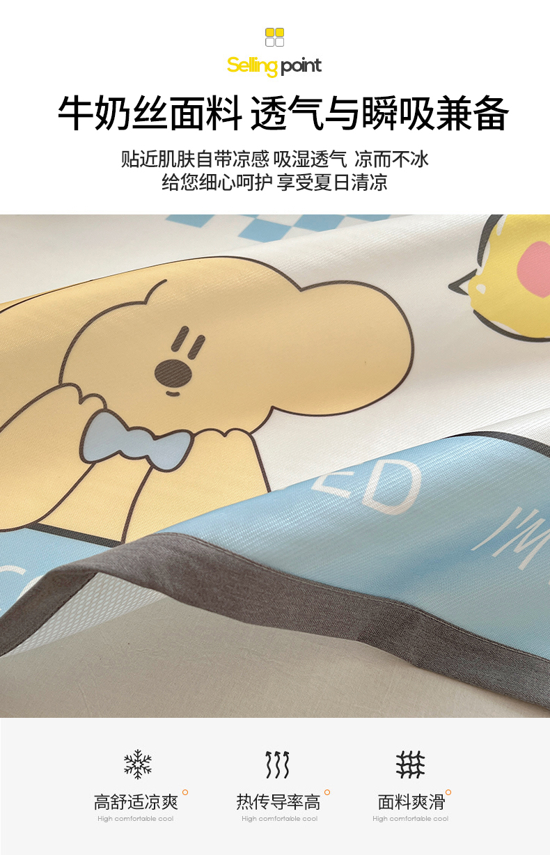 繁花 2024新款印花碳光牛奶丝凉席 爱心小兔