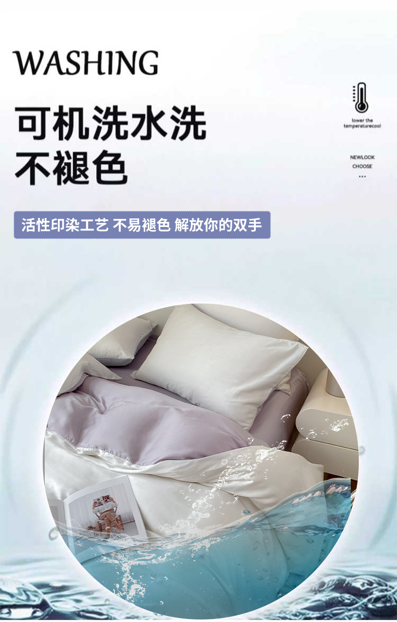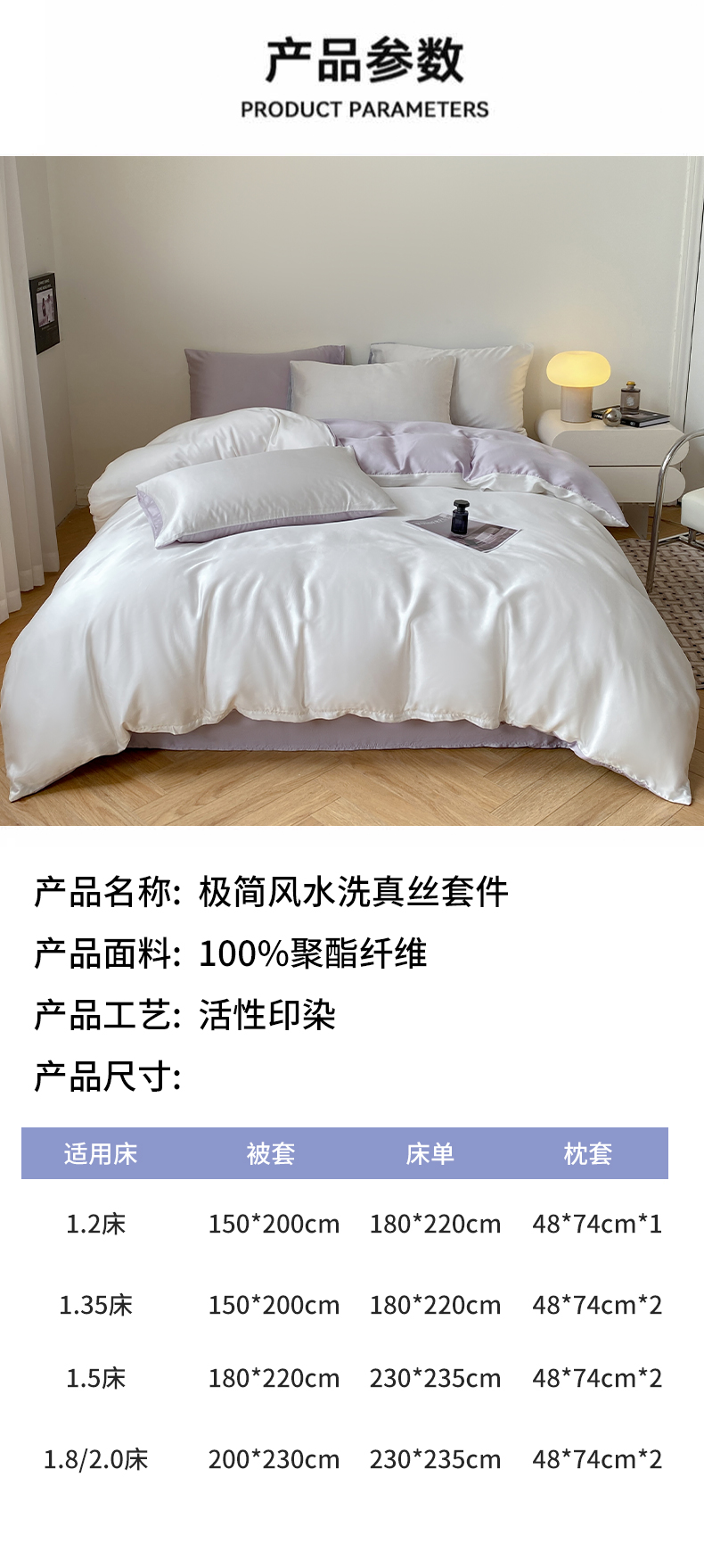 商品名称:繁花 2024新款极简风水洗真丝四件套-风格一 极白奶紫