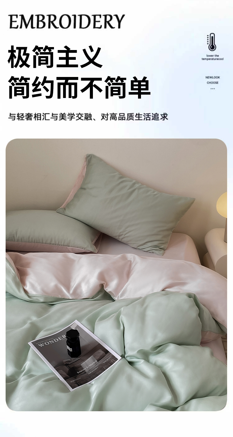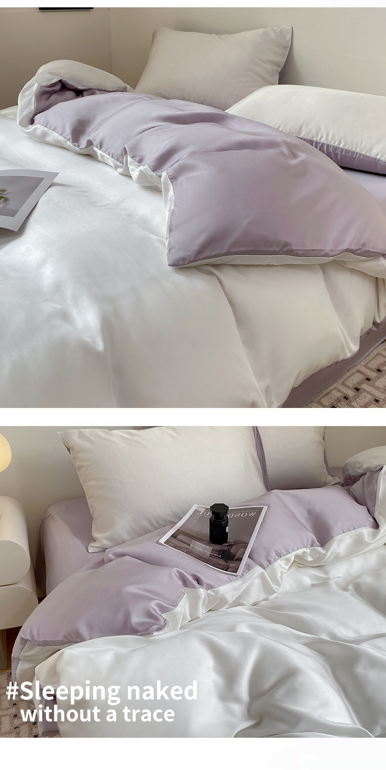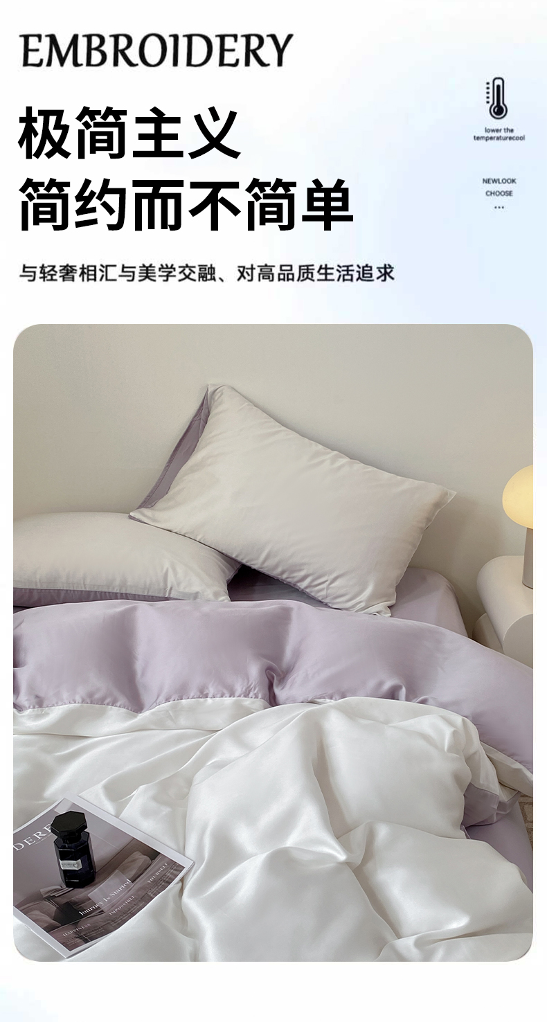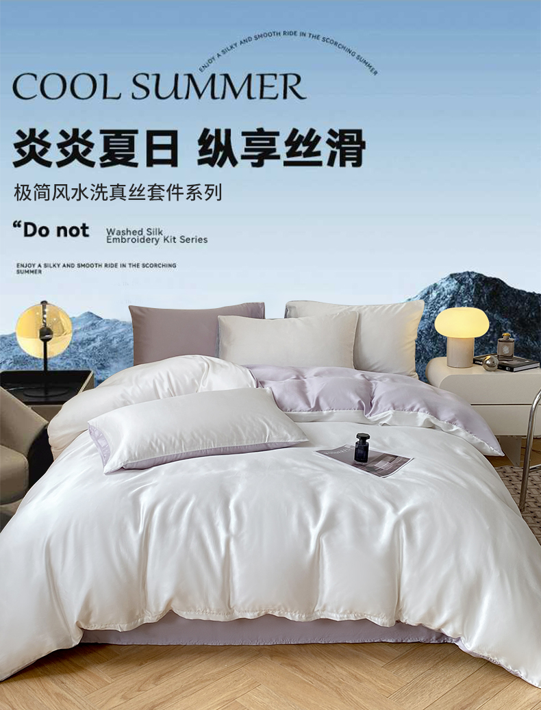 繁花 2024新款极简风水洗真丝四件套-风格一 极白奶紫