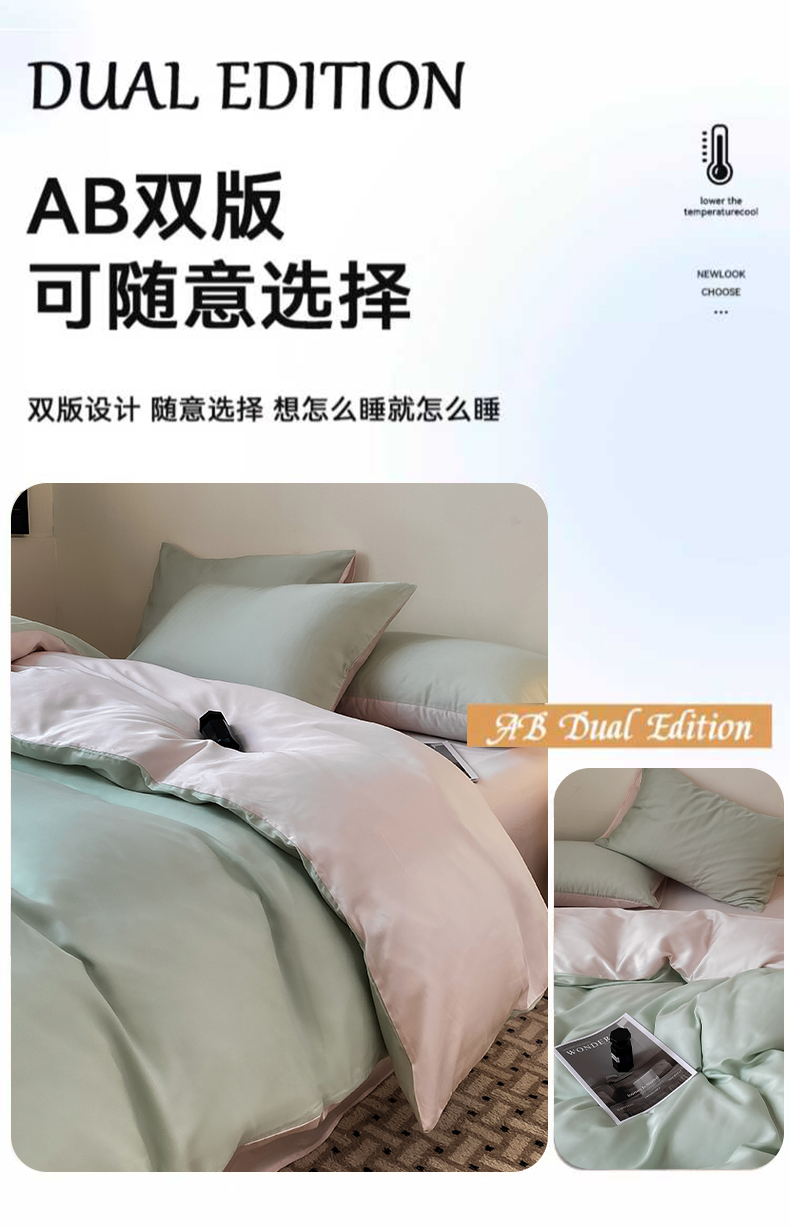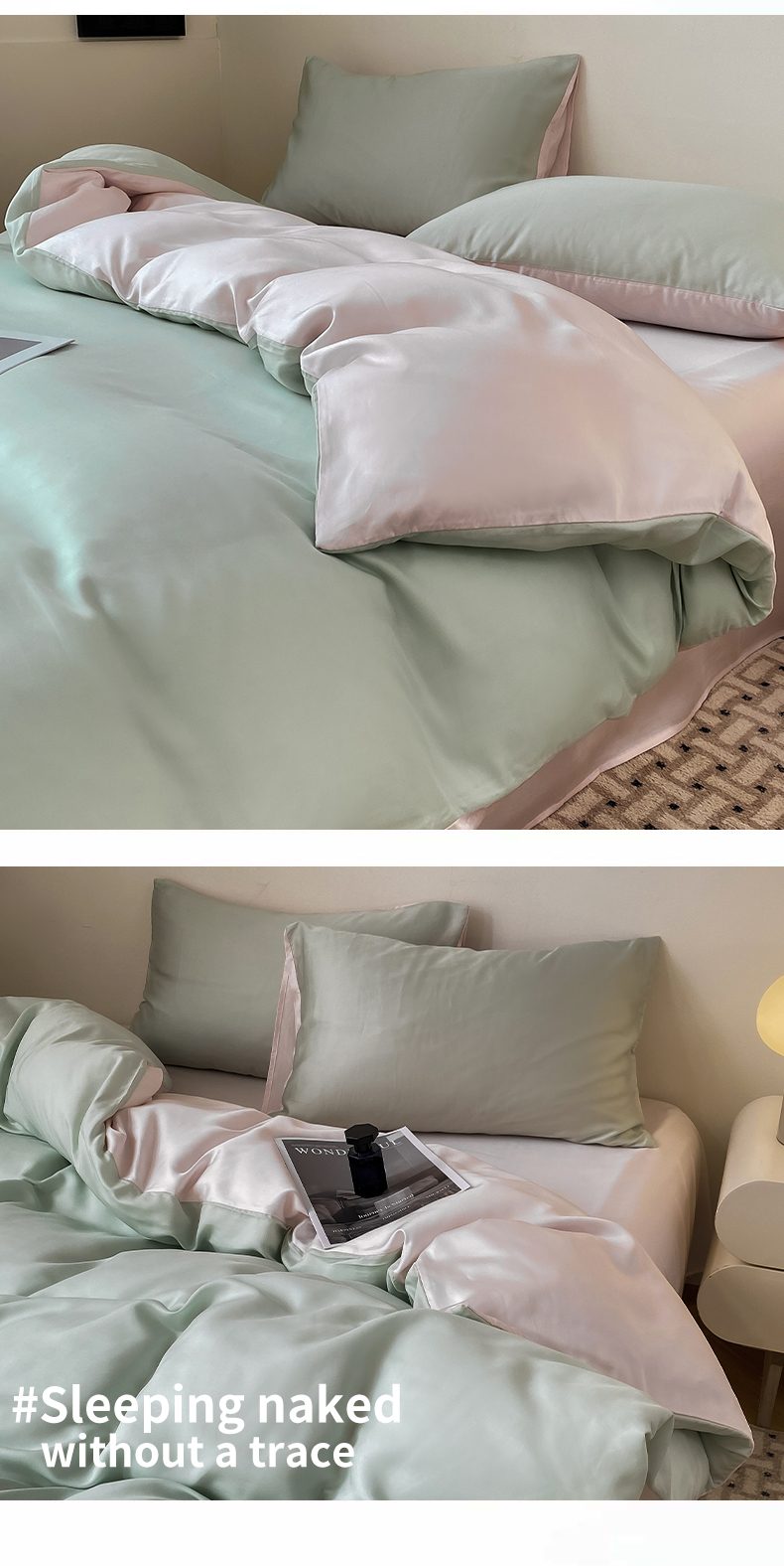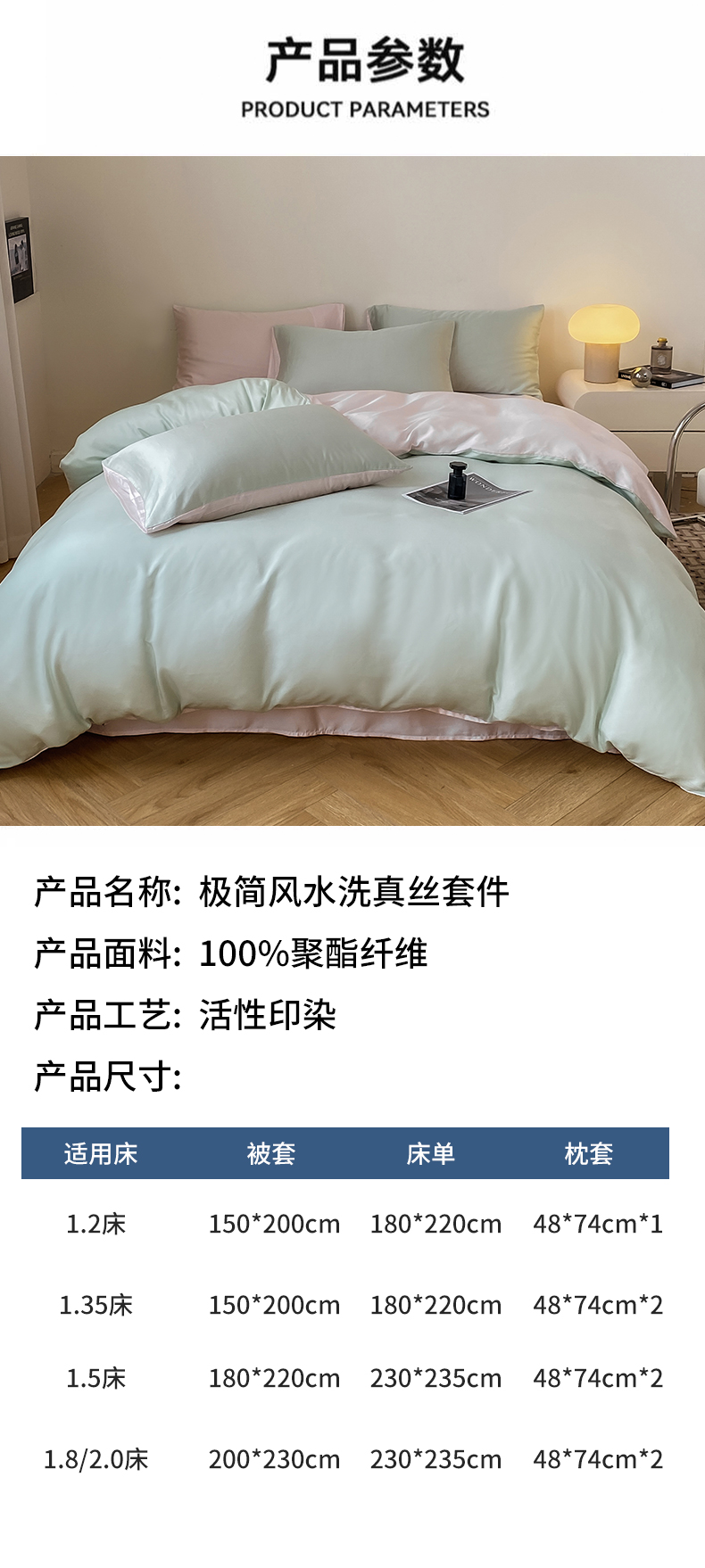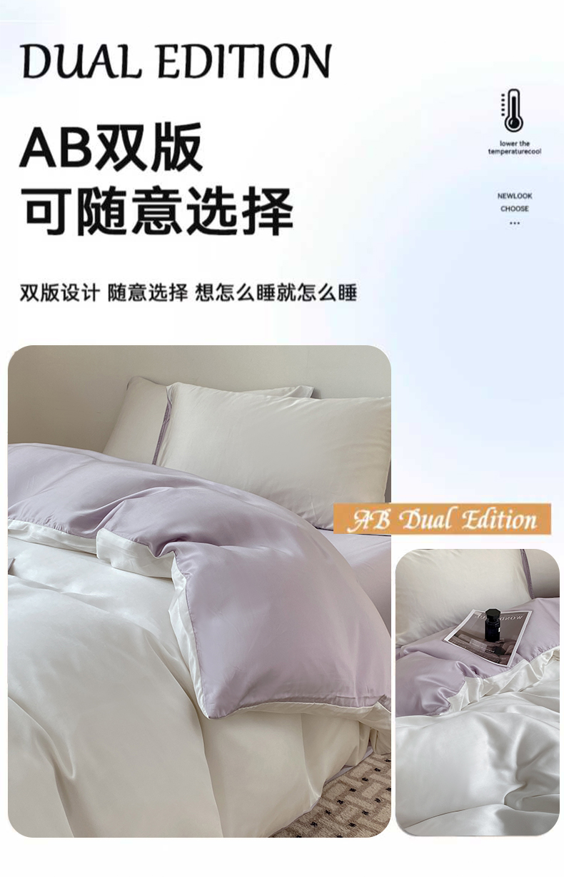 繁花 2024新款极简风水洗真丝四件套-风格一 极白奶紫