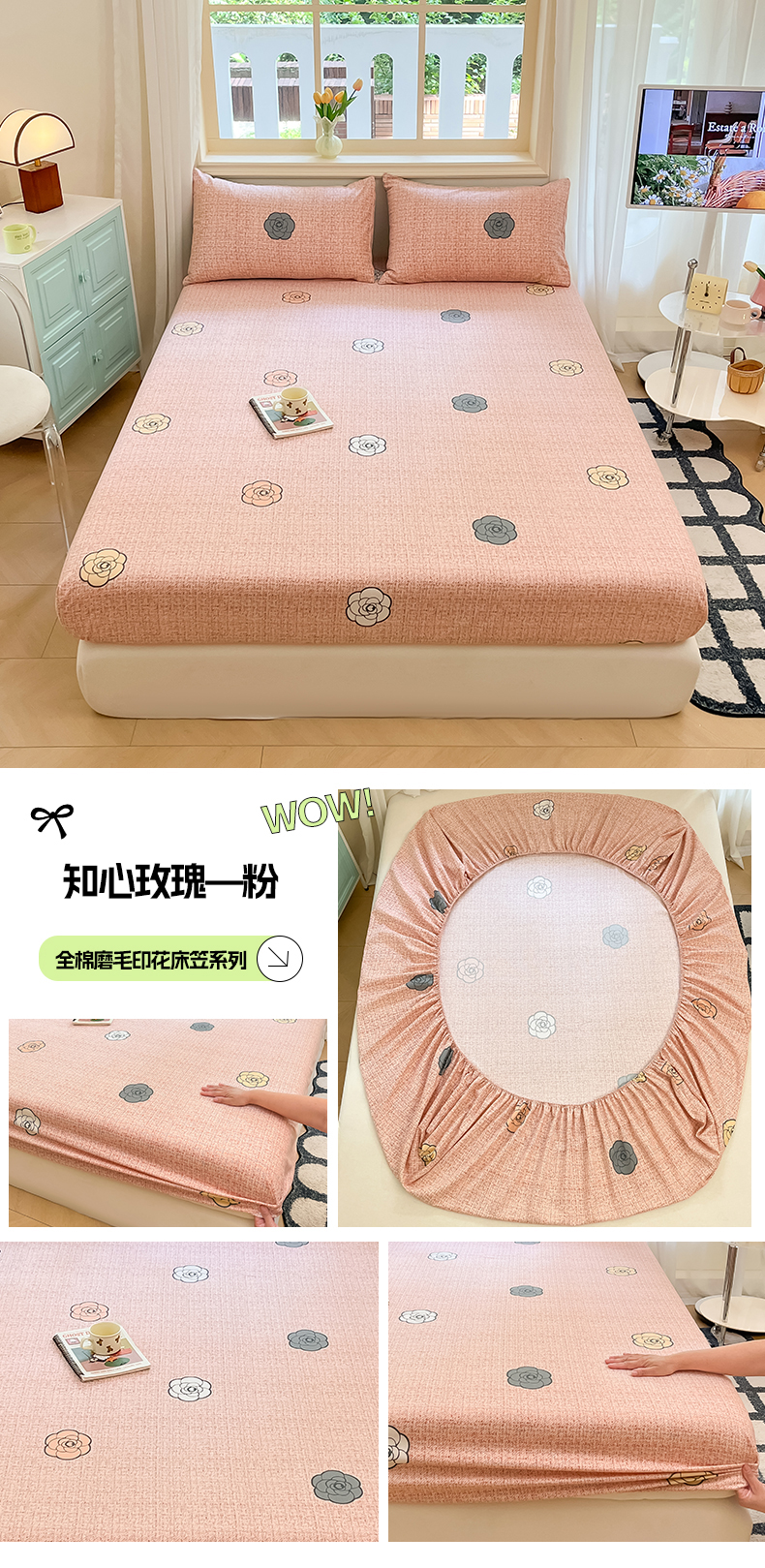 莱米家纺 2024新款全棉磨毛单床笠 知心玫瑰—粉