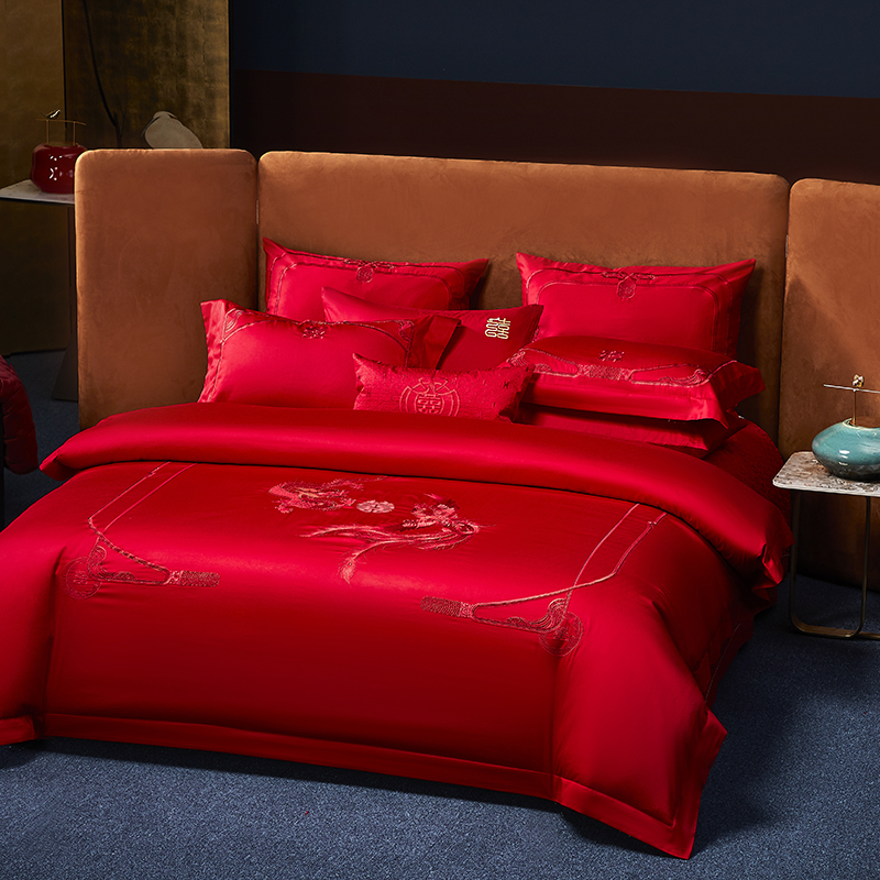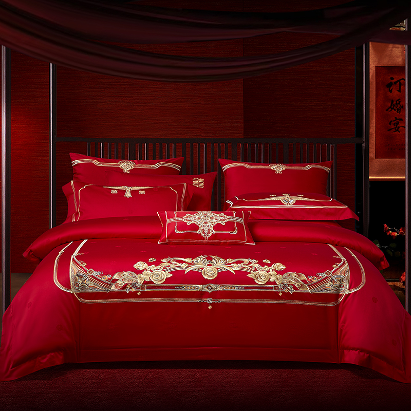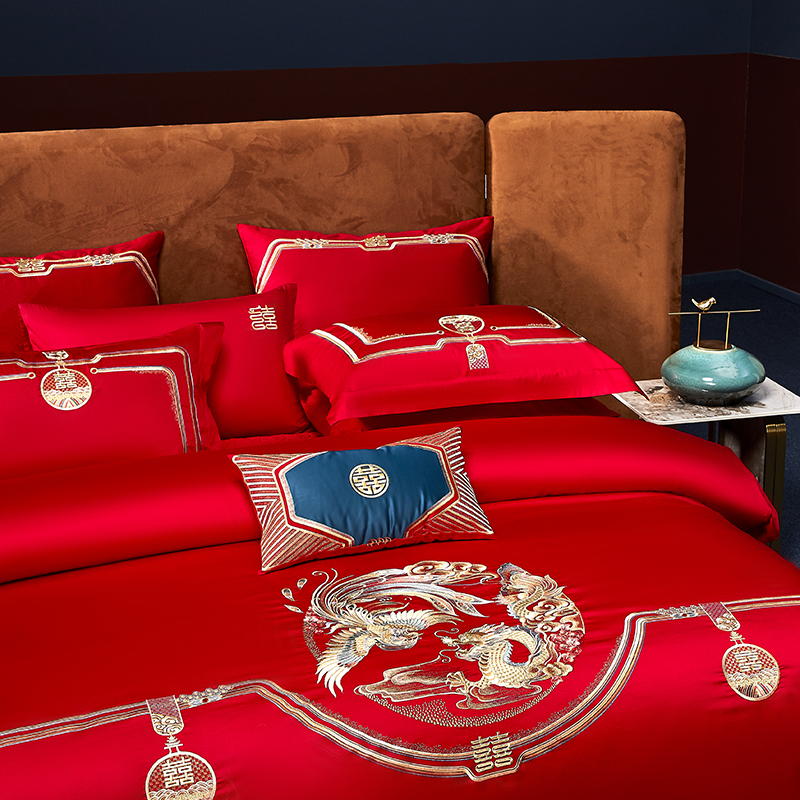 商品名称:张公子婚庆馆 2025新款舒适A版160支B版100支长绒棉婚庆四件套系列 幸福龙凤(金)