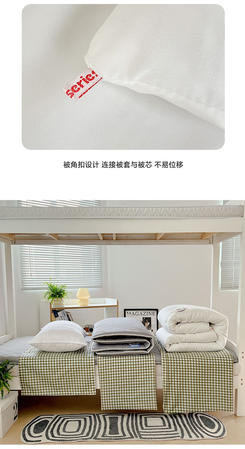 商品名称:梓瑄家居 2024新款A类开学季水洗棉学生宿舍六件套 草绿小格