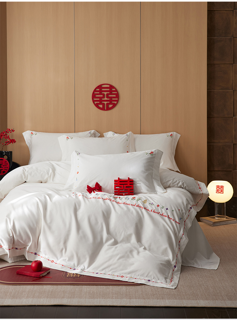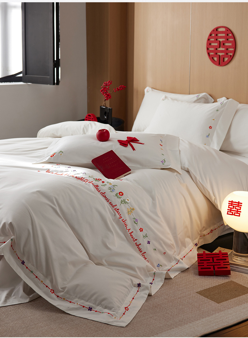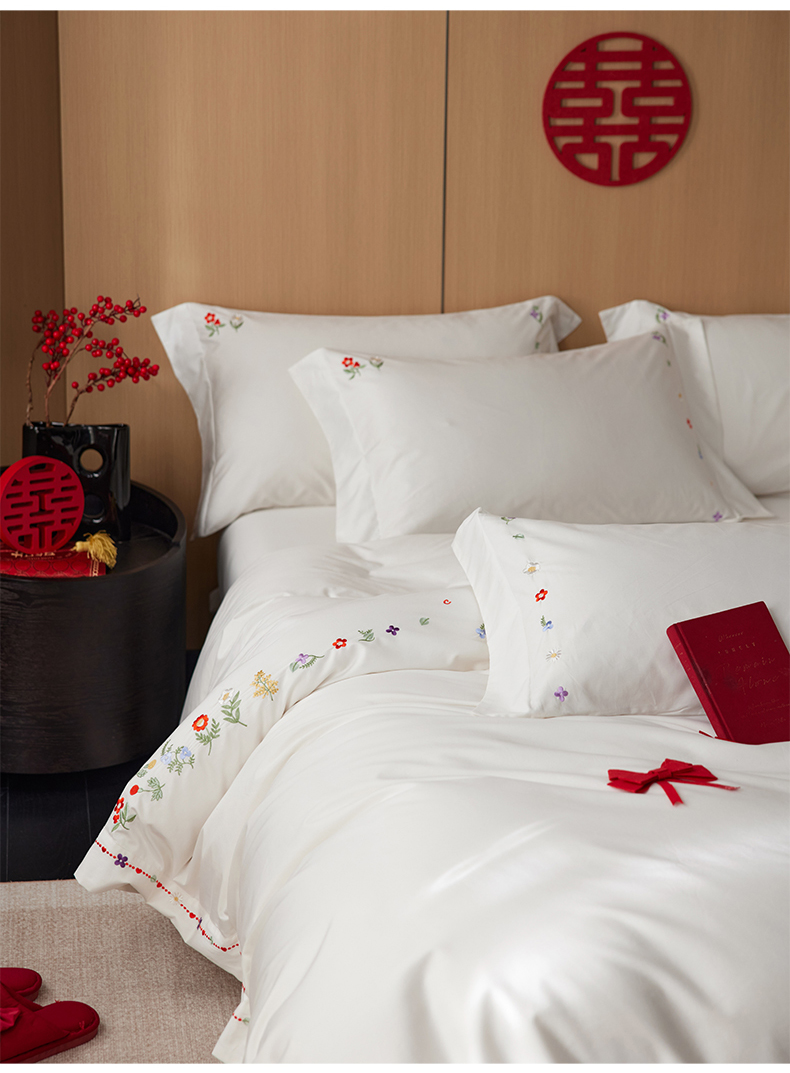 商品名称:(总)简纯主义 2025新款100支长绒棉刺绣四件套花开并蒂系列