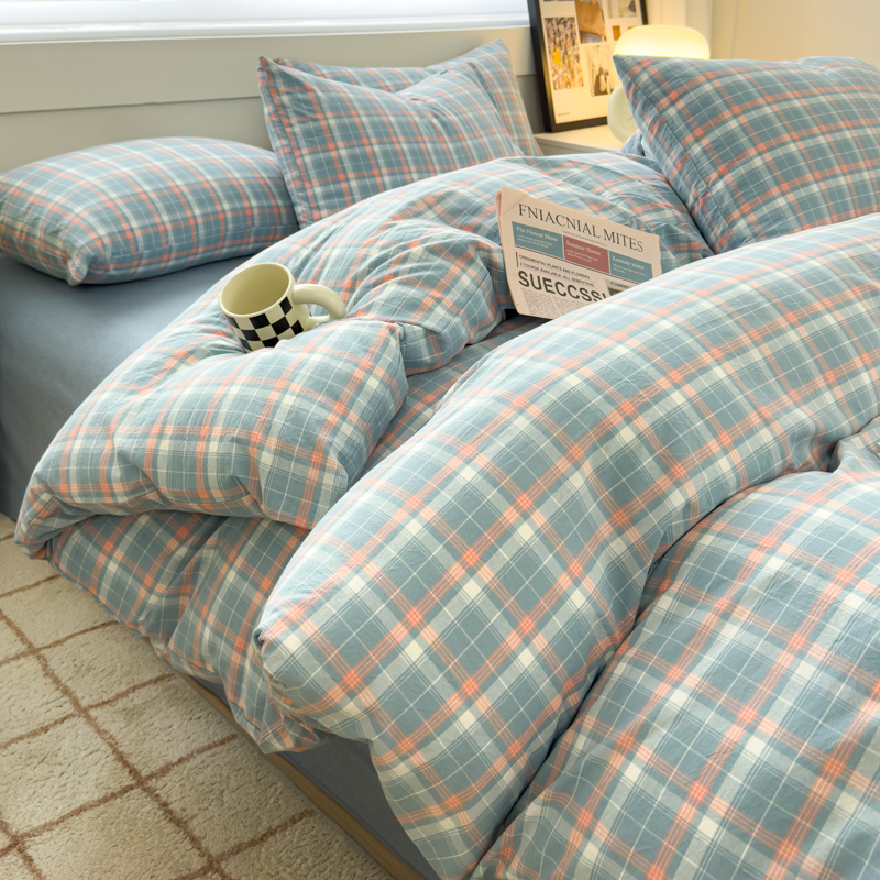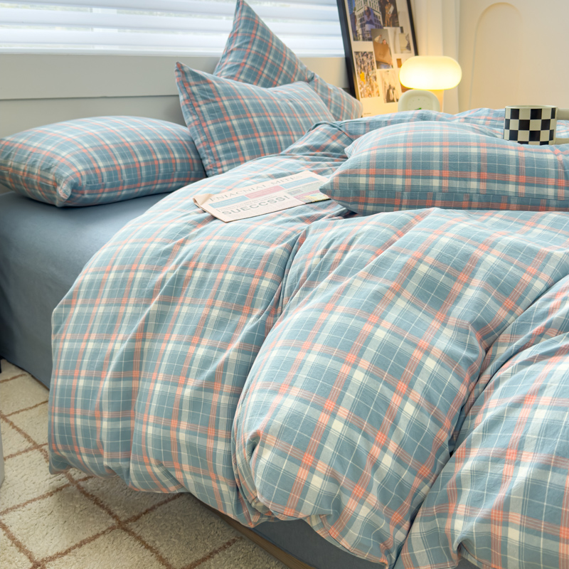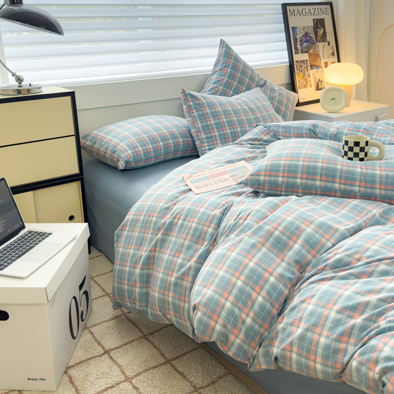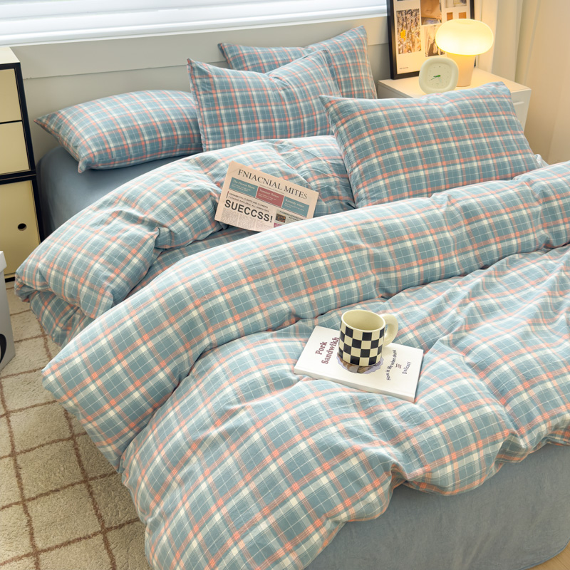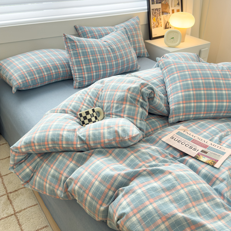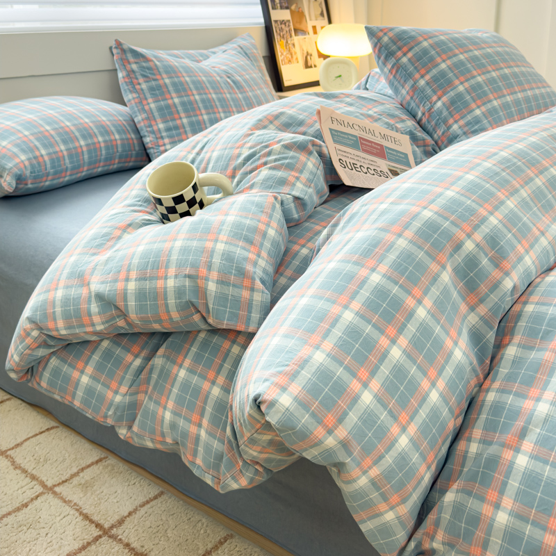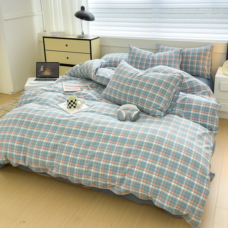 星尚家纺 2024新款A类全棉色织水洗棉三四件套系列-单被套 映像蓝