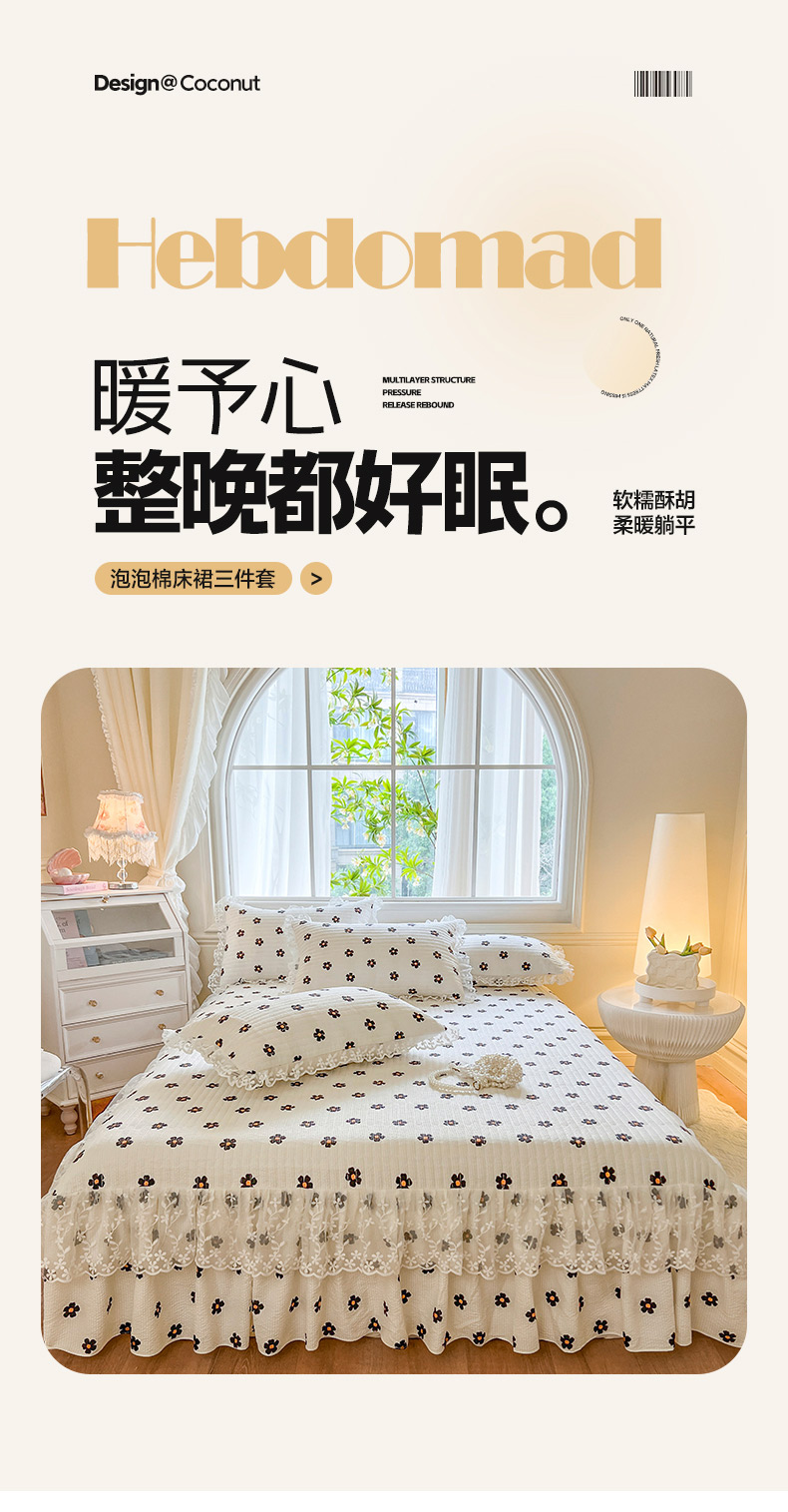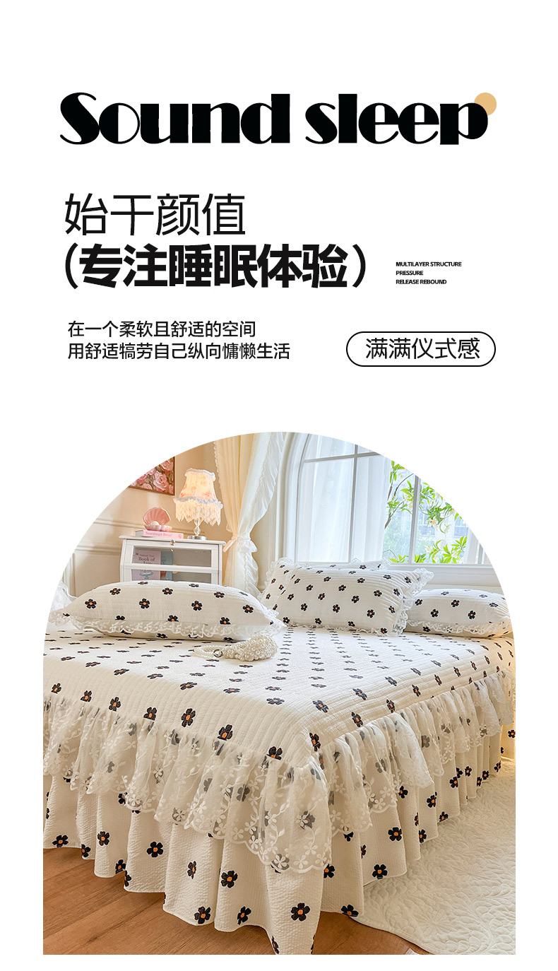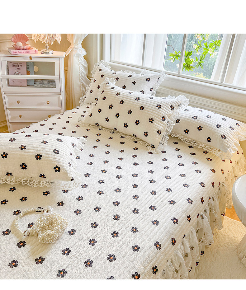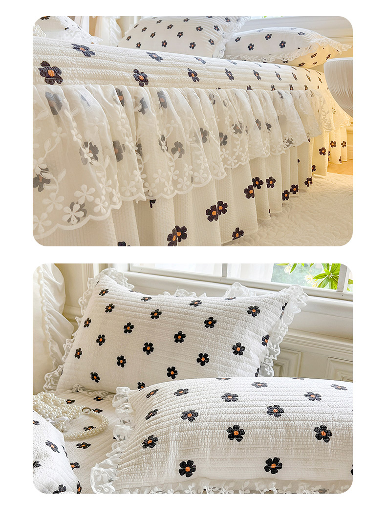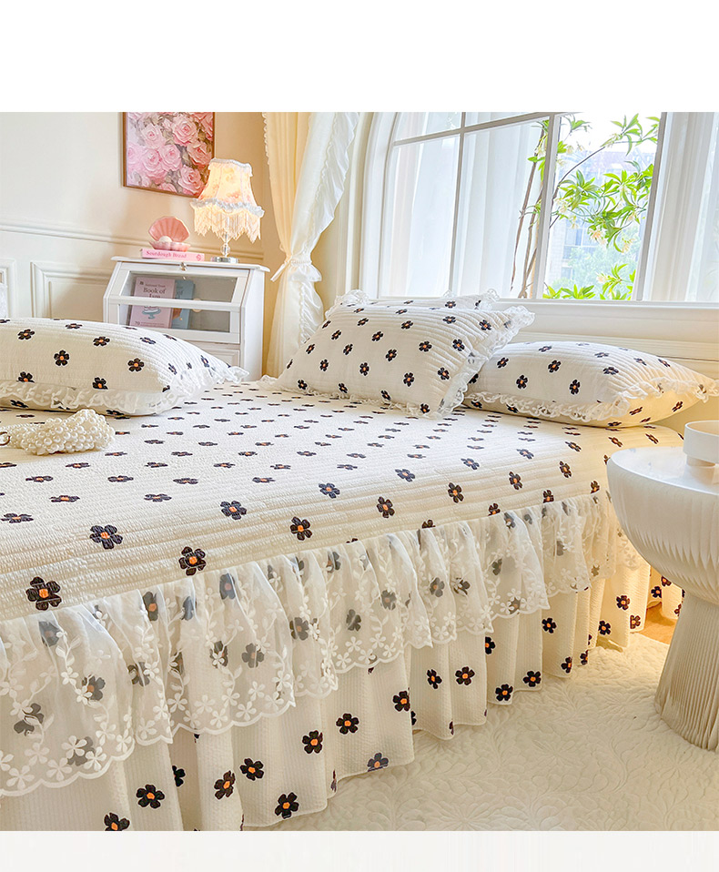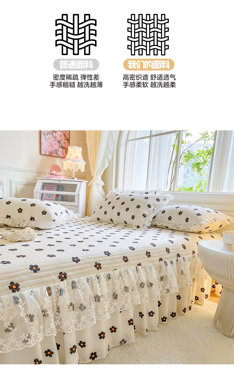 当前位置: 91家纺网 > 商品网购 > 床品套件 > 三件套 > 网红馆(ck家纺) 2025新款泡泡棉花边床裙三件套 花儿朵朵