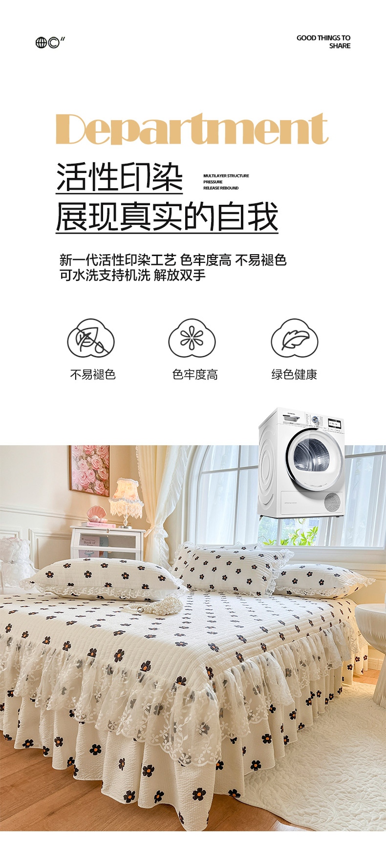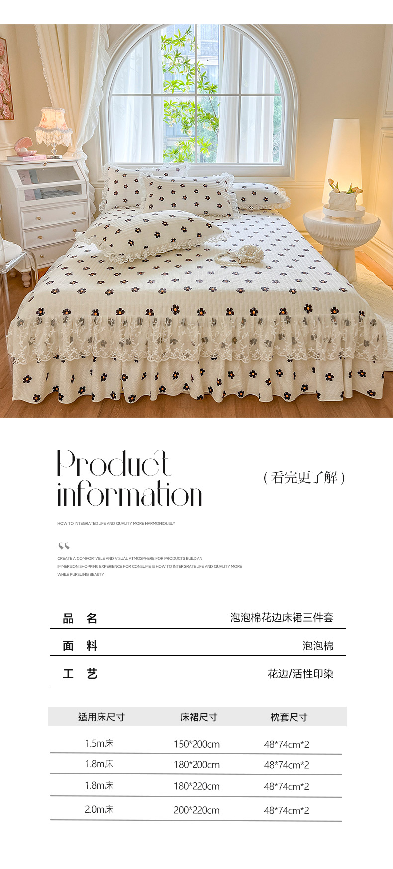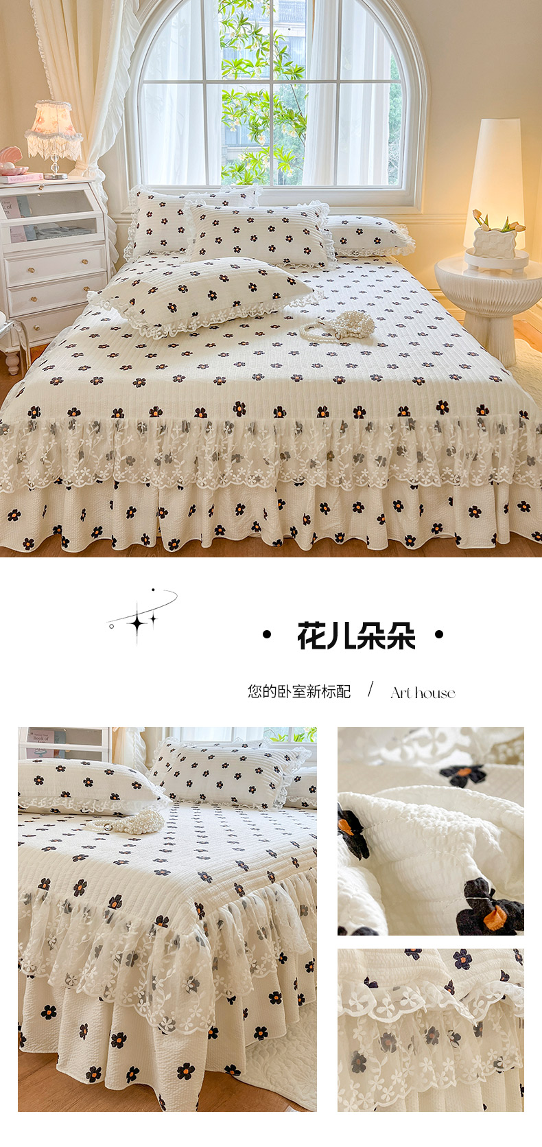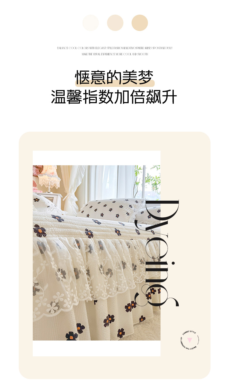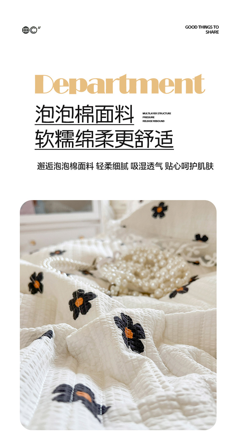当前位置: 91家纺网 > 商品网购 > 床品套件 > 三件套 > 网红馆(ck家纺) 2025新款泡泡棉花边床裙三件套 花儿朵朵