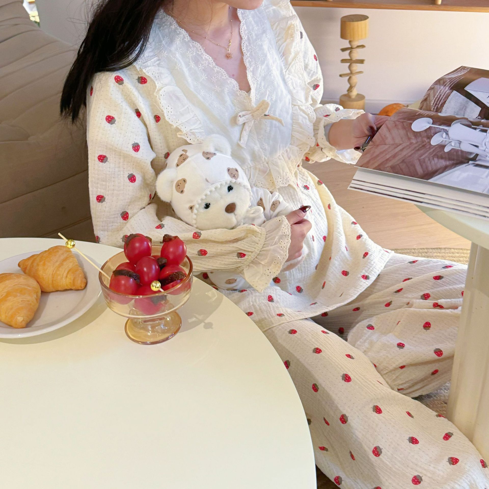 (总)洛兰沙家居馆 2026春秋季新款小清新针织全棉纯棉100%翻领开衫双长孕妇月子服睡衣女,翻领套装1,翻领套装2,翻领套装3,翻领套装4,翻领套装5,翻领套装6