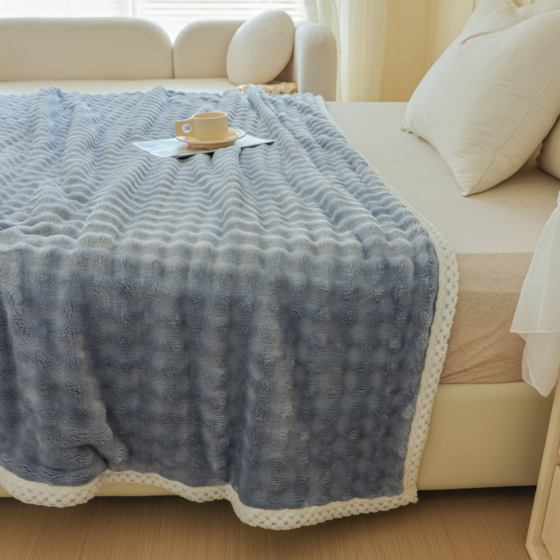 (总)蓝冰家纺 2025新款托卡斯A类母婴级兔兔绒大泡泡安抚四季毯,奶白色,奶茶色,抹茶绿,浅蓝,咖啡色,香芋紫,粉色,烟灰色,胭脂粉