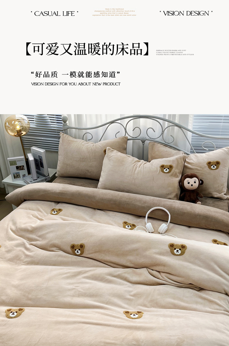 当前位置: 91家纺网 > 商品网购 > 床品套件 > 四件套 > 牛奶绒四件套 > 鑫利来家纺 2025新款牛奶绒毛巾绣四件套加厚立体卡通牛奶绒四件套 小熊-浅咖深咖