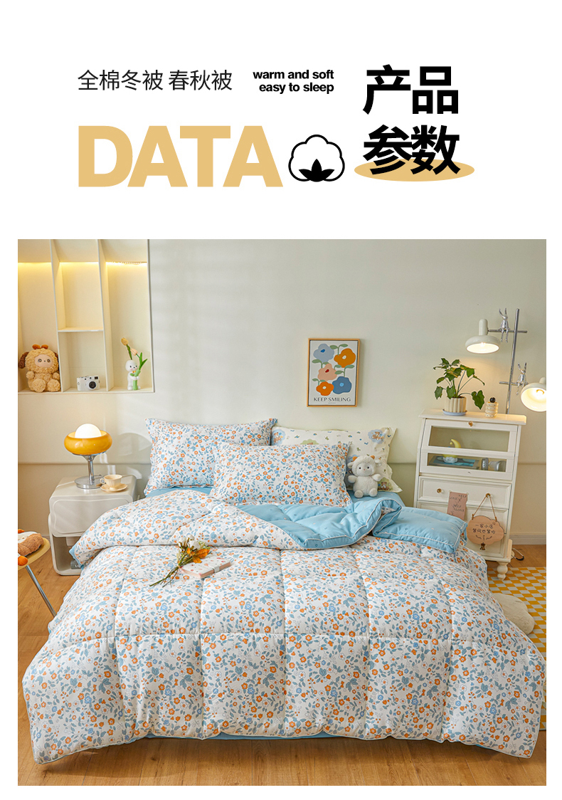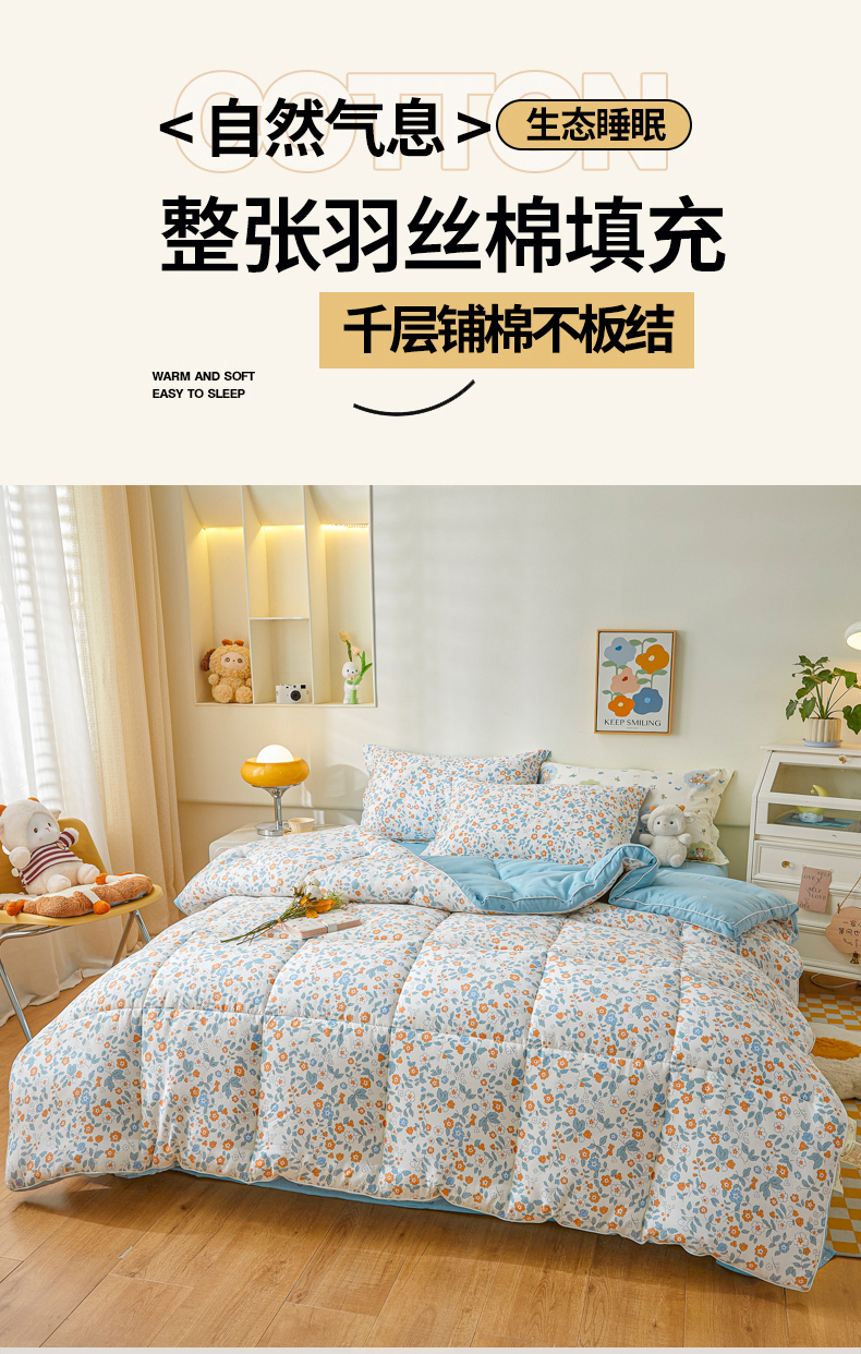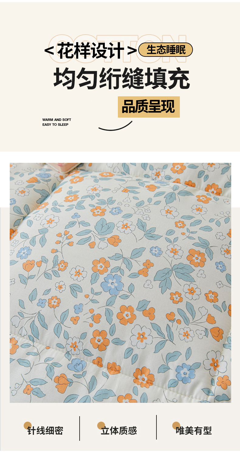• 91家纺网 家纺一手货源 找家纺 帕拉美拉 2025新款100%全棉小清新立体冬被学生被子被芯 花香谷桔