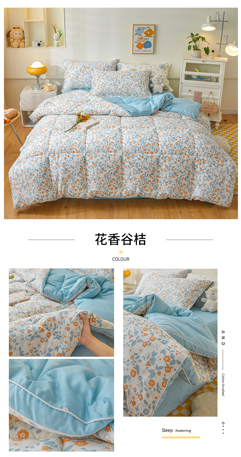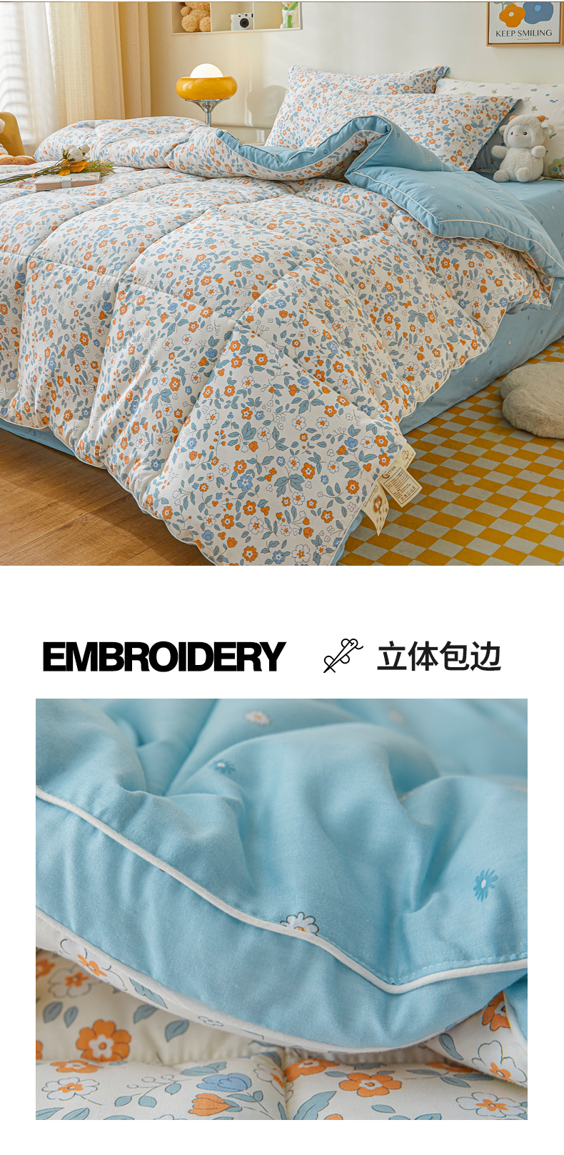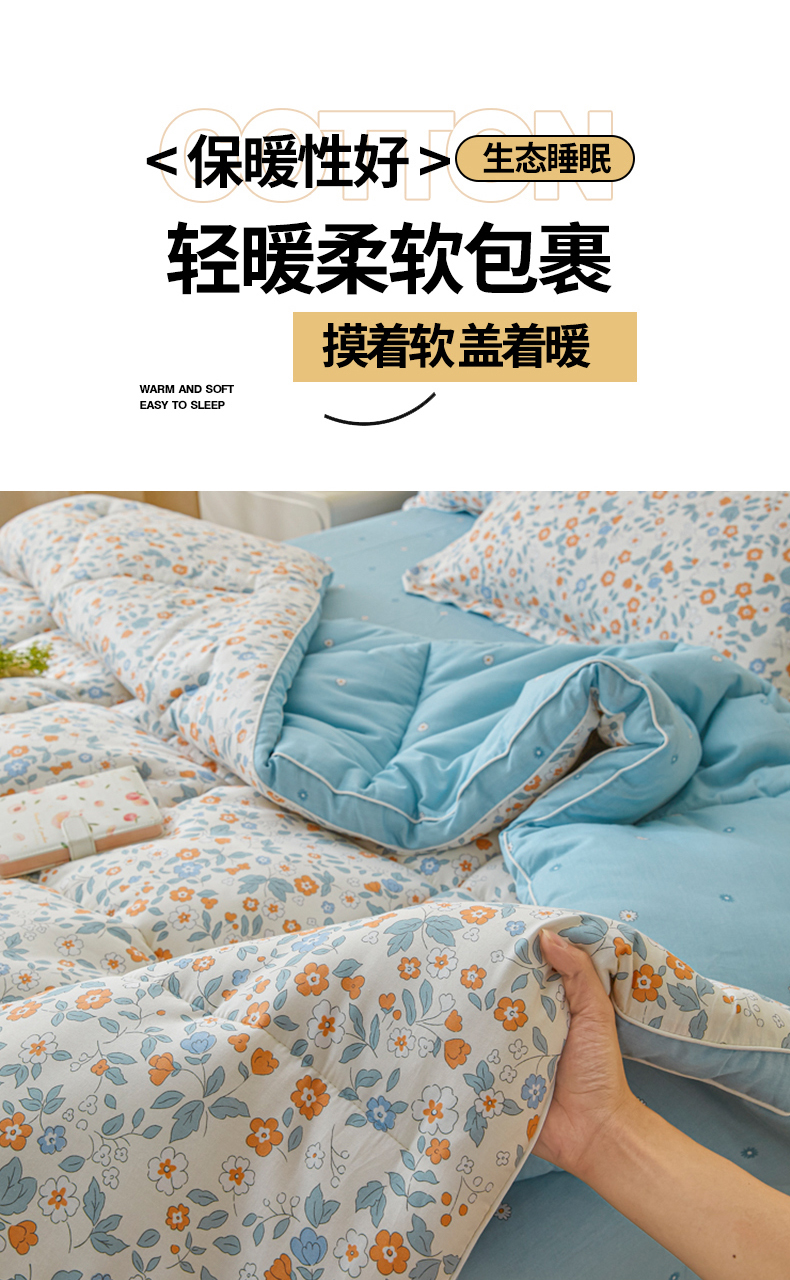 • 91家纺网 家纺一手货源 找家纺 帕拉美拉 2025新款100%全棉小清新立体冬被学生被子被芯 花香谷桔