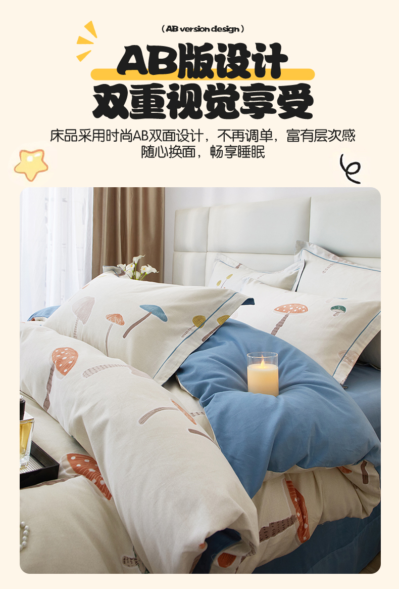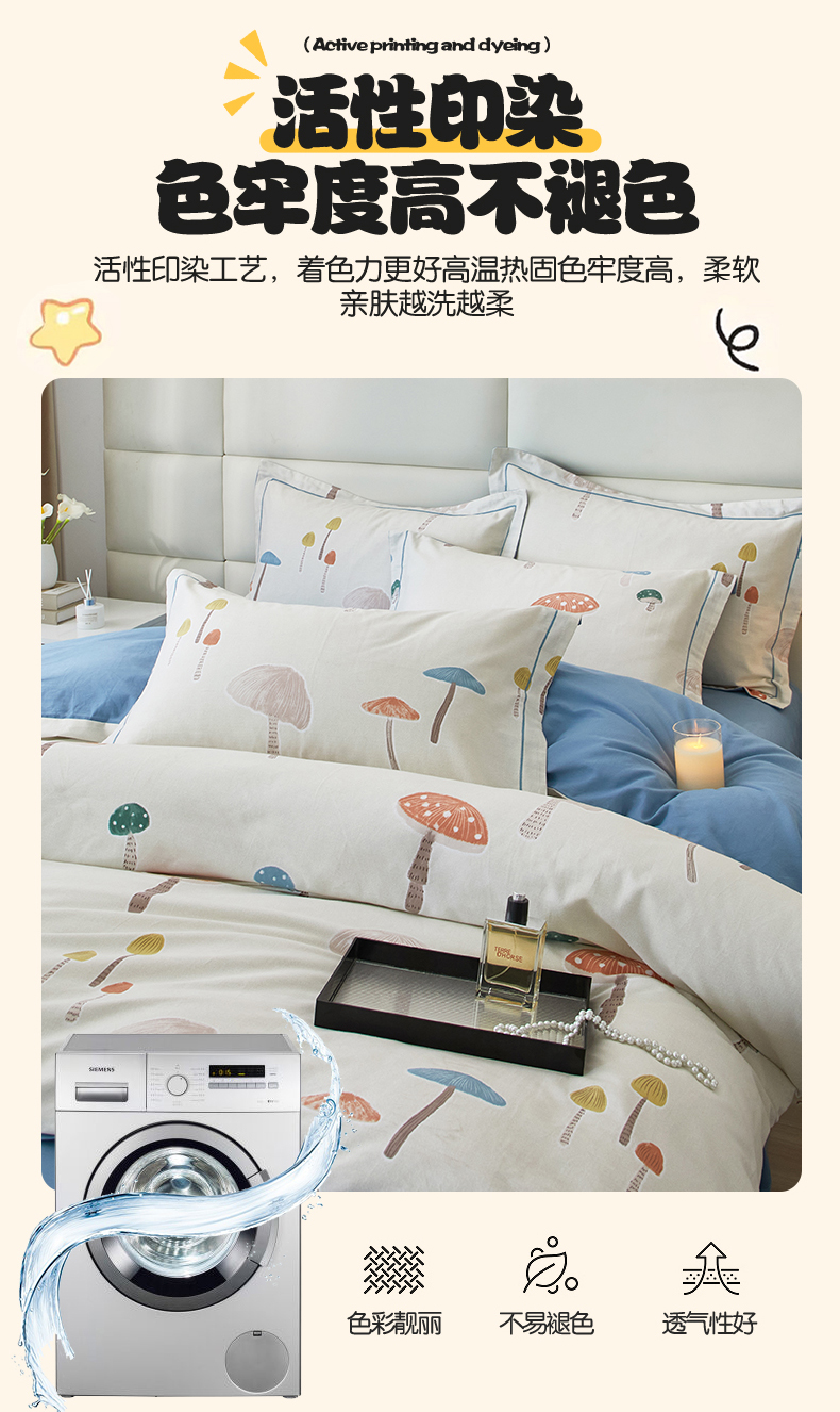 当前位置: 91家纺网 > 商品网购 > 床品套件 > 四件套 > 磨毛活性四件套 > 曼秀琳 2024新款全棉超柔生态磨毛四件套(32*21支) 蘑菇小镇-米