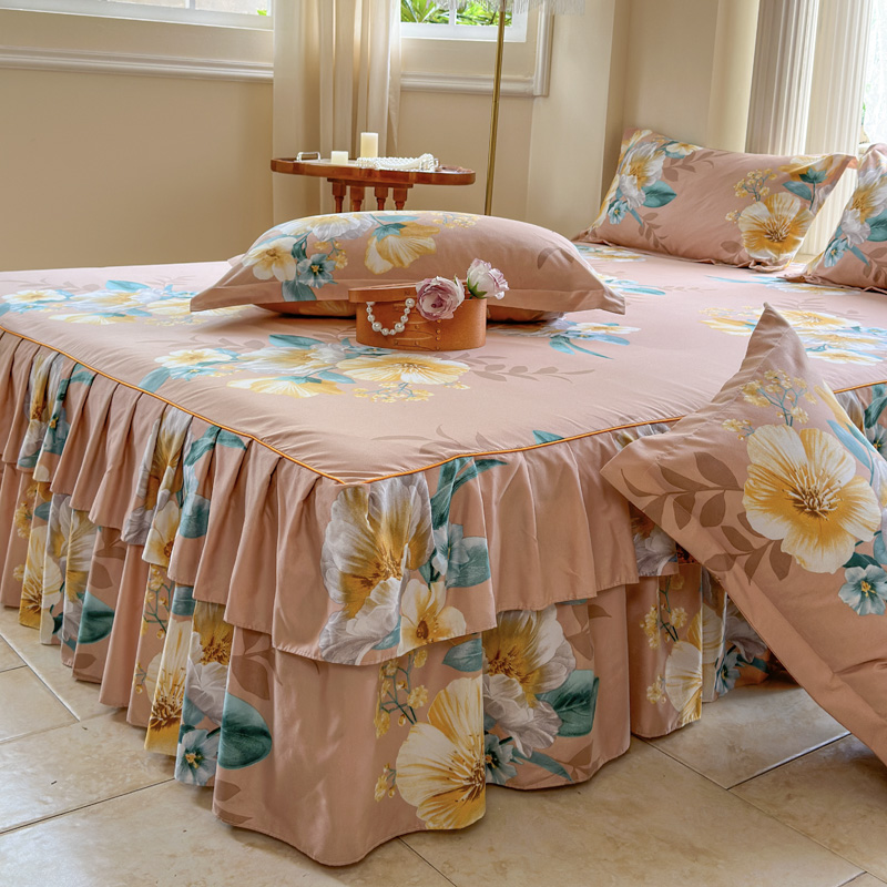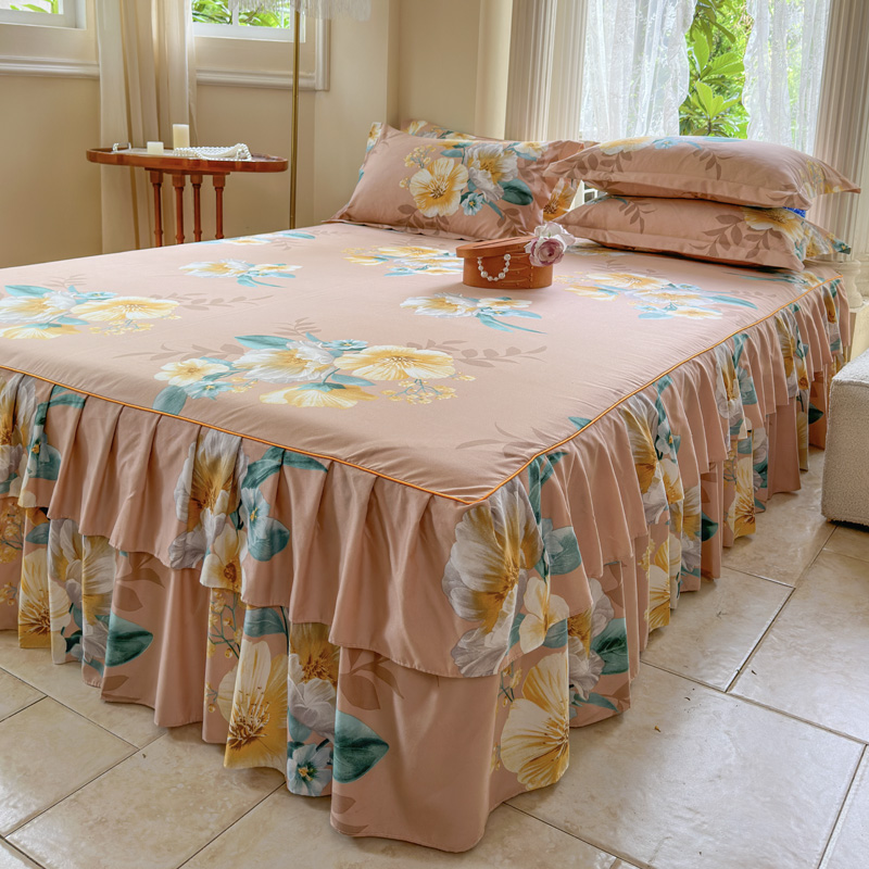 (总)雨田家纺 2024新款亲肤棉印花床裙四件套,出水芙蓉-兰,出水芙蓉-棕,初遇见,花容月貌-灰,如花似锦-绿,春暖花开,梦露花园,香草