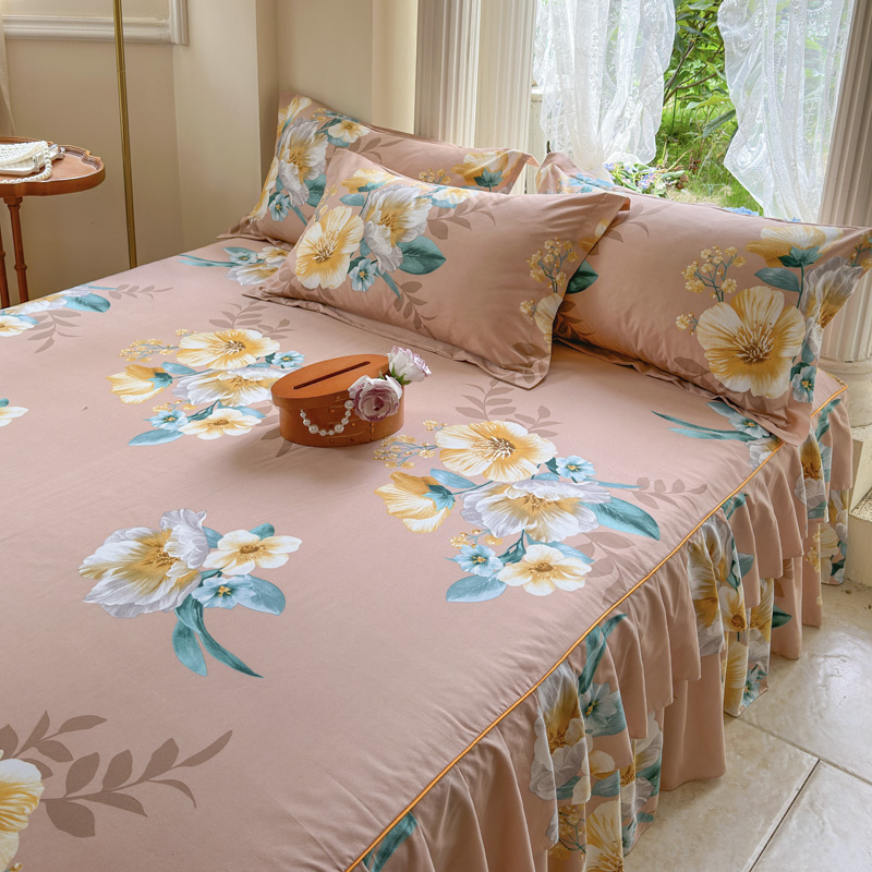 (总)雨田家纺 2025新款亲肤棉印花床裙四件套-系列一,繁花,富贵年华,千山万水棕,青春,诗情画意绿,唯爱花季兰,新动力棕