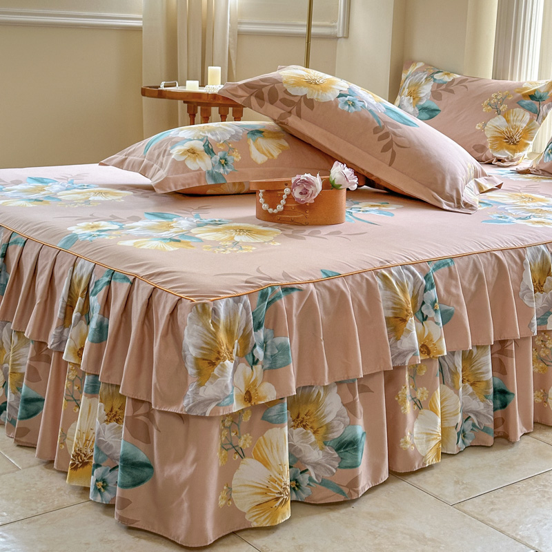 (总)雨田家纺 2025新款外贸跨境直播亲肤印花床裙三件套,百合花,柔情似水,鲜花盛开,向阳而生,罗卡娜,生如花夏灰