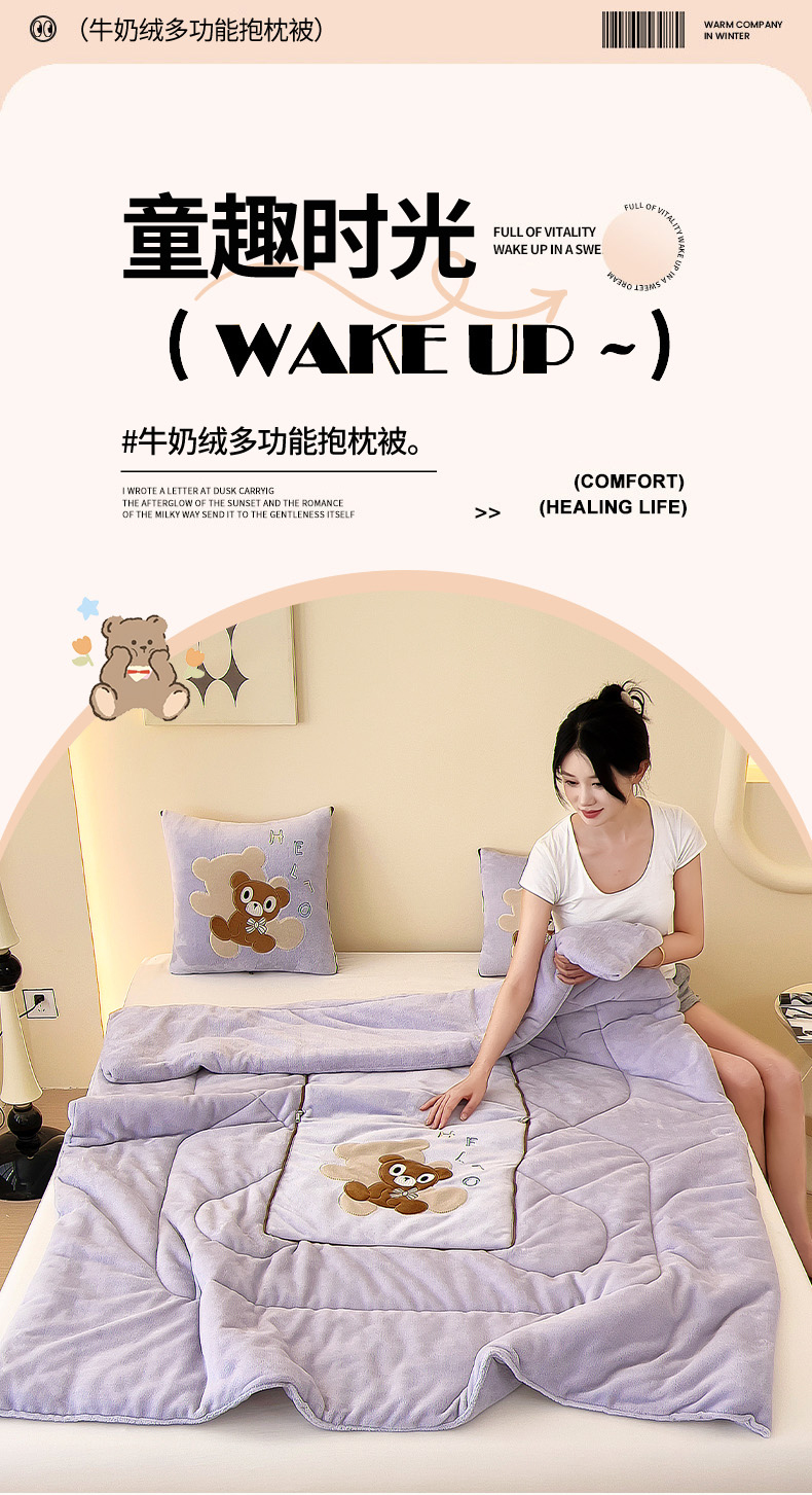 (总)阳光依佰抱枕被 2025秋冬新款牛奶绒多功能抱枕被系列-抱抱熊,抱抱熊---罗兰紫,抱抱熊---浅蓝色,抱抱熊---宝石兰,抱抱熊---孔雀绿,抱抱熊---神秘黑,抱抱熊---西瓜红,抱抱熊---樱花粉