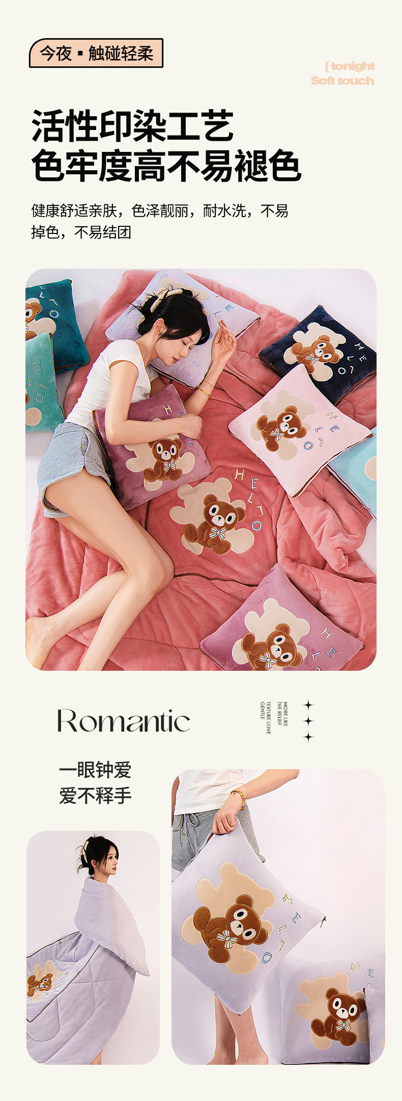 (总)阳光依佰抱枕被 2025新款全棉色织爱心熊抱抌被(控价小号券后不低于59元,大号不低于89元),爱心熊一日落红,爱心熊一日落灰,爱心熊一日落绿,爱心熊一星空桔,爱心熊一星空卡其