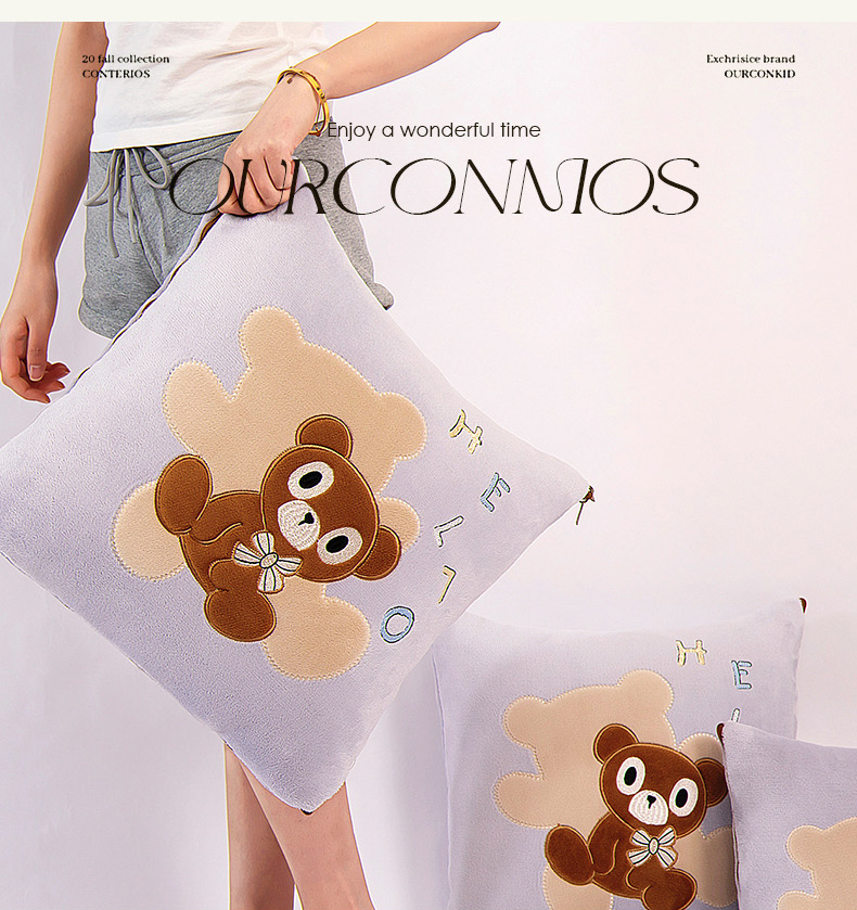 (总)阳光依佰 2024新款四季款全棉贴布绣华夫格抱枕被--元气熊系列,元气熊-冰川蓝,元气熊-橄榄绿,元气熊-奶昔灰,元气熊-青柠,元气熊-樱花粉