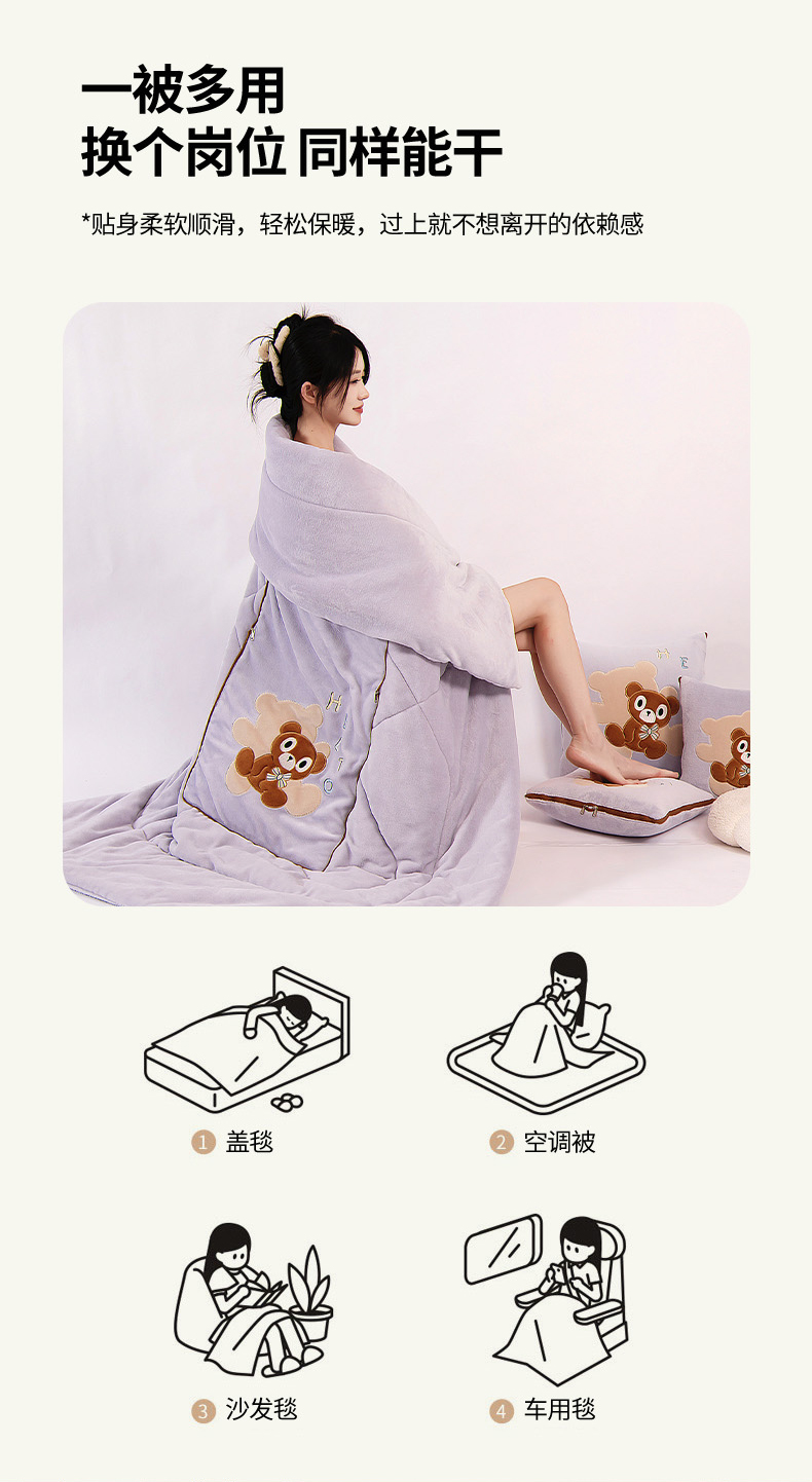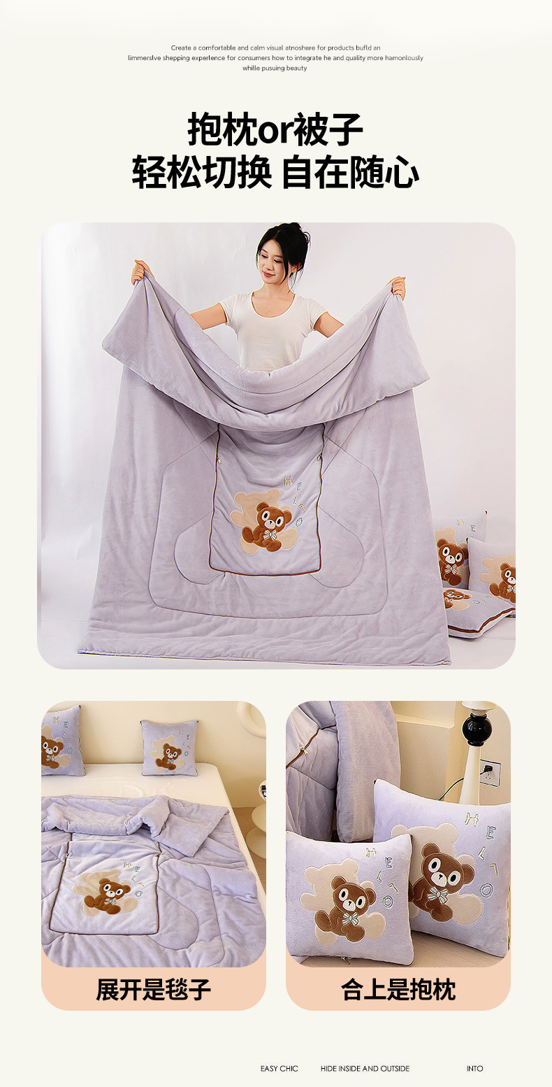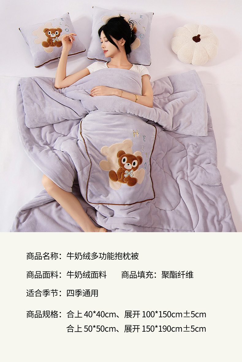 阳光依佰抱枕被 2024秋冬新款牛奶绒绅士小熊多功能抱枕被 绅士小熊-香芋紫