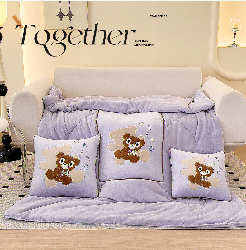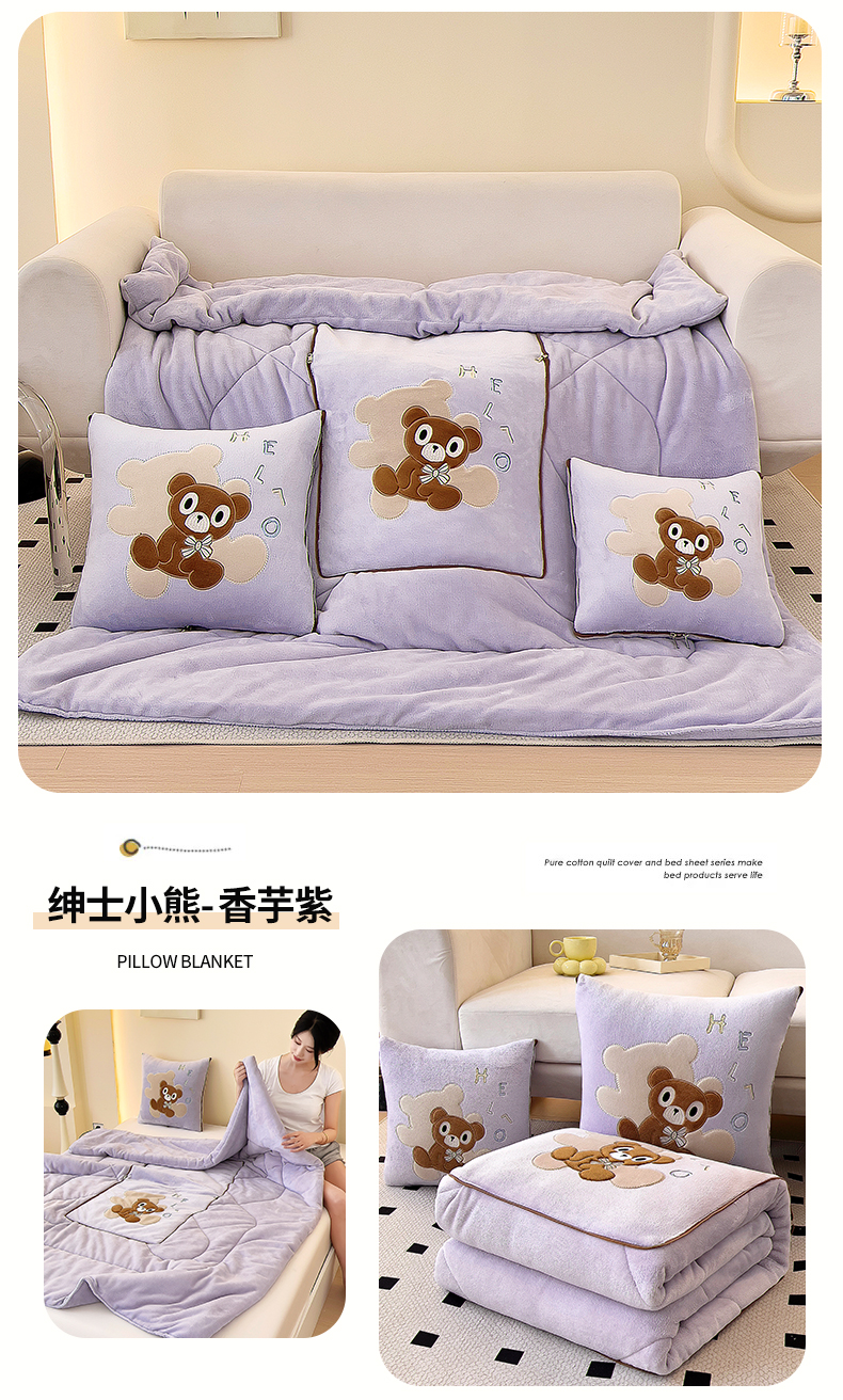 商品名称:阳光依佰抱枕被 2024秋冬新款牛奶绒绅士小熊多功能抱枕被 绅士小熊-香芋紫