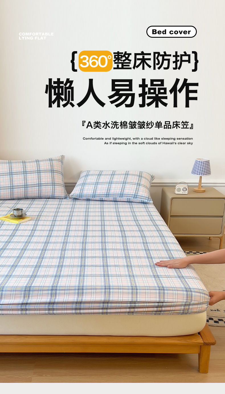 多品 2024新款水洗棉皱皱纱单品床笠 青涩