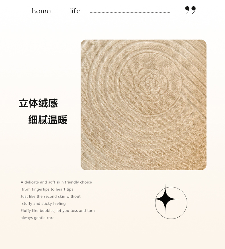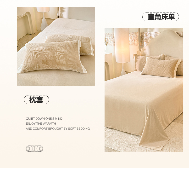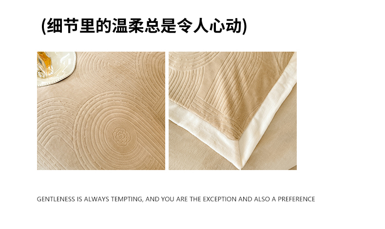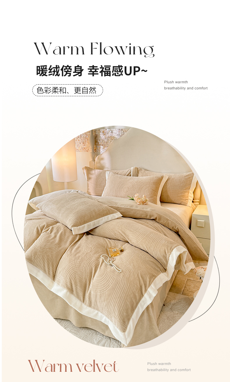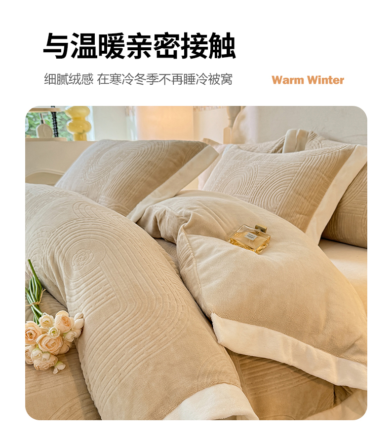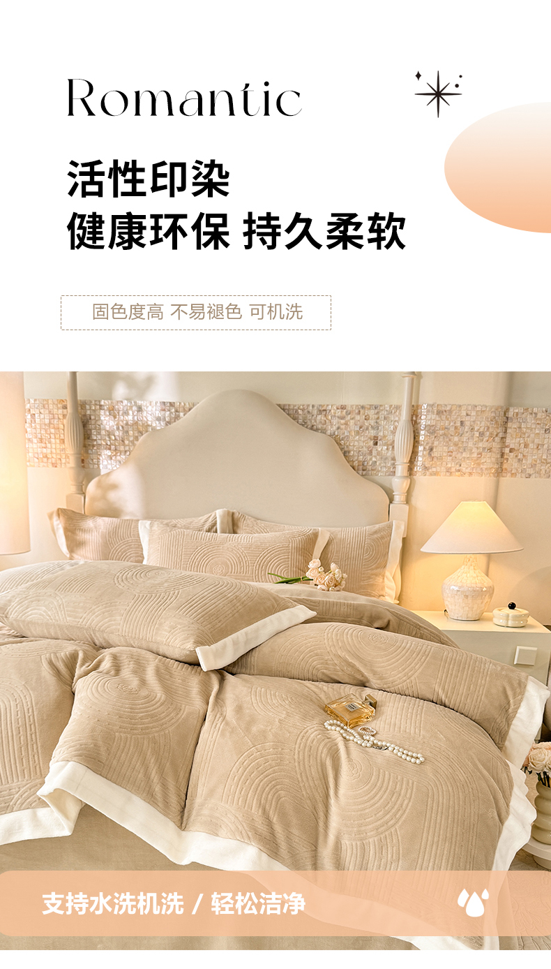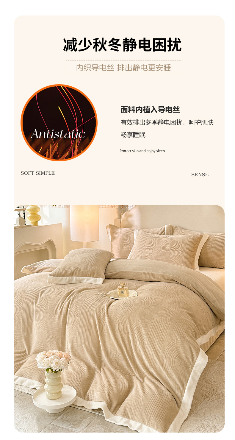 商品名称:捌月 2025新款轻法风宽边雕花牛奶绒四件套提花牛奶绒加厚保暖绒套件直播新品 年轮-浅咖