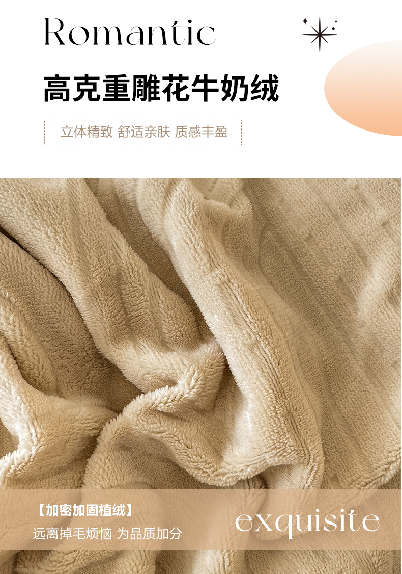 捌月 2025新款轻法风宽边雕花牛奶绒四件套提花牛奶绒加厚保暖绒套件直播新品 年轮-浅咖
