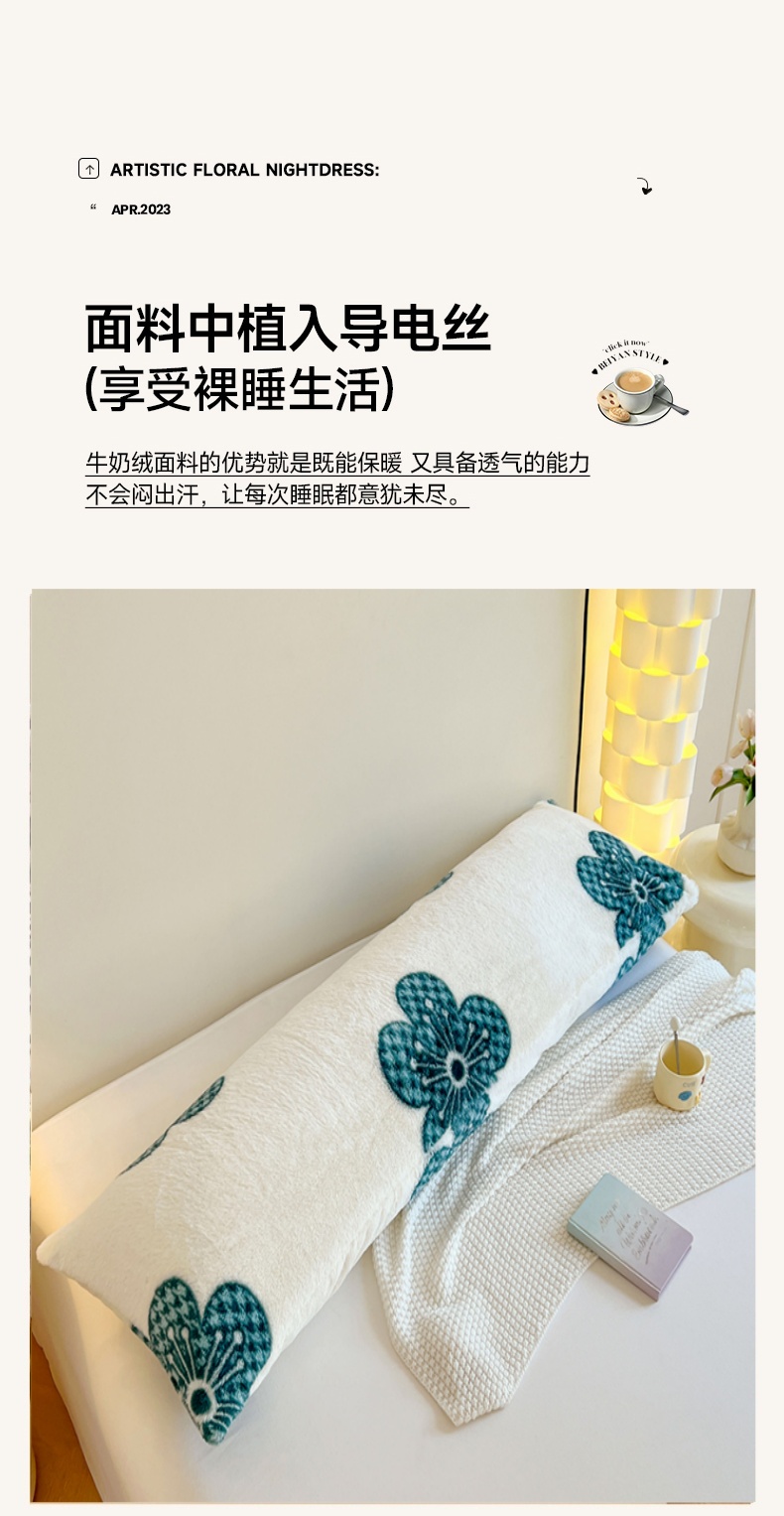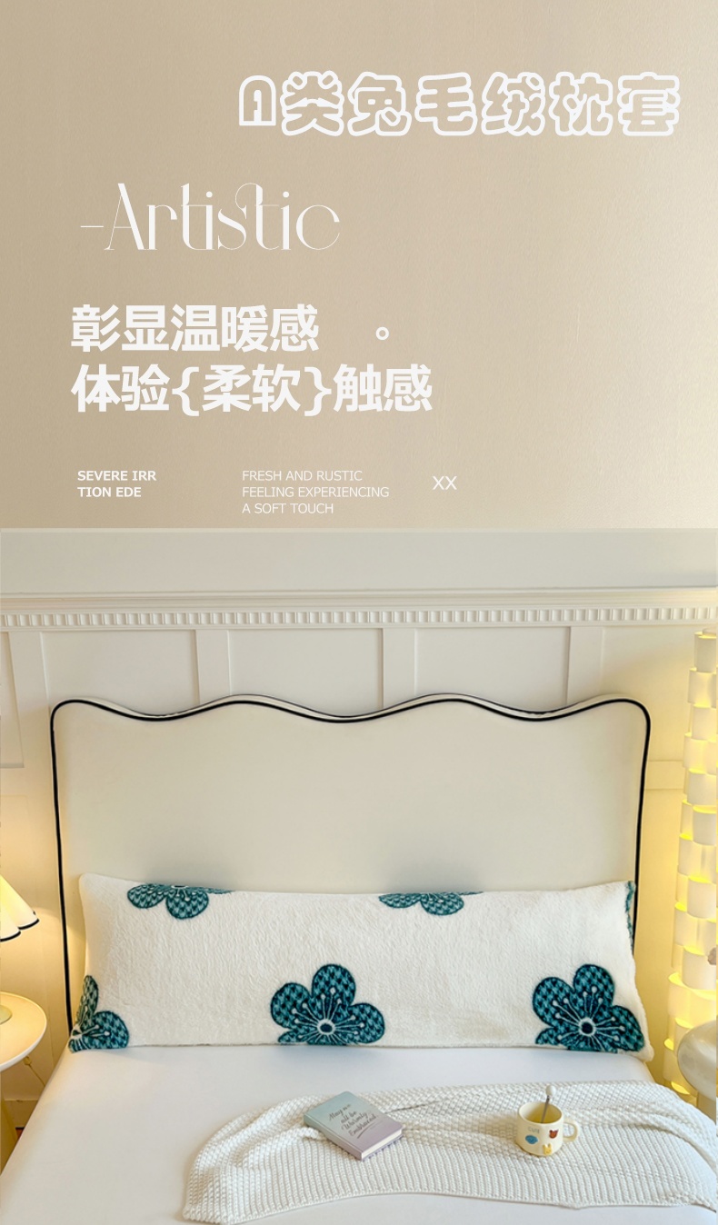 商品名称:梦舒羽 2025新款兔毛绒印花双人枕套牛奶绒加长枕芯套雪花绒枕头套花无归期