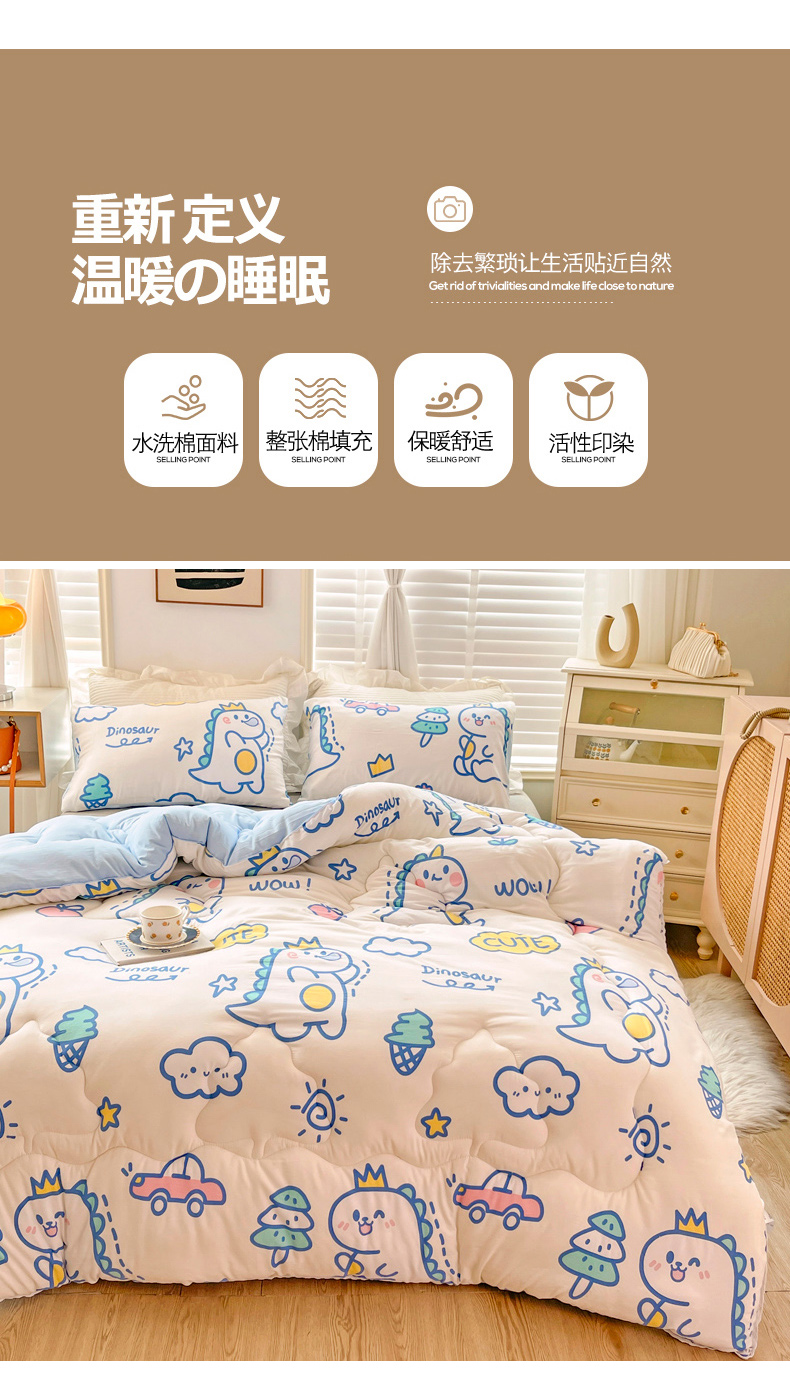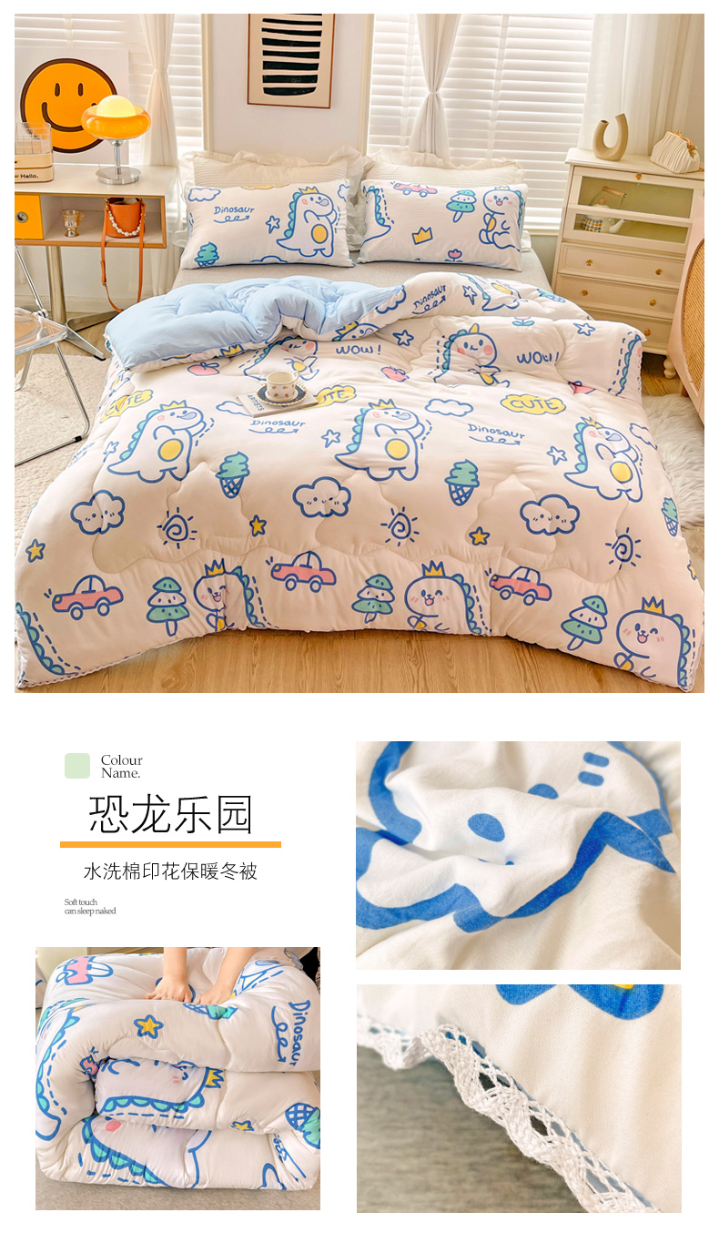 • 91家纺网 家纺一手货源 找家纺 2024新款A类水洗棉印花超柔保暖冬被 恐龙乐园