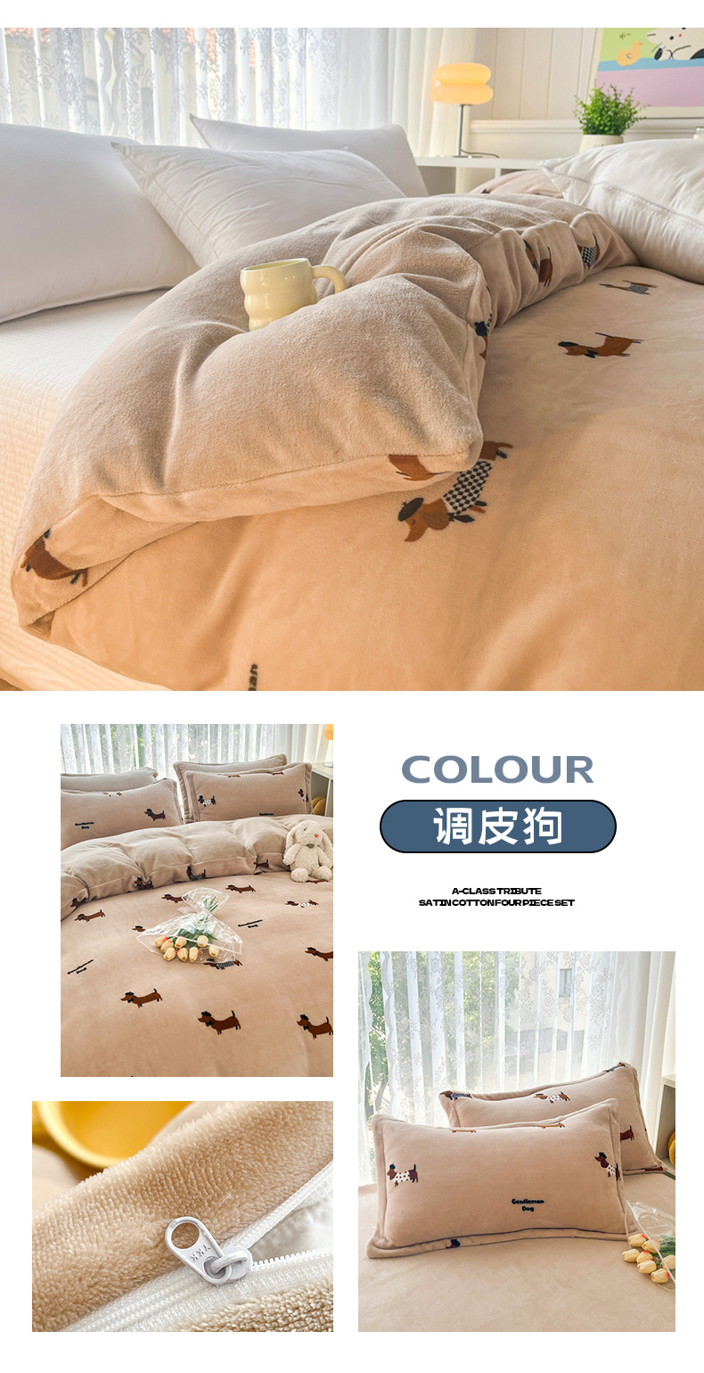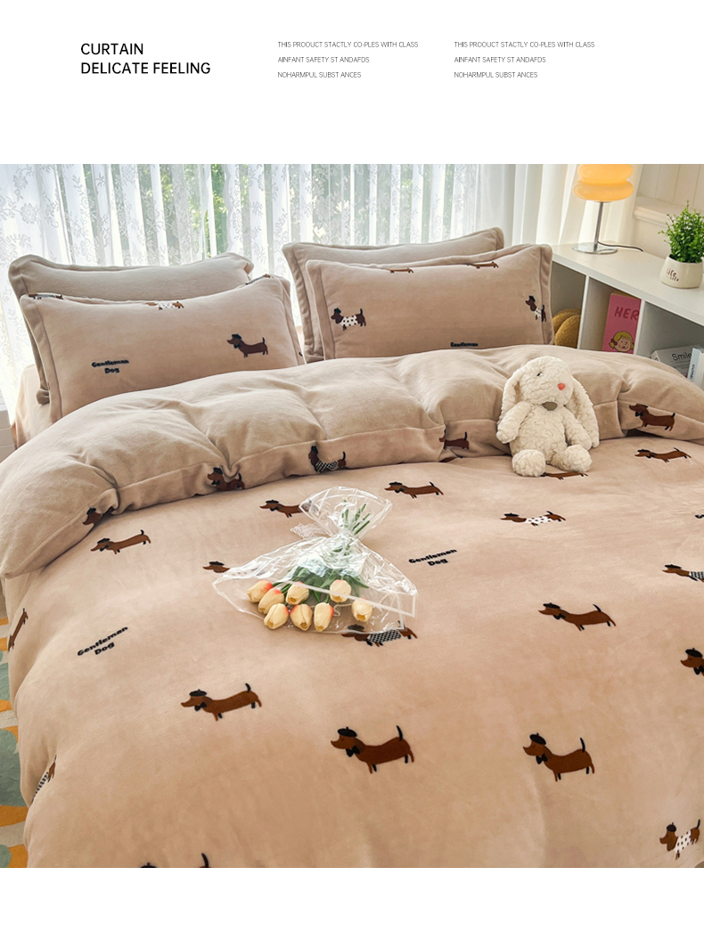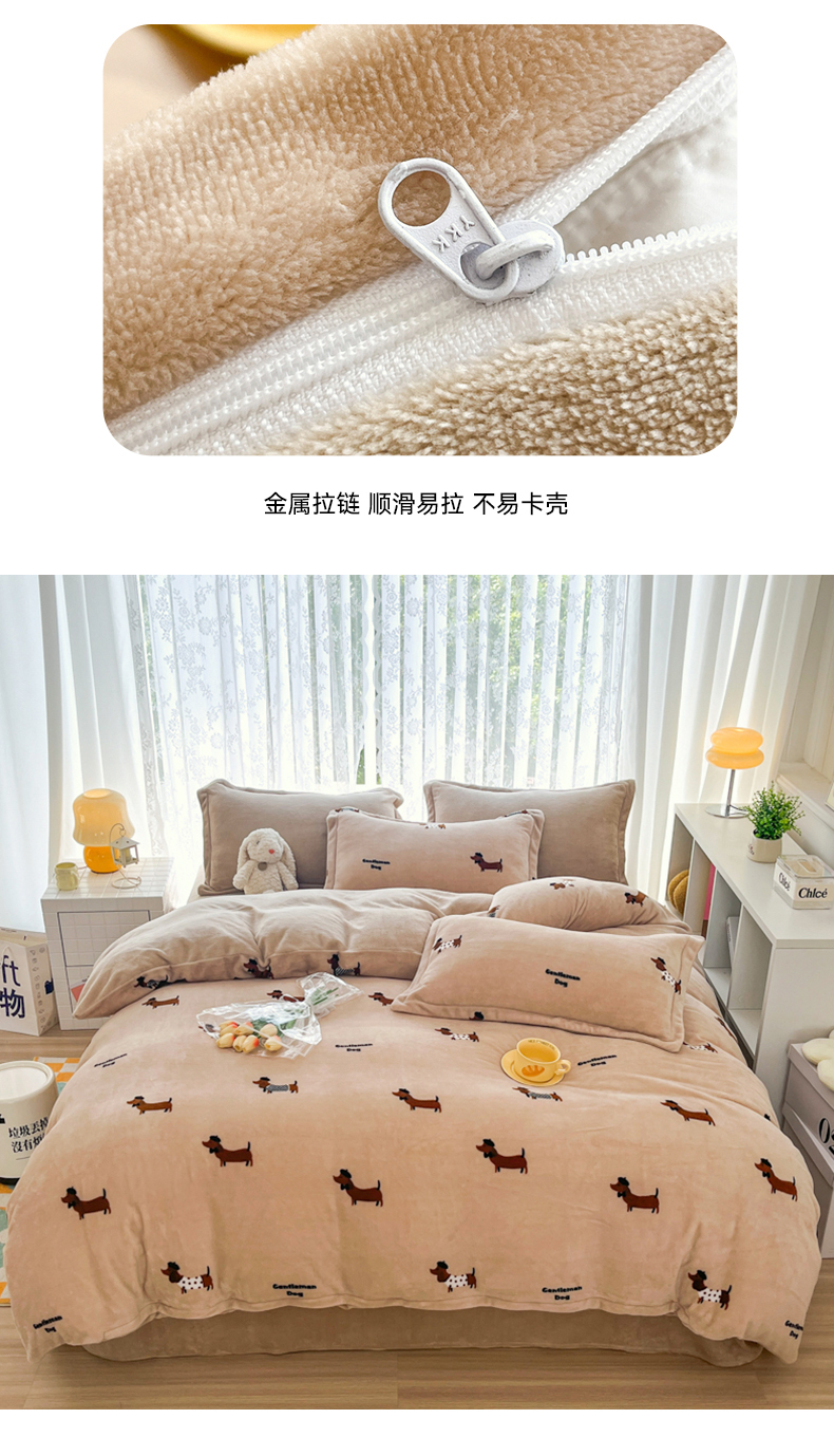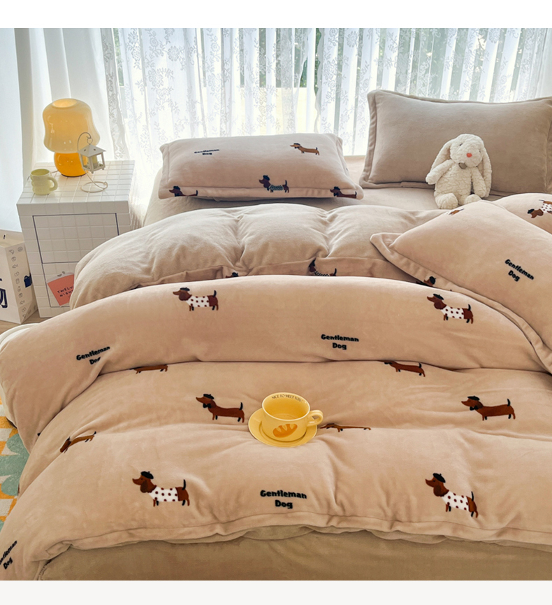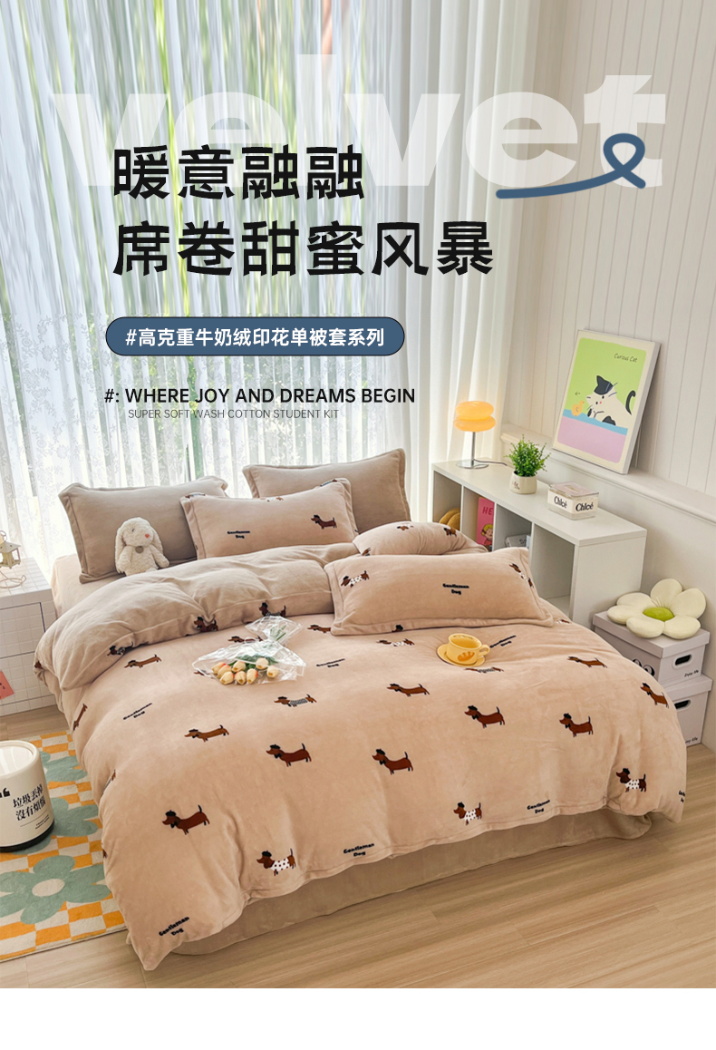青螺家纺 2024加厚高克重保暖爆款小清新牛奶绒印花双面绒单被套 调皮狗
