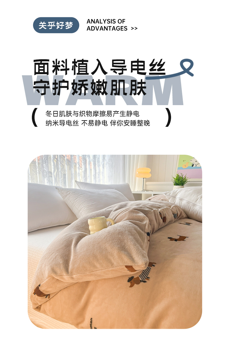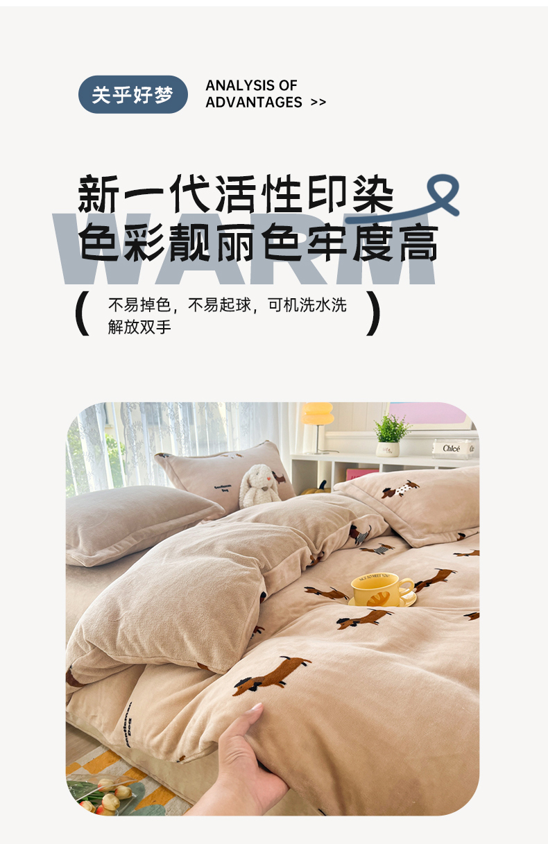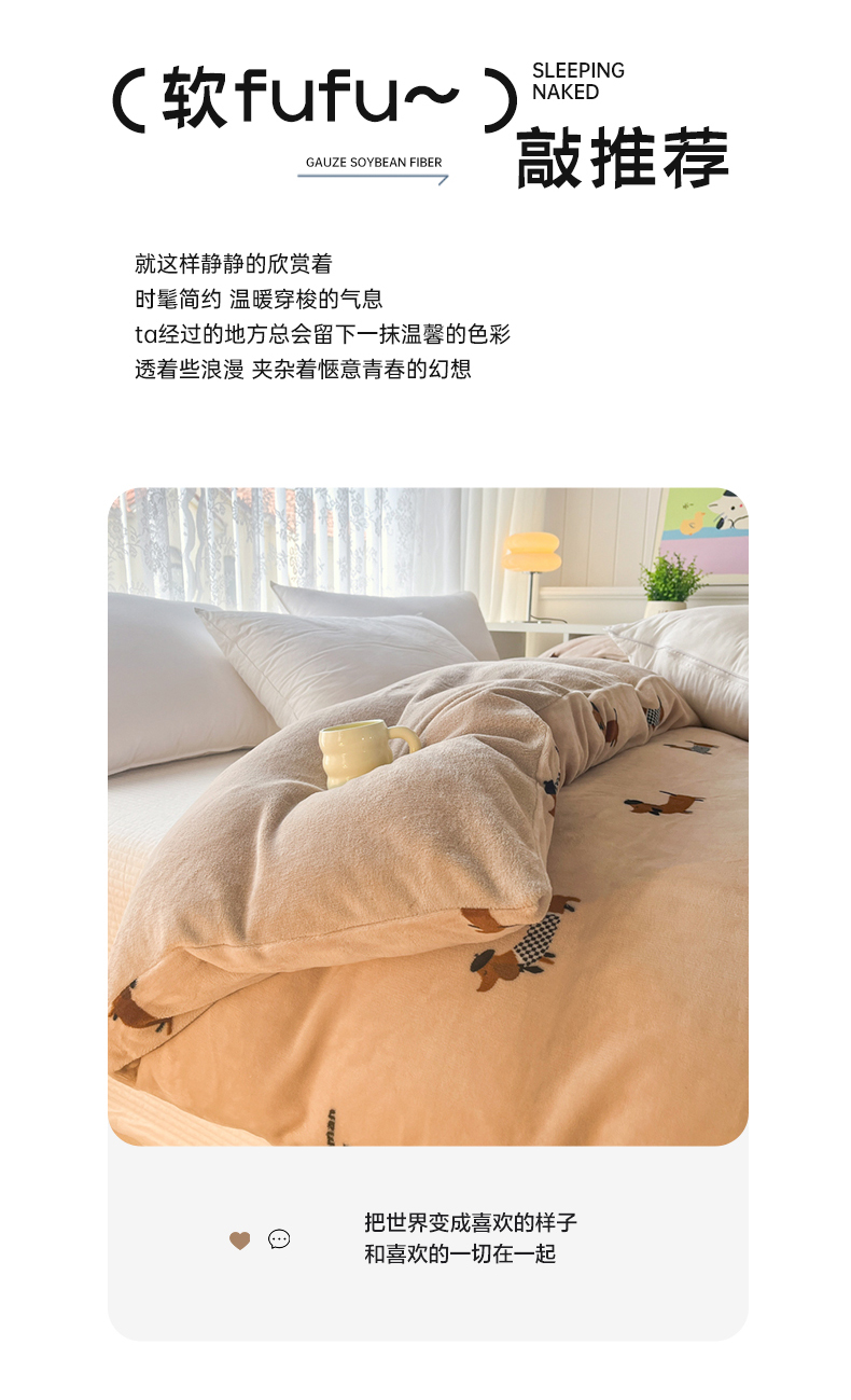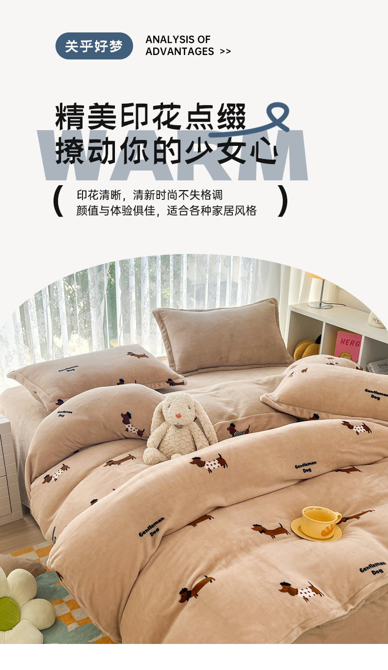 商品名称:青螺家纺 2024加厚高克重保暖爆款小清新牛奶绒印花双面绒单被套 调皮狗
