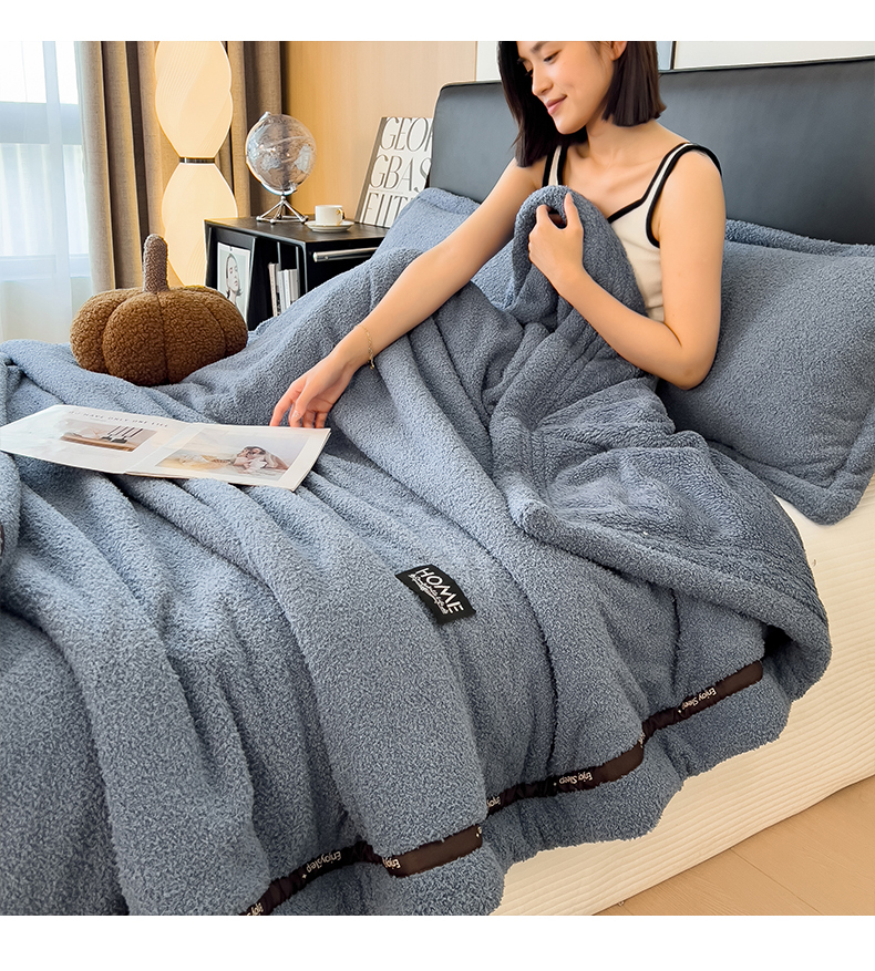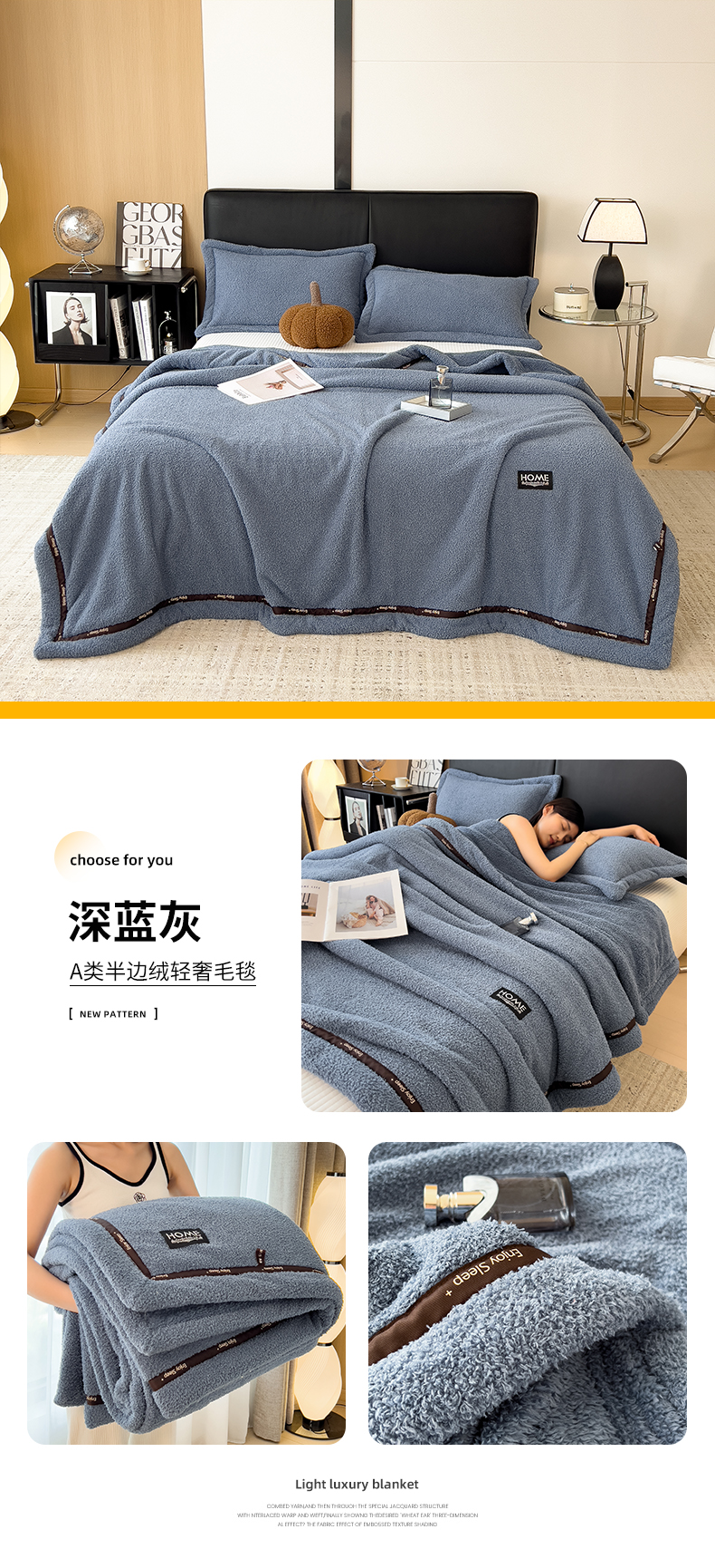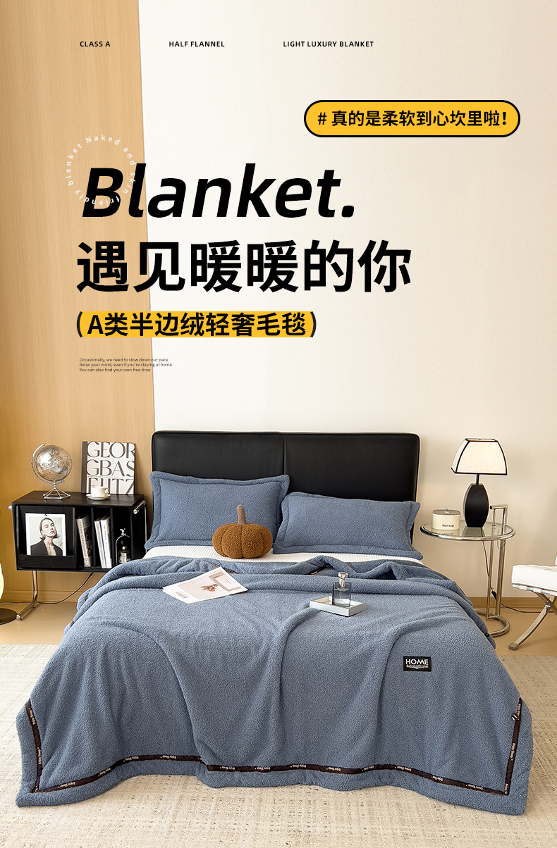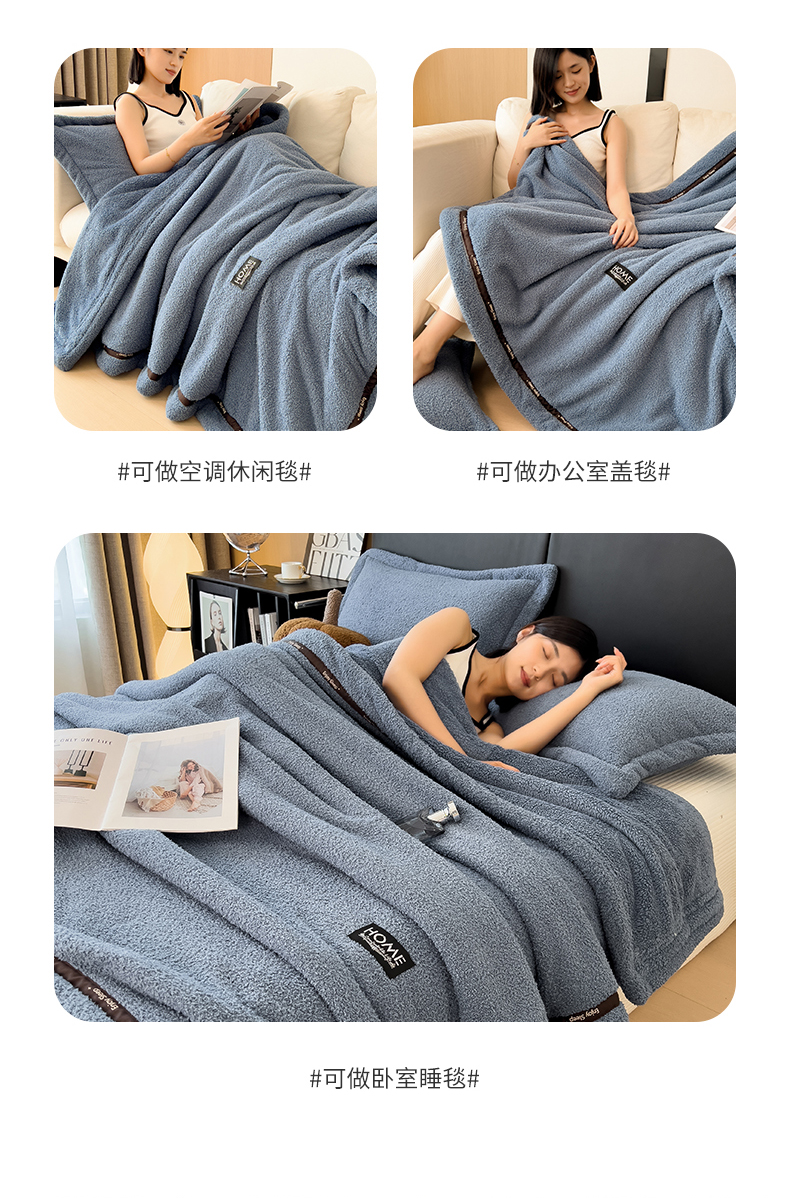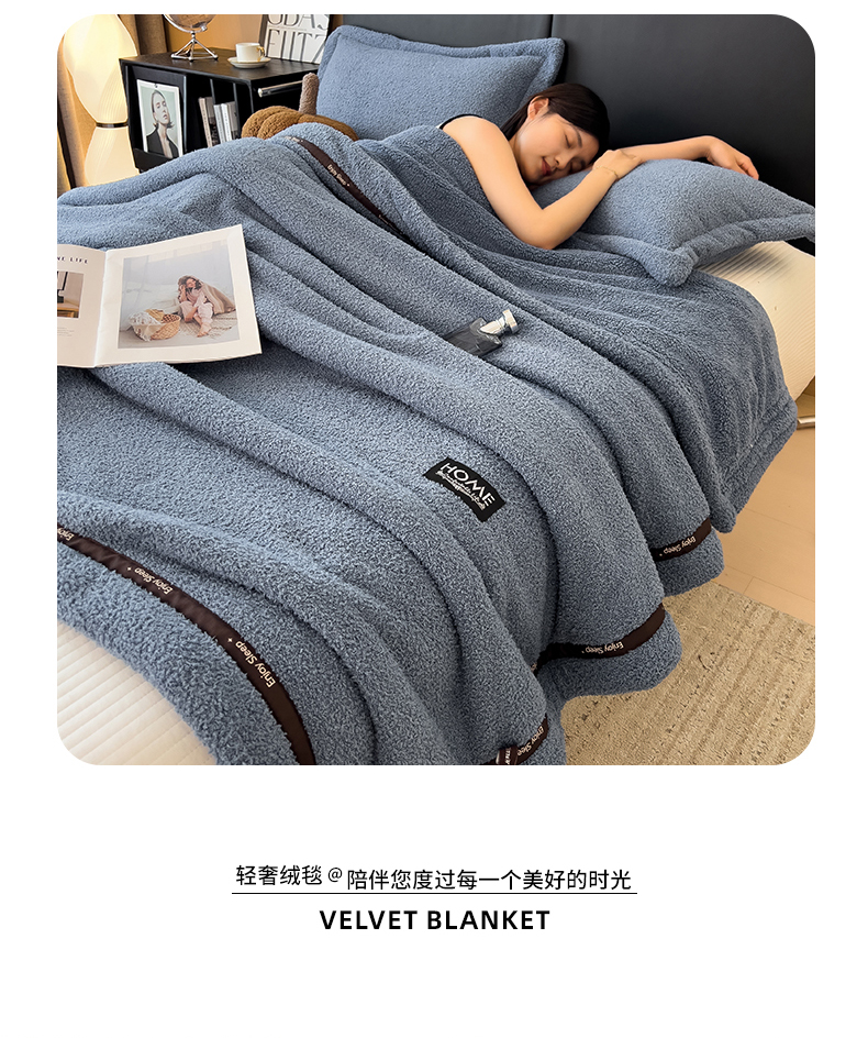 当前位置: 91家纺网 > 商品网购 > 毛毯休闲毯绒毯 > 毛毯 > 慕木家纺 2025新款纯色A类轻奢半边绒多功能毛毯直播爆款 深蓝灰